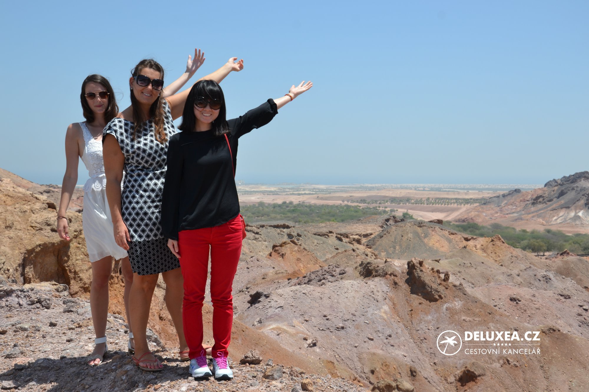 Let trval 25 min. Po něm následovala okružní jízda po ostrově. Většinu povrchu Sir Bani Yas Island tvoří poušť, hory, skály a nízké dřeviny. Kolem se potulují stáda gazel a muflonů, sem tam potkáte skupinu žiraf ukusujících stromy. Hledali jsme i gepardy, ale bohužel se nejspíš schovávali před poledním sluncem. Venku bylo neuvěřitelných 42 stupňů ve stínu.