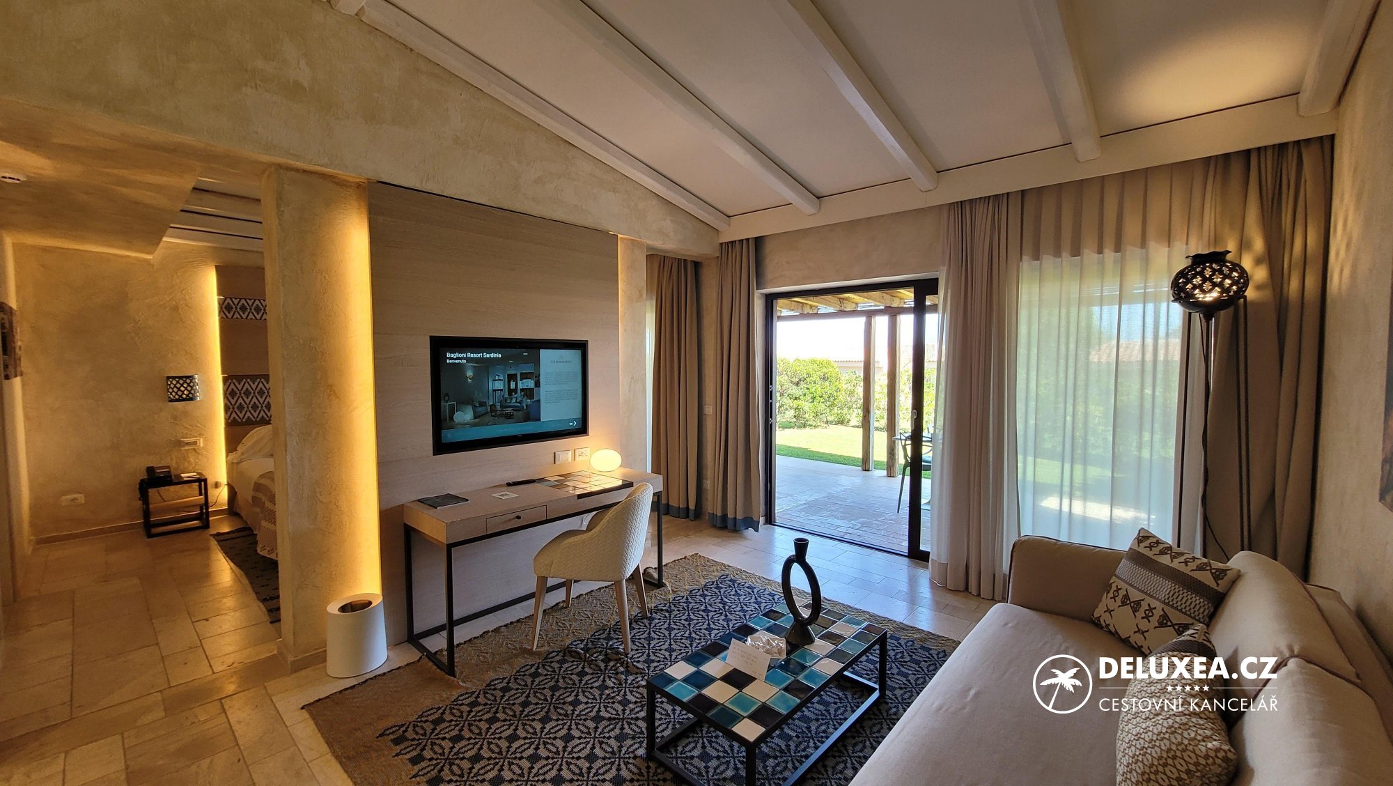 Našou druhou zastávkou bol jeden z najkrajších a najlepších rezortov na ostrove, situovaný na severovýchode ostrova, hotel Baglioni Resort Sardinia*****. Tento dokonalý hotel a jeho areál Vás očarí hneď pri príchode svojou krásnou, luxusnou recepciou a všadeprítomnými oleandrami a palmami v okolí. Resort je ladený do typickej Sardinskej architektúry, malé kamenné pavilónky, v ktorých sú umiestnené krásne, priestranné suitky, ponúkajú svojim klientom maximum súkromia a pohodlia, môžete si tu vybrať suitu s vlastnou záhradkou a terasou, prípadne balkónom s výhľadom na more, alebo terasou priamo na streche svojej suity, pravdaže s nádhernými výhľadmi na more a okolité ostrovy.