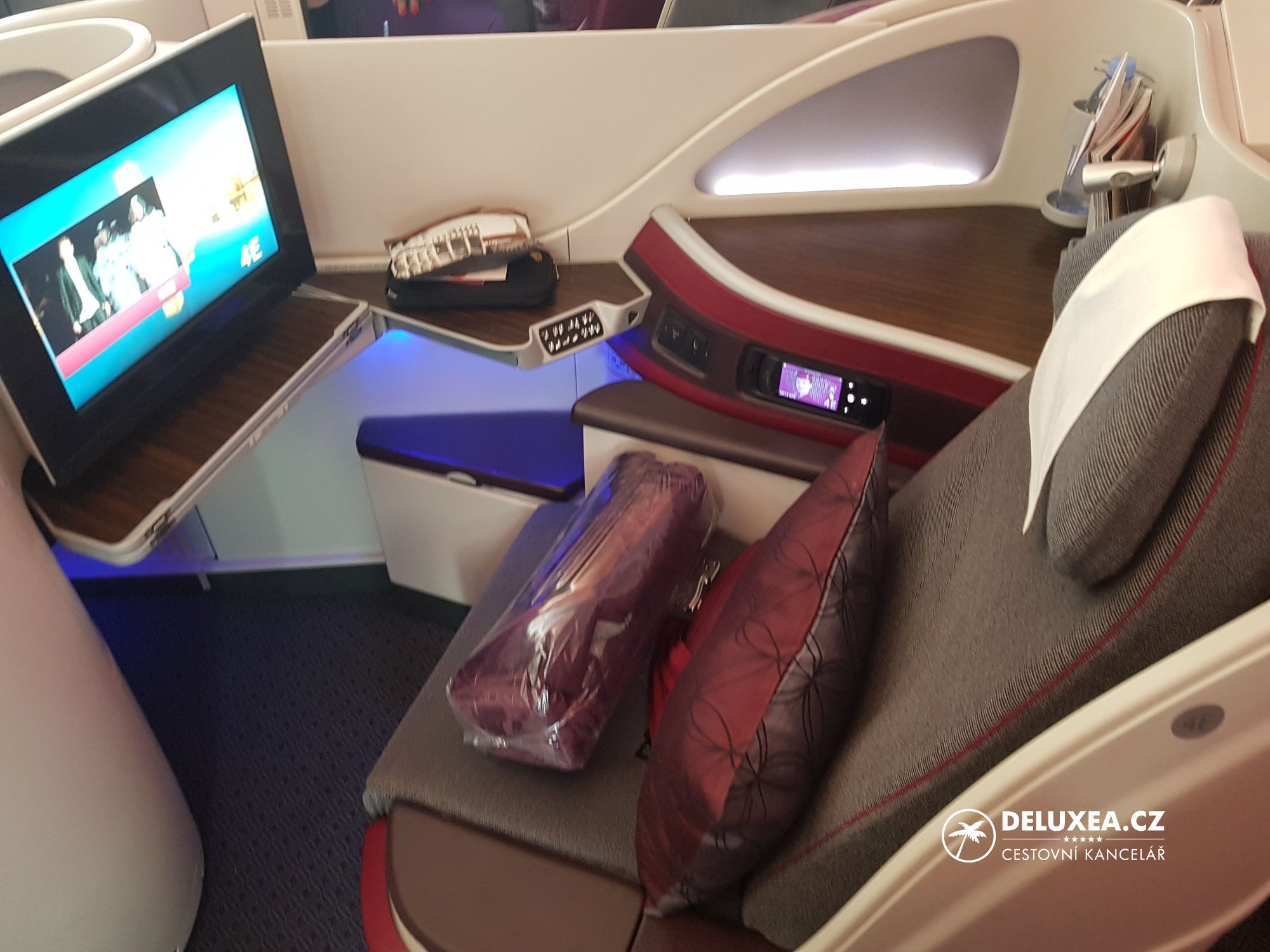 Z Prahy jsme odlétaly odpoledním letem Qatar v 16:20, na který je nasazen nový letoun Boeing Dreamliner. Business class v tomto typu letadla je opravdu skvostná. Sedadla jsou v konfiguraci 1-2-1 a ti, co sedí uprostřed si mohou stáhnout clonící přepážku a nerušeně si celou cestu povídat. Servis je velmi osobní a naprosto perfektní. Samozřejmostí jsou polohování sedačky v několika úhlech až do úplného ležení. Po necelých 6h jsme přistály v Dohá, kde nás čekalo dlouhých 8h na přestup na další let. Vydaly jsme se je tedy strávit do hotelu Oryx, který najdete ve 3. patře. Dále je zde možost si dojít do SPA s bazénem, kde lze také několik hodin pobýt.