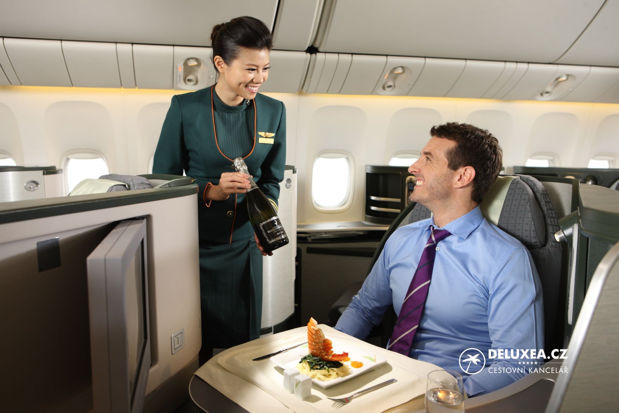Business třída je vybavena speciálními sedadly, která poskytují maximální prostor, pohodlí a díky pevnému panelu i dostatek soukromí. V kabině jsou rozmístěna v konfiguraci 1-2-1. Každé sedadlo lze jednoduchým stisknutím tlačítka změnit na 2 metry dlouhé vodorovné lůžko. Prostor sedadla nabízí také místo na zavěšení kabátu, uložení bot, zatahovací loketní opěrku a odkládací stolek. Pro umocnění pohodlí dostane každý cestující k disposici pohodlné pyžamo, pár hřejivých, měkkých přezůvek a cestovní kufřík s hygienickými potřebami. Váhový limit odbaveného zavazadla je do 40 kg (jednotlivý kus nesmí přesáhnout váhu 32 kg).
