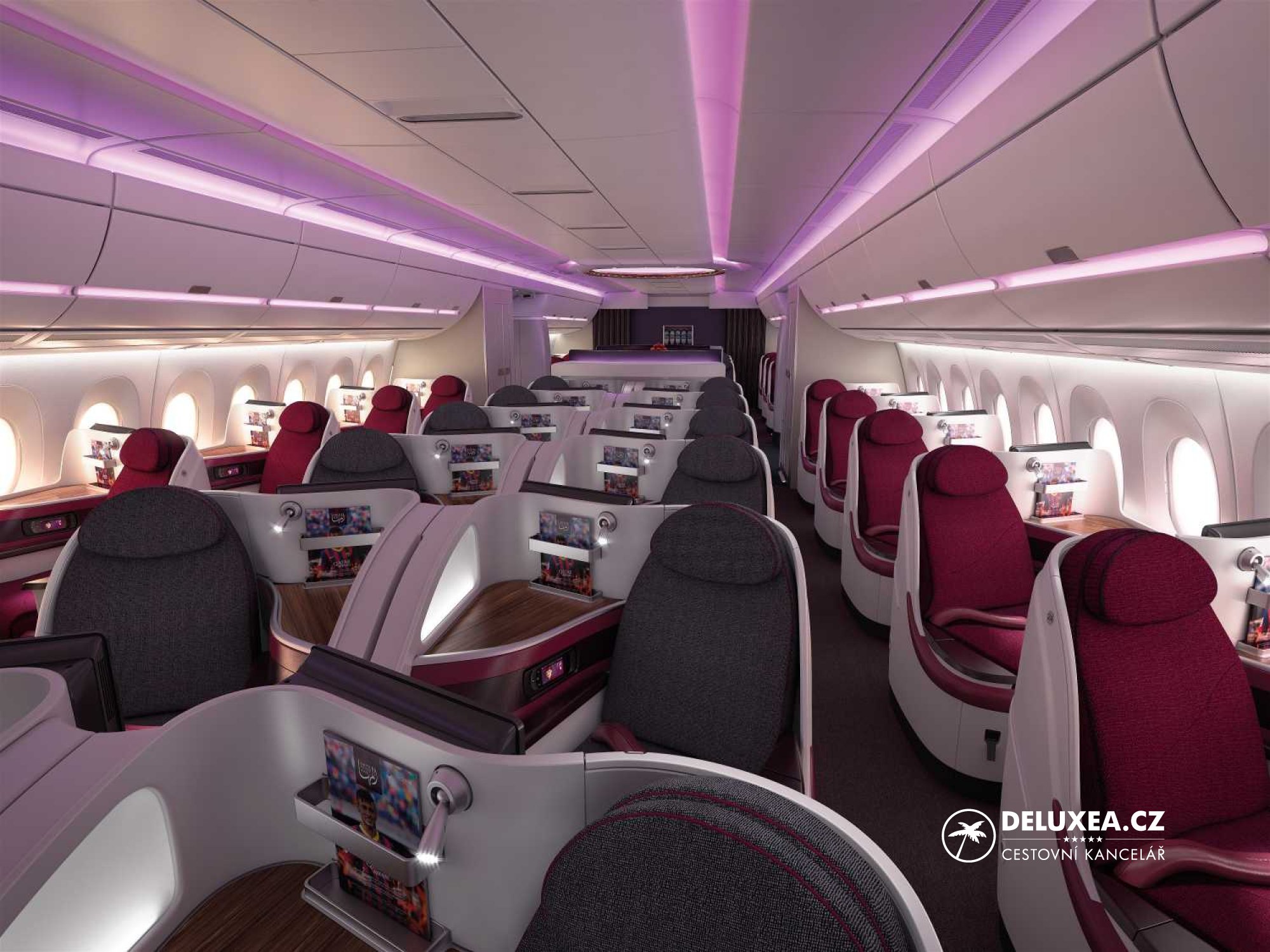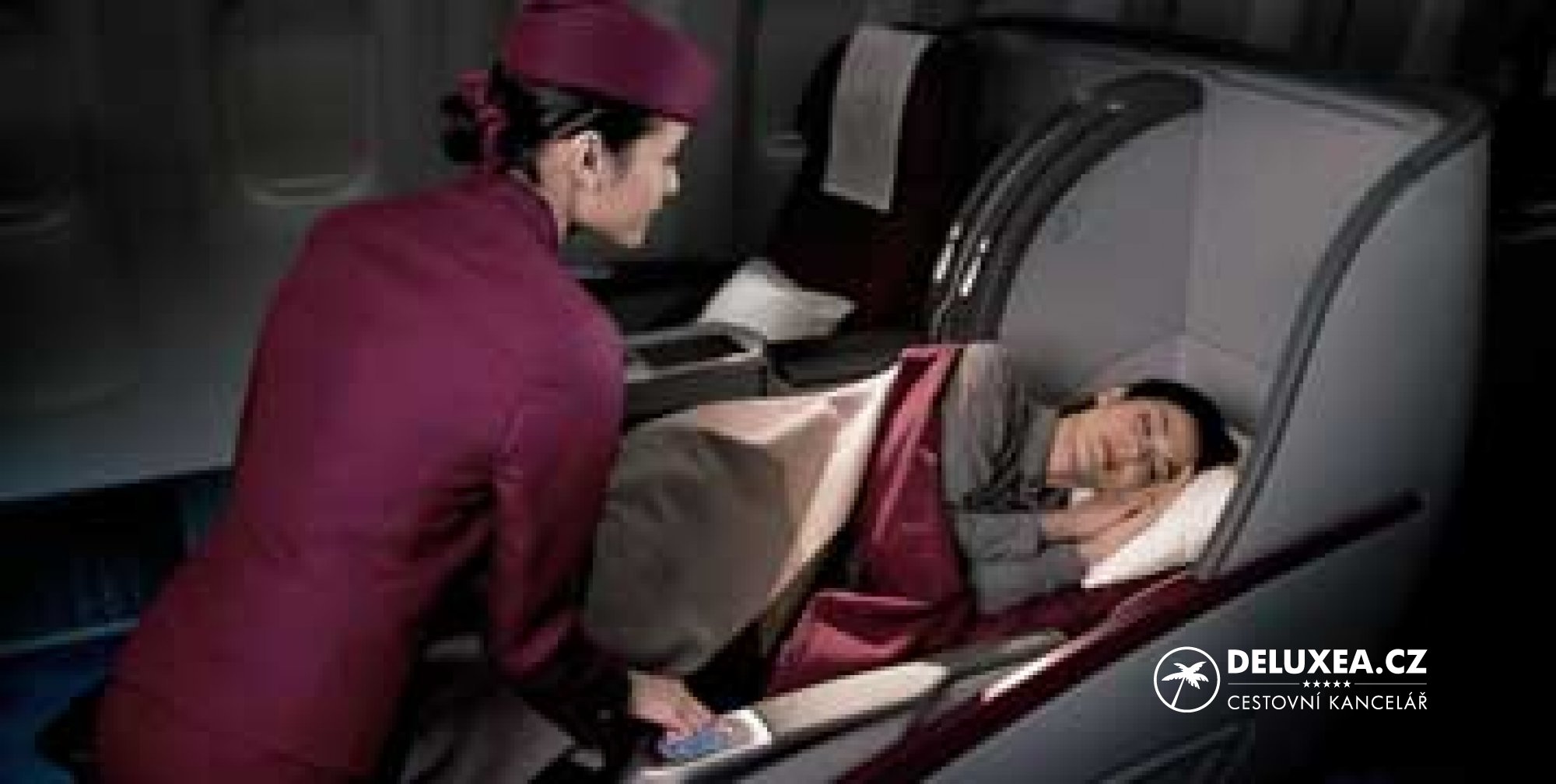 Business Class Qatar Airways je synonem pro komfort, prostornost a vynikající servis palubního personálu. Vyzkoušejte si jej na vlastní kůži a poznáte proč se Business Class Qatar Airways každoročně umísťuje mezi nejlepšími produkty v žebříčku Skytrax. Usaďte se do pohodlné sedačky v elegatní kabině a vychutnejte si veškeré pohodlí – plně rozložitelnou sedačku s vestavěným masážním centrem, velký prostor pro nohy. Vybrat si můžete ze široké nabídky filmů, her a hudby. K dispozici jsou cestujícím rovněž elektrická zásuvka, USB konektor a osobní telefon. Některá letadla jsou vybavena službou OnAir, která umožňuje používání chytrých telefonů i během letu.