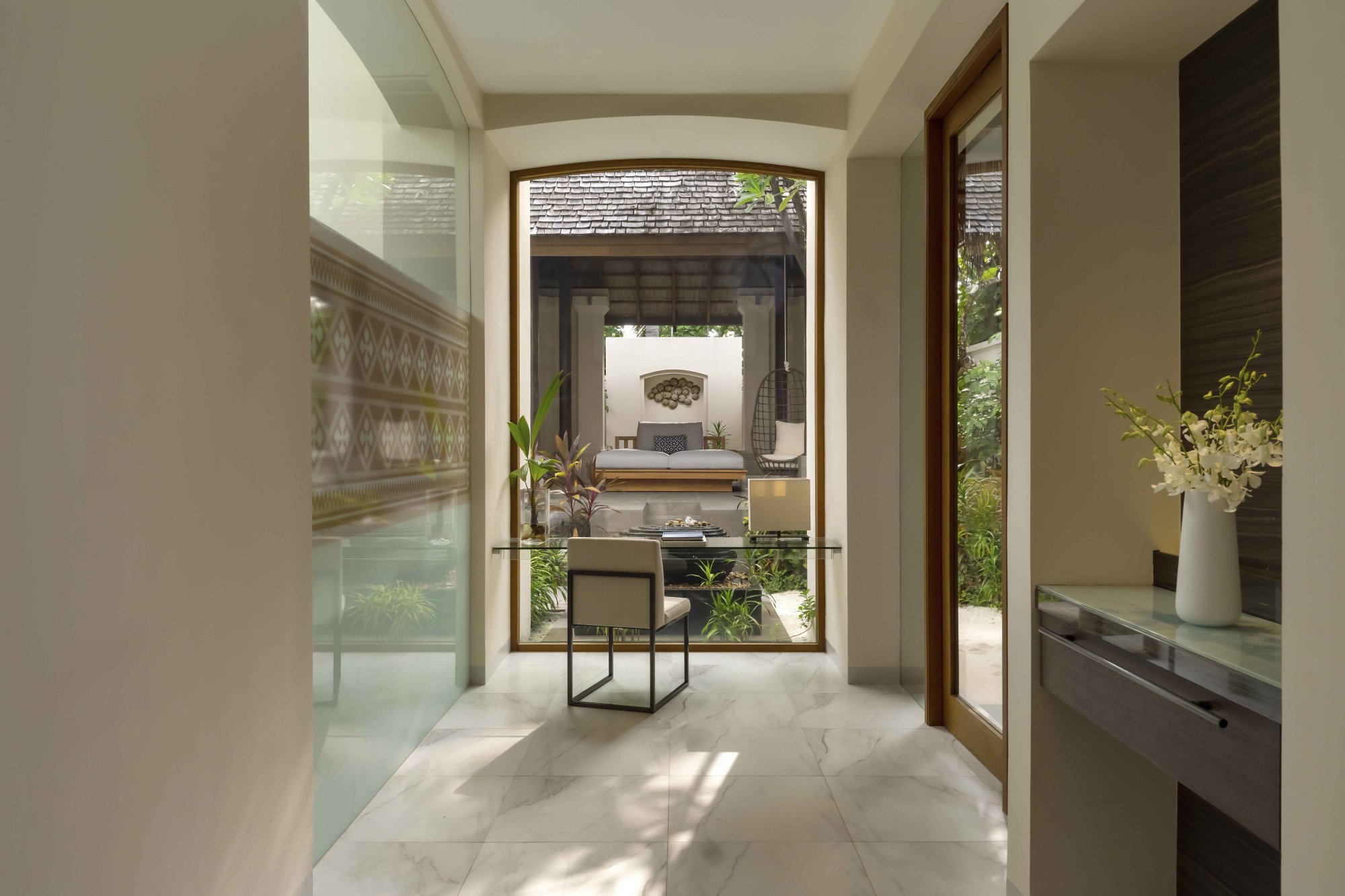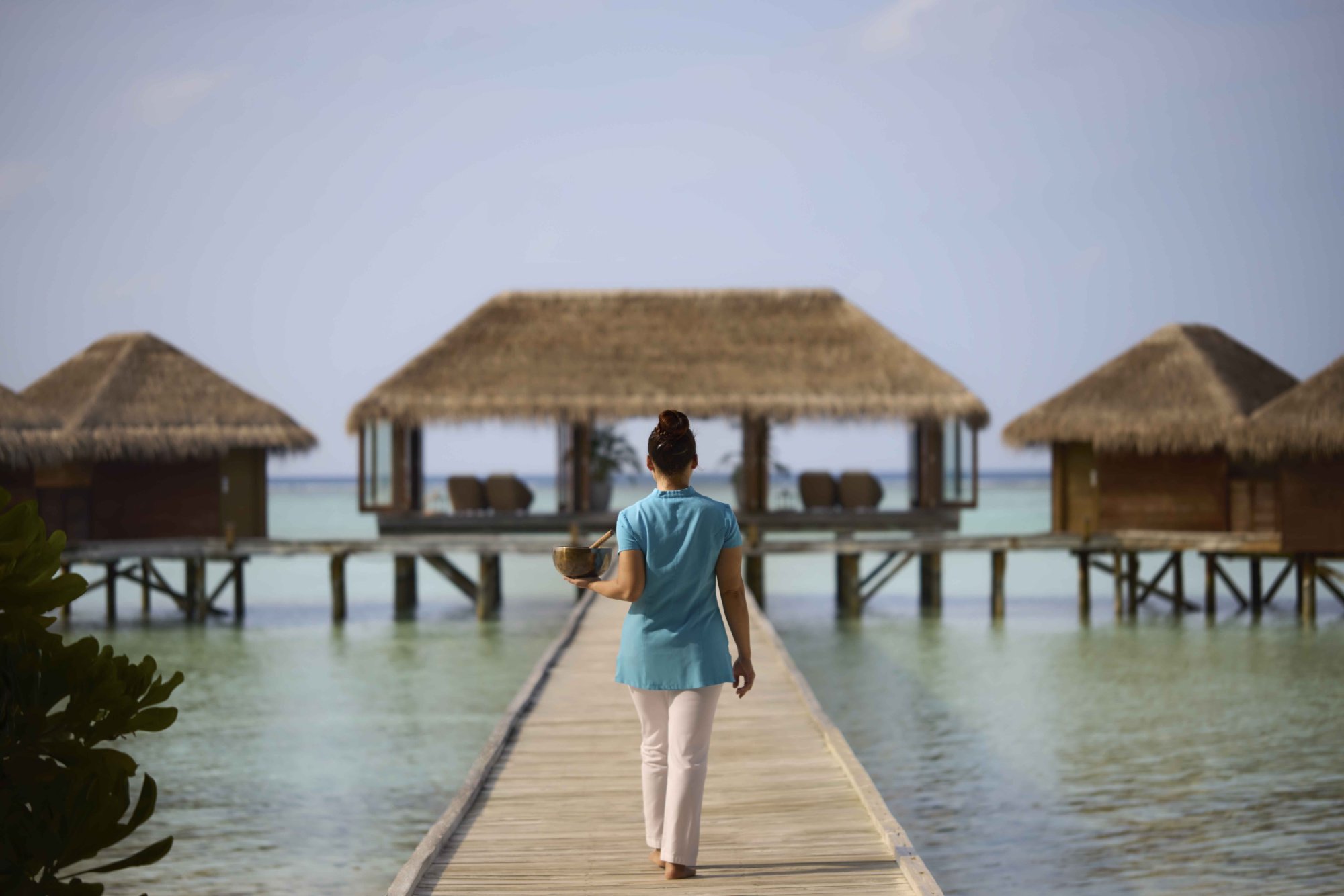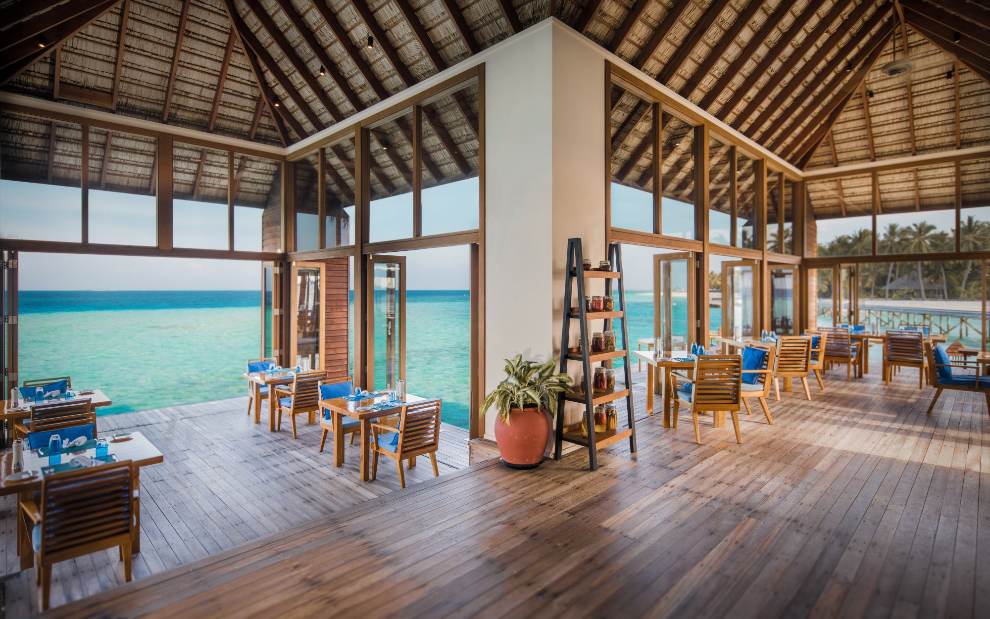Mandhoo Spa Restaurant je úžasný otevřeny prostor, nacházející se nad vodou. Podává se zde bio gurmánská kuchyně a organická vína. Menu je zcela v souladu s postupy lázní Spa Retreat. Hosté si tu pochutnají na moderních evropských jídlech s asijskými vlivy. Restaurace je otevřena na obědy a večeře, děti jsou také velmi vítány.
