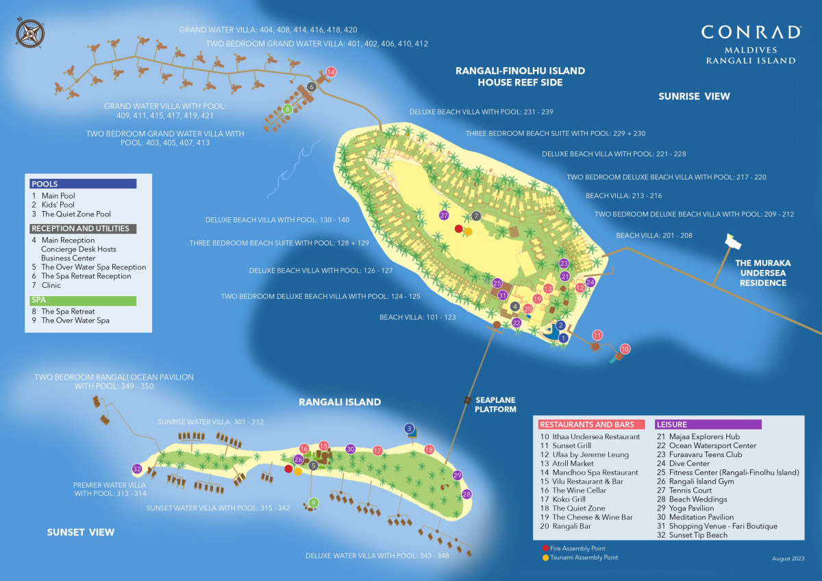 Vilu Restaurant je věnován umění jídla a vína. Jedná se o otevřenou restauraci na samém okraji laguny. Bude vám tu představen široký výběr vín i moderní á la carte menu s položkami středomořských pokrmů. Drink před nebo po večeři si můžete dopřát ve Vilu Baru. Sociálním centrem resortu je Rangali Bar, situovaný na okraji hlavního bazénu s výhledem na lagunu, ideální místo pro setkávání a relaxaci u osvěžujících nápojů.