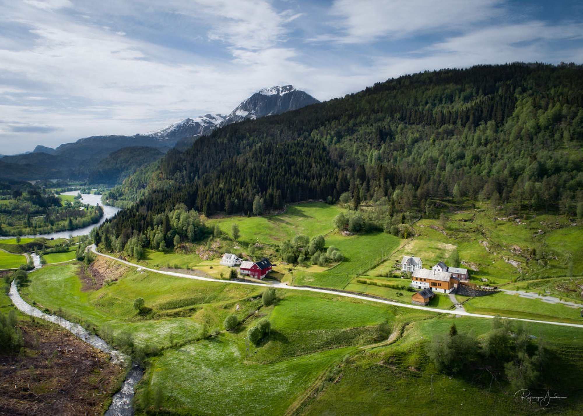Åmot se rozkládá v nedotčené přírodě západního Norska, v oblasti Sunnfjord, která se vyznačuje rozmanitou krajinou s fjordy, vodopády, řekami, horami, hlubokými lesy a travnatými pastvinami. V odlehlé části je ukryto toto útulné místo, přímo nedaleko soutoku řek Gaula a Åmotselva, podle něhož získalo i své jméno.