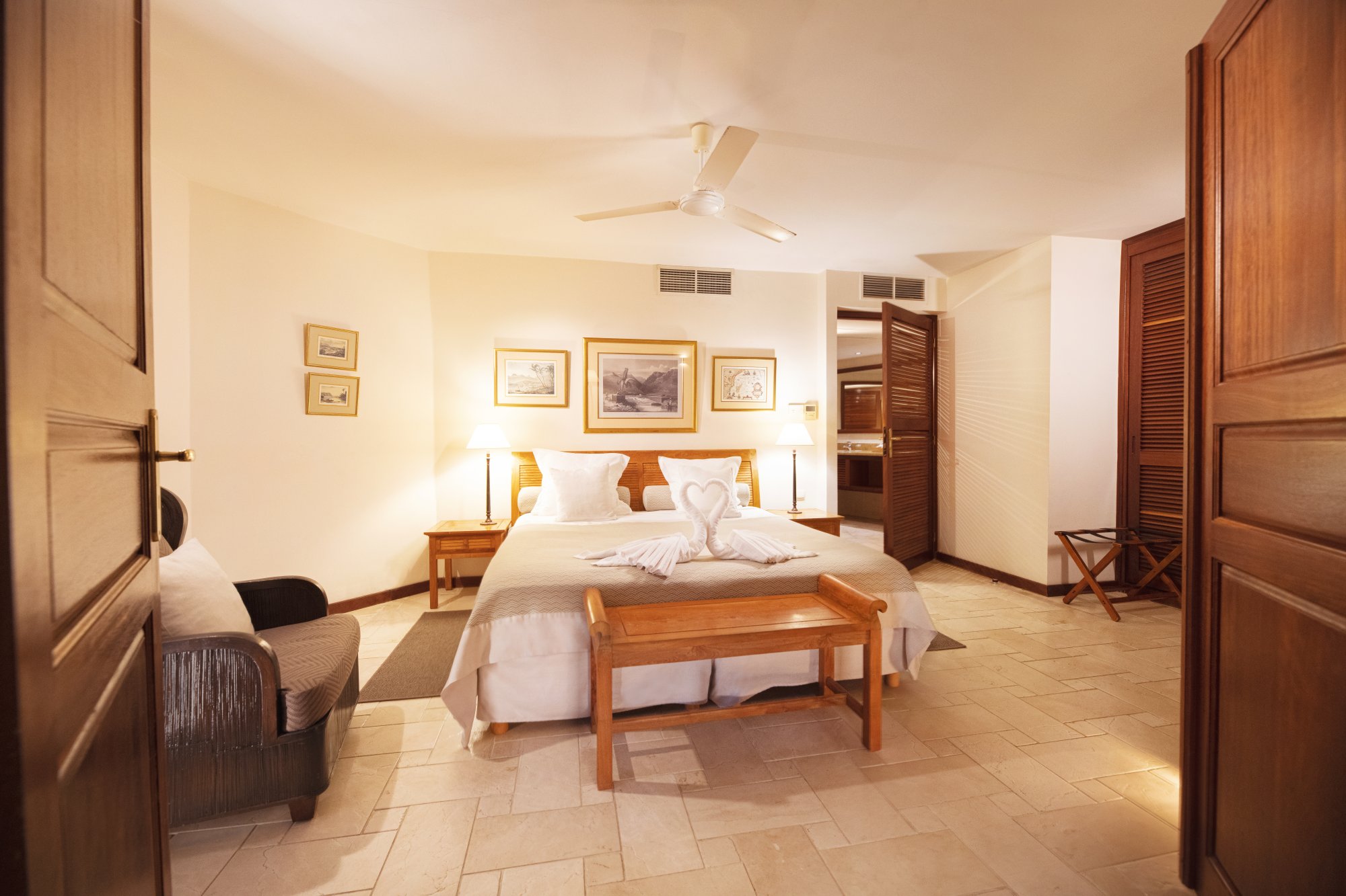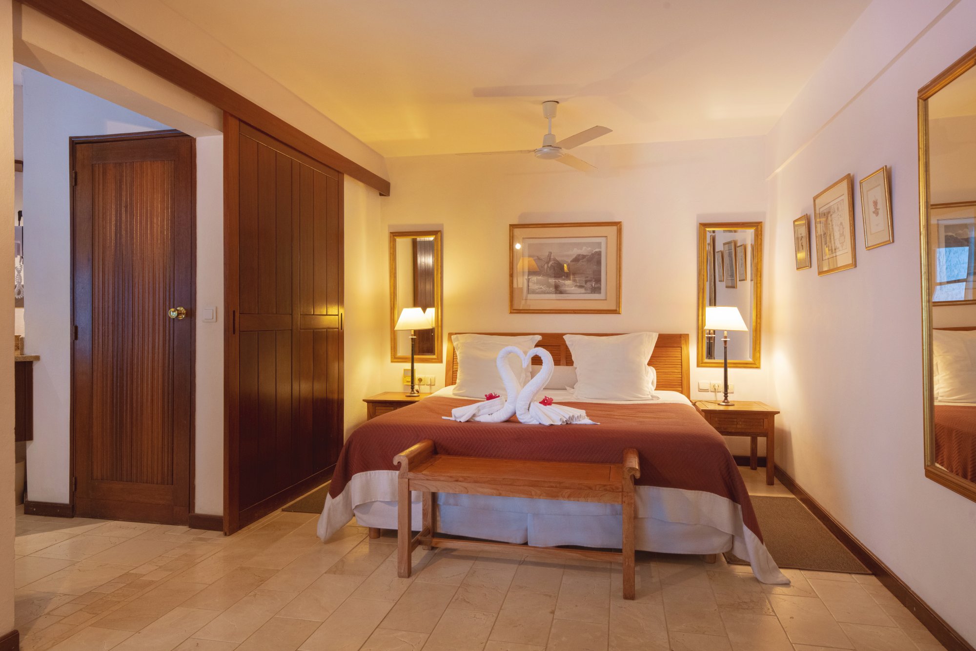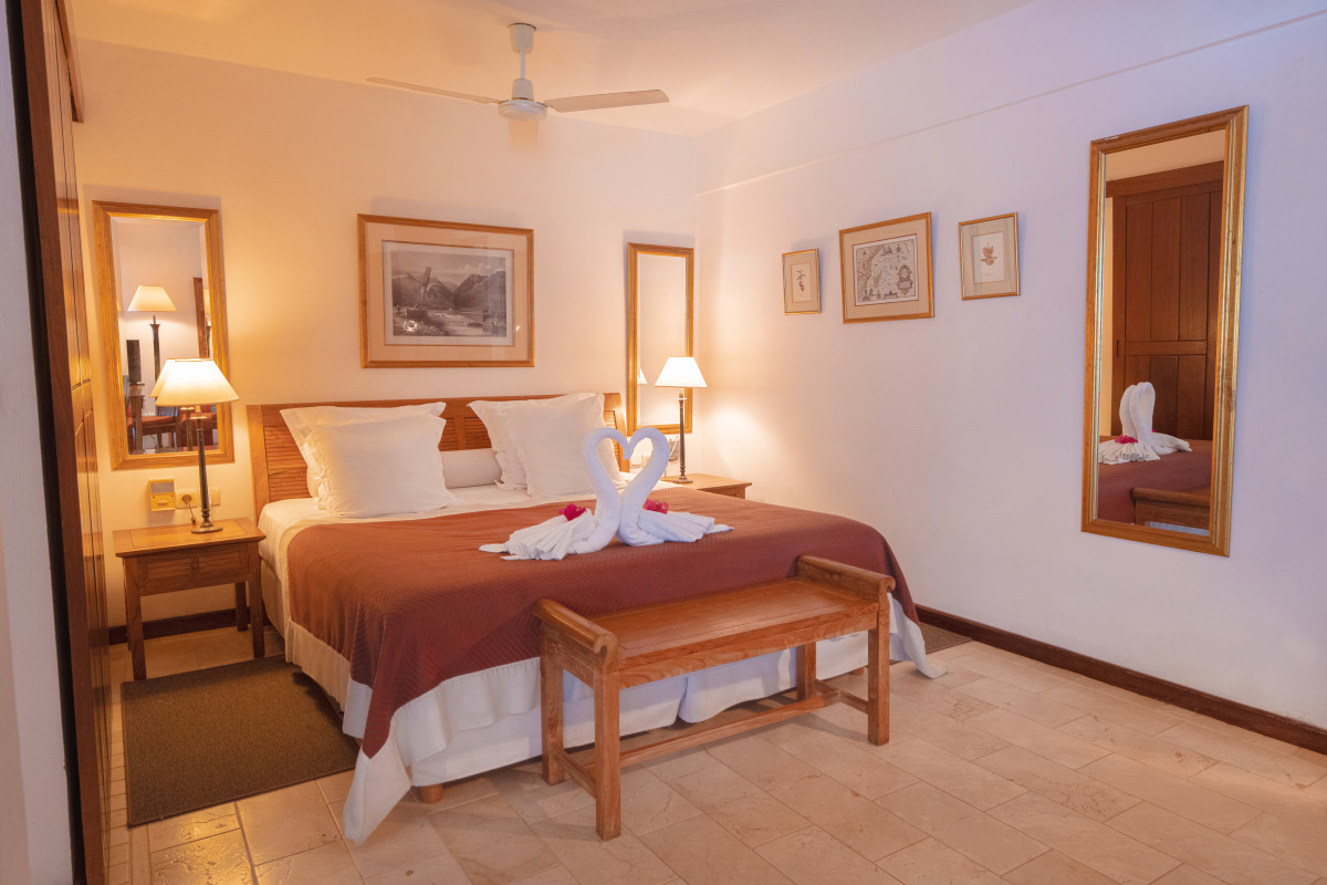 17 pokojů typu Deluxe o průměrné rozloze 42 m² je vybaveno postelí velikosti queen-size, kterou lze rozdělit na dvě samostatná lůžka...