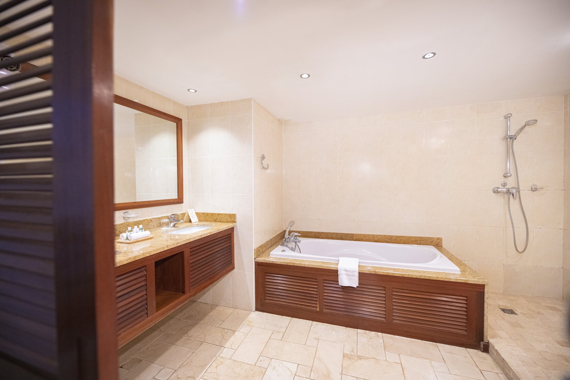 Všechny pokoje jsou vybaveny: klimatizací, stropním ventilátorem, LCD televizí se satelitními programy, minibarem, trezorem, vířivou vanou, dvěma umyvadly, fénem, oddělenou toaletou a bezplatným připojením k internetu.