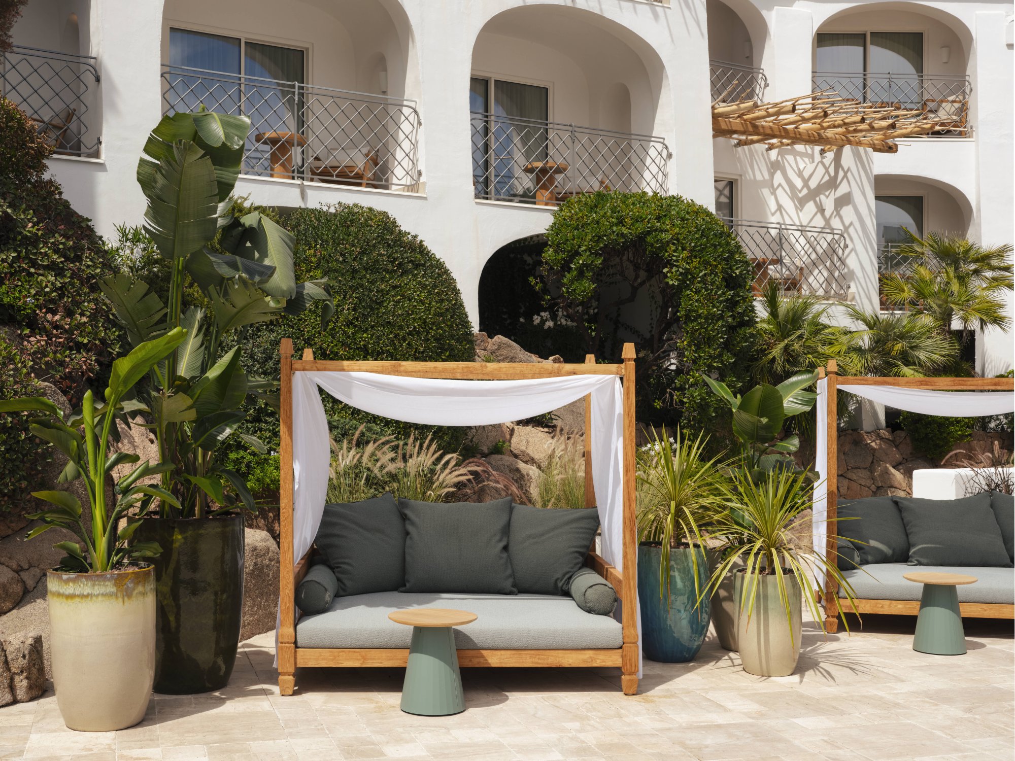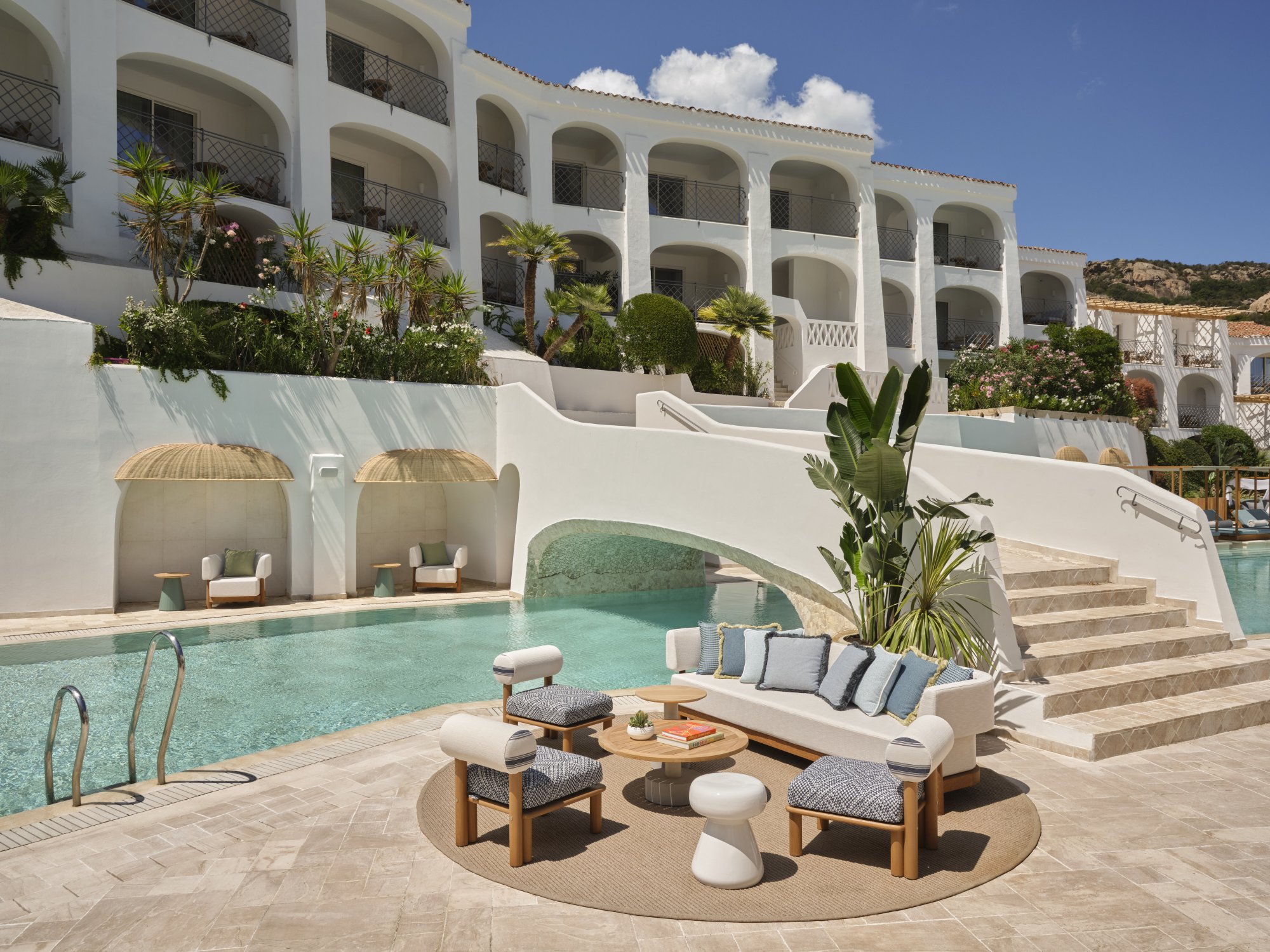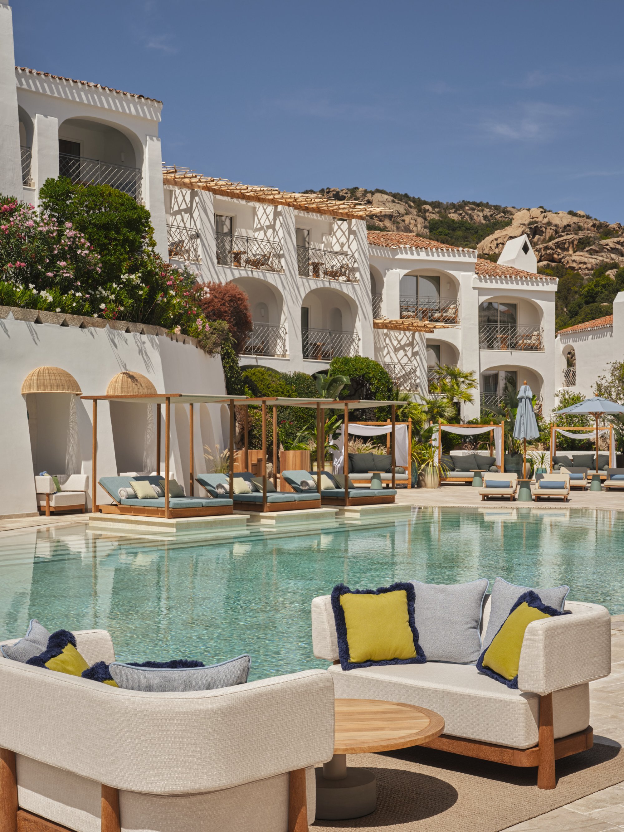 Kromě již zmíněného přístavu obklopují hotel majestátní skalní útvary, které pokrývá vegetace a společně utváří pozoruhodnou přírodní scenérii. Vizuálně působivé jsou zde také vnitřní prostory, jelikož částečně kopírují organické tvary přírody, tedy zaoblené linie a jemné křivky. Vše doplňují prvky z místní kultury, jako například ručně vyrobené předměty nebo typické přírodní materiály. Pociťte autentický šarm Sardinie v některé ze třinácti nabízených jednotek a užijte si jedinečnou dovolenou. Těšit se můžete taktéž na špičkový tým kuchařů, moderně zařízenou posilovnu a venkovní bazén.