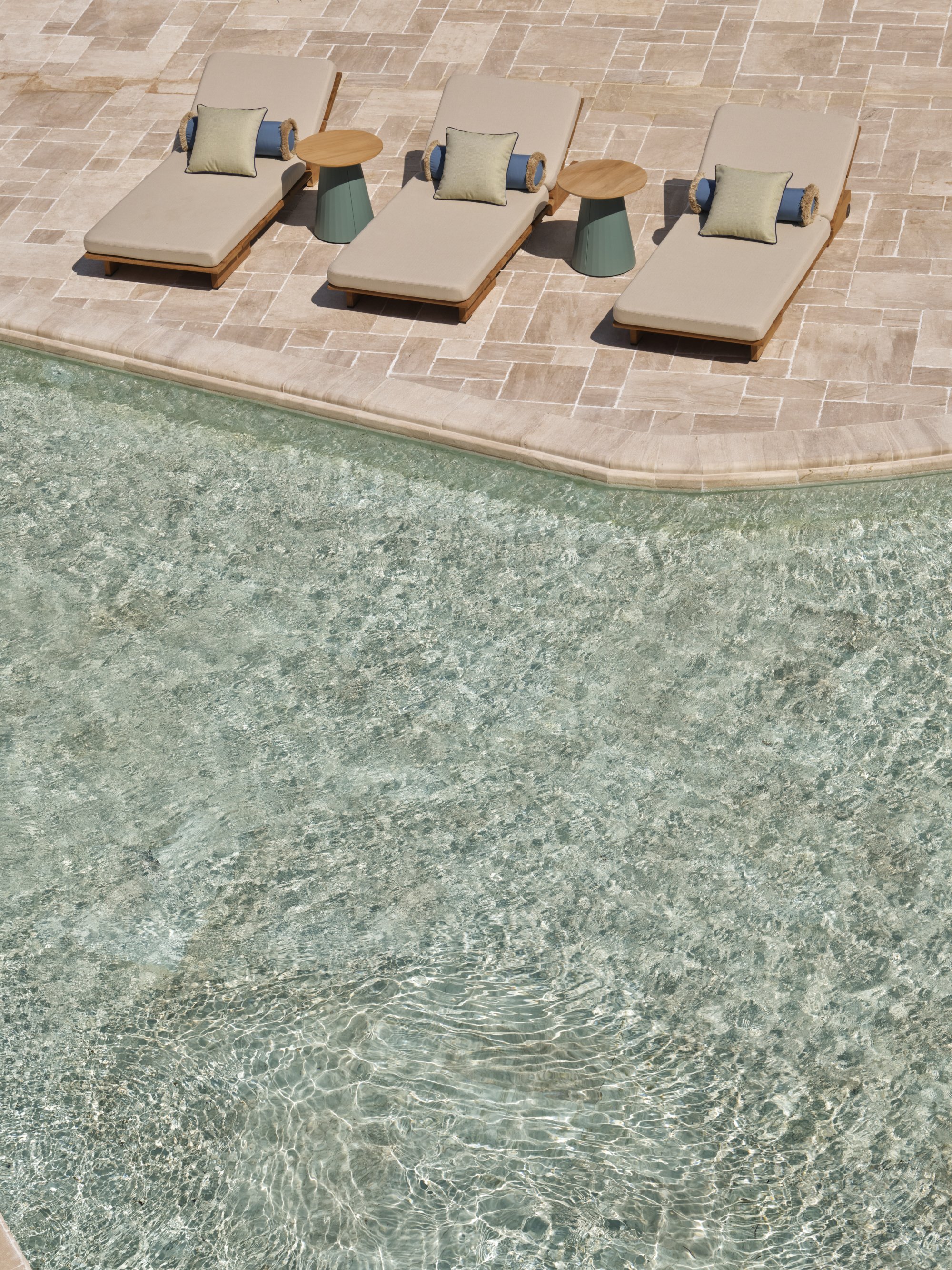 Pokud si během pobytu chcete užívat ničím nerušené koupání, pak zvolte toto apartmá, které oplývá terasou se soukromým bazénem. Vnitřní prostory tvoří ložnice s manželskou postelí, samostatný obývací pokoj a dvě koupelny. Maximální kapacita: 3 osoby.