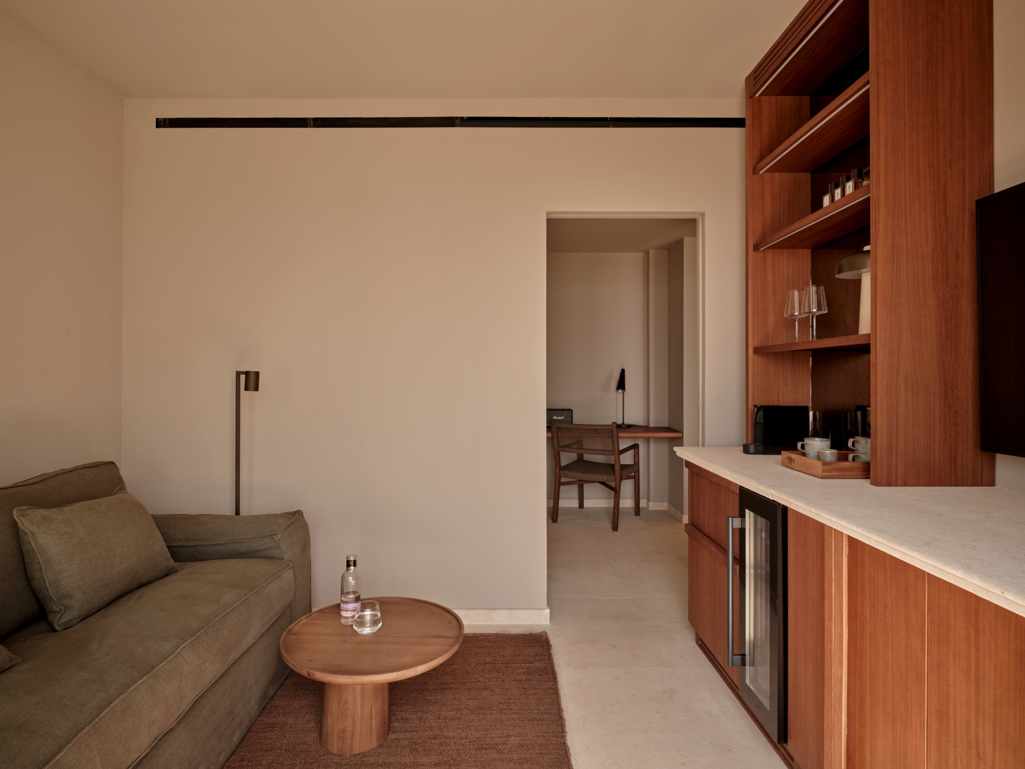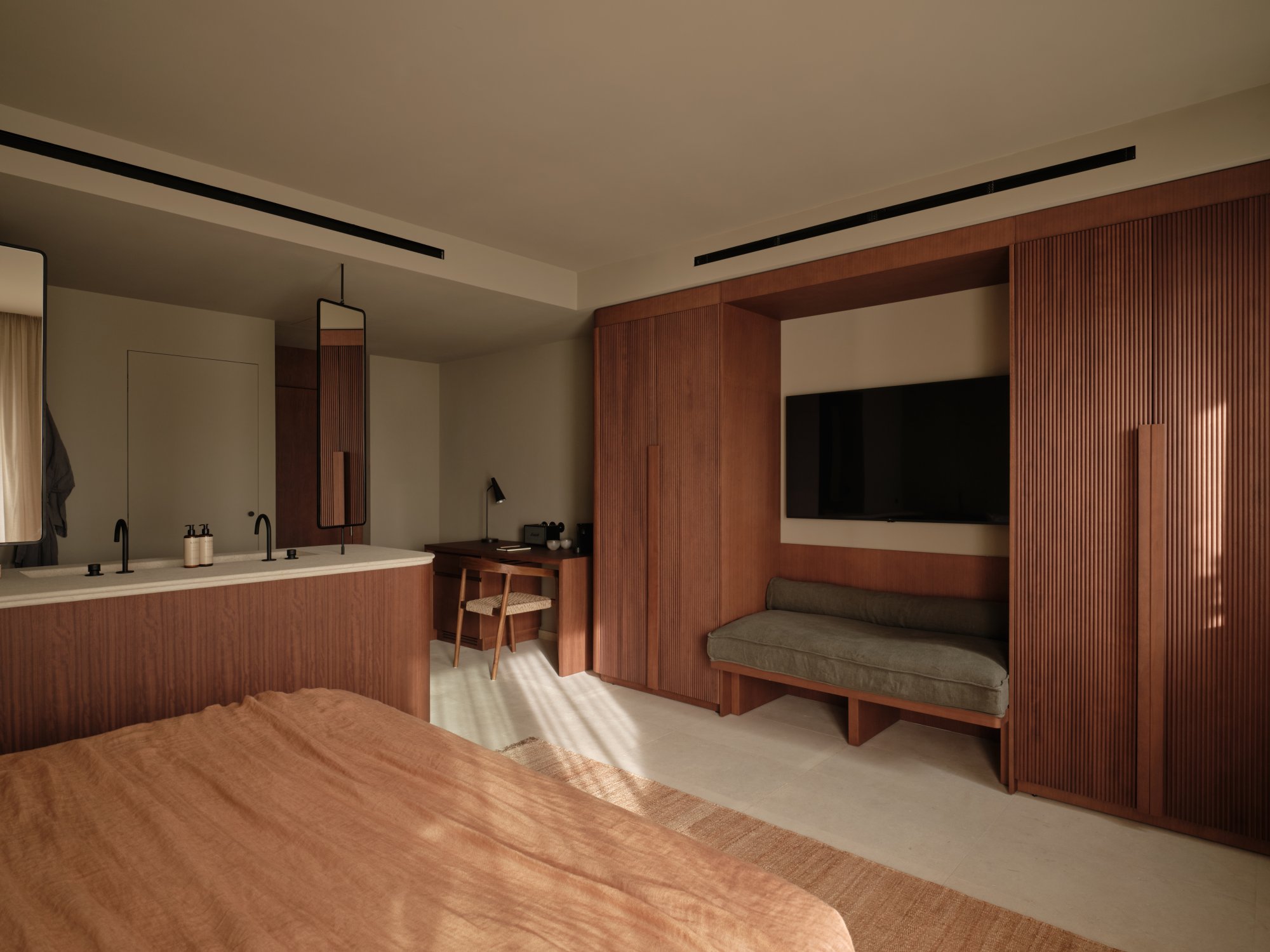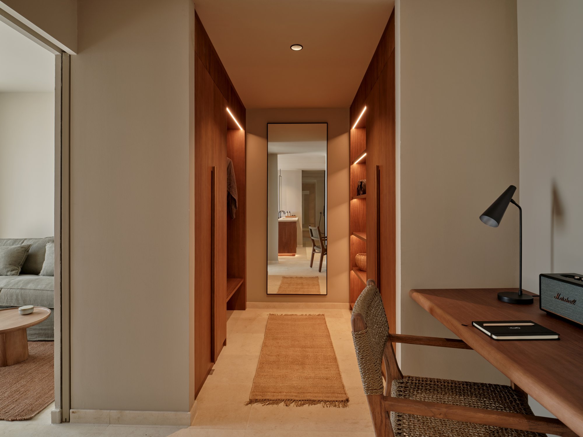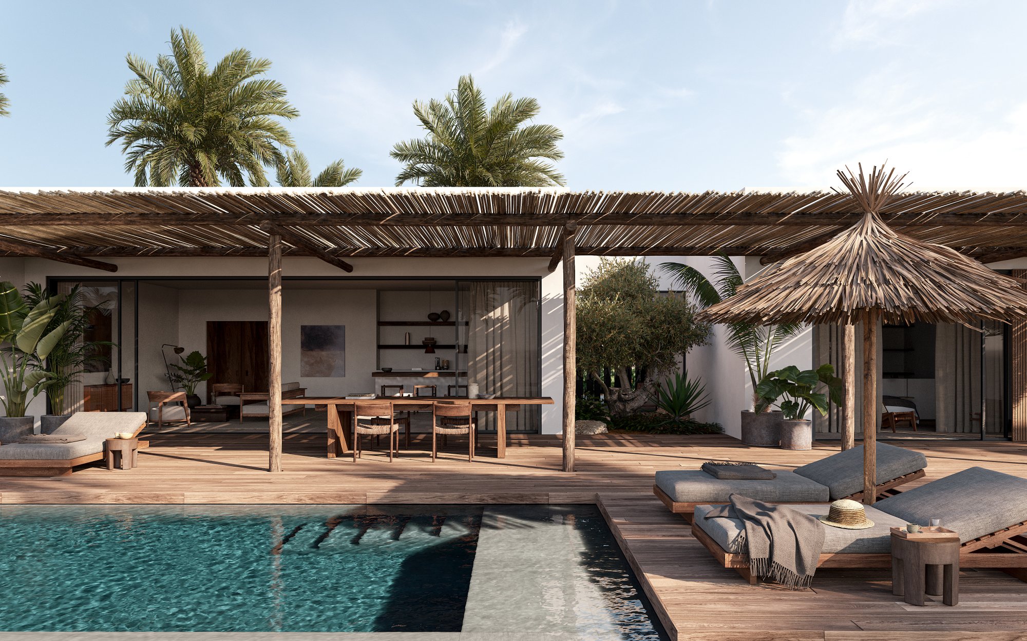 Toto apartmá (60 m²) disponuje prostornou terasou s přímým přístupem do bazénu sdíleného pouze se sousedním apartmá. Elegantní interiér zahrnuje ložnici s manželskou postelí a vlastní koupelnou, šatnu a samostatný obývací pokoj s rozkládací pohovkou a plně vybaveným barem. Ideální volba pro ty, kteří si chtějí užít dokonalé soukromí a snadný přístup k vodě. Maximální kapacita: 2 dospělí + 2 děti nebo 3 dospělí.