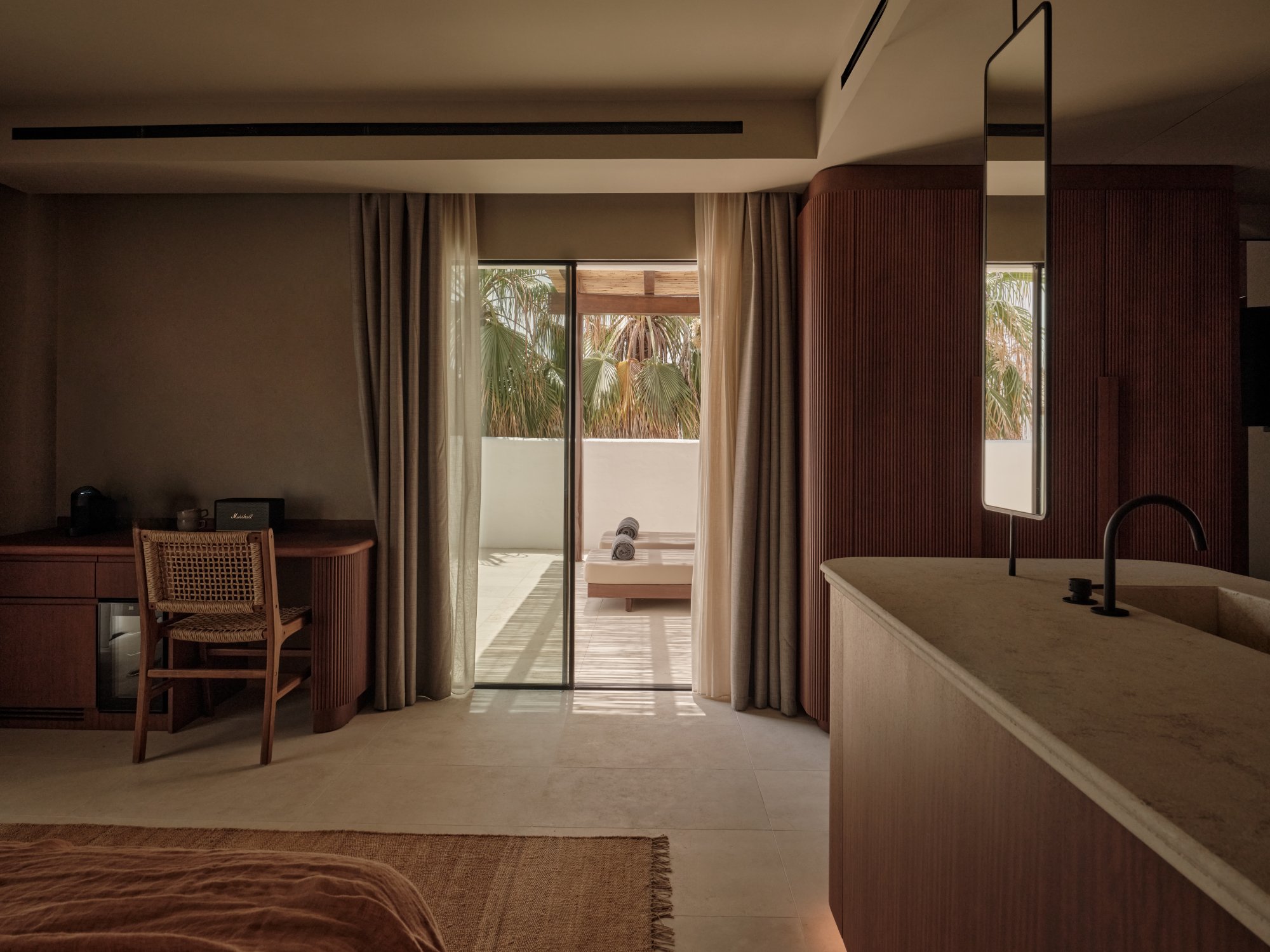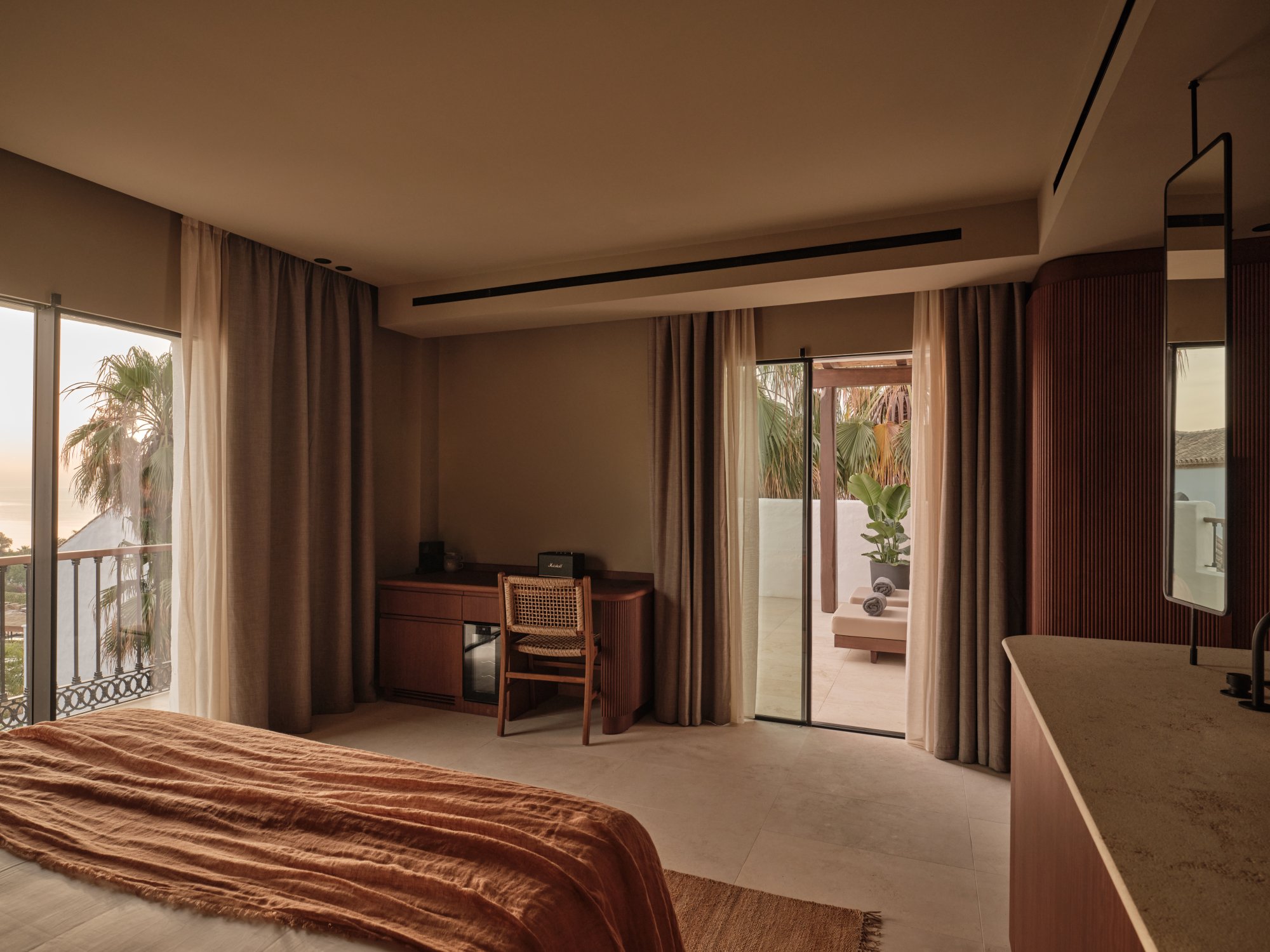 Tyto pokoje (32 m²) nabízejí příjemné zázemí s velkou manželskou postelí a koupelnou vybavenou dešťovou sprchou. Otevřený interiér je zařízený v minimalistickém stylu s využitím přírodních textur a tlumených tónů, doplněných o luxusní detaily. Velká francouzská okna vedou na soukromý balkón, odkud se můžete kochat výhledem na bujné hotelové zahrady nebo na Středozemní moře sahající až k africkému pobřeží. Maximální kapacita: 2 dospělí + 1 dítě do 4 let.