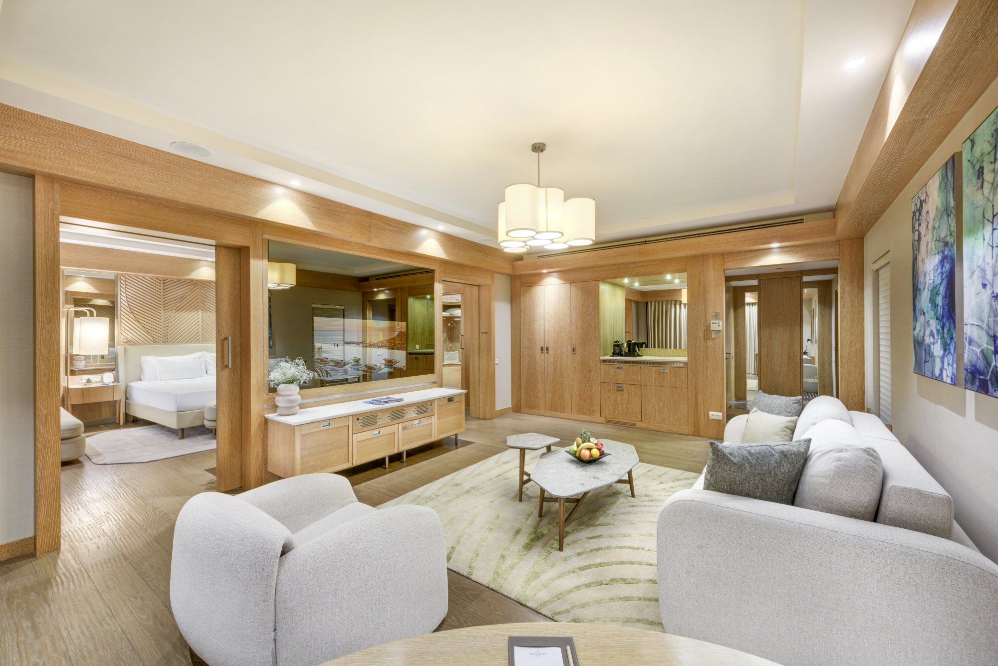 Hlavní předností tohoto luxusního apartmá je přímý přístup do společného bazénu ze soukromé terasy, která je vybavená opalovacími lehátky se slunečníkem, sedací soupravou, jídelním stolem a houpačkou. Uvnitř apartmá najdete ložnici s manželskou postelí, obývací pokoj s posezením, samostatnou šatnu a dvě koupelny. Hosté ubytovaní v tomto apartmá mohou navíc využívat exkluzivní služby (seznam uvedený výše) včetně soukromého check-in ve Villa Lounge a šampaňského Moet & Chandon Imperial Brut v den příjezdu. Maximální kapacita: 4 dospělí + 1 dítě