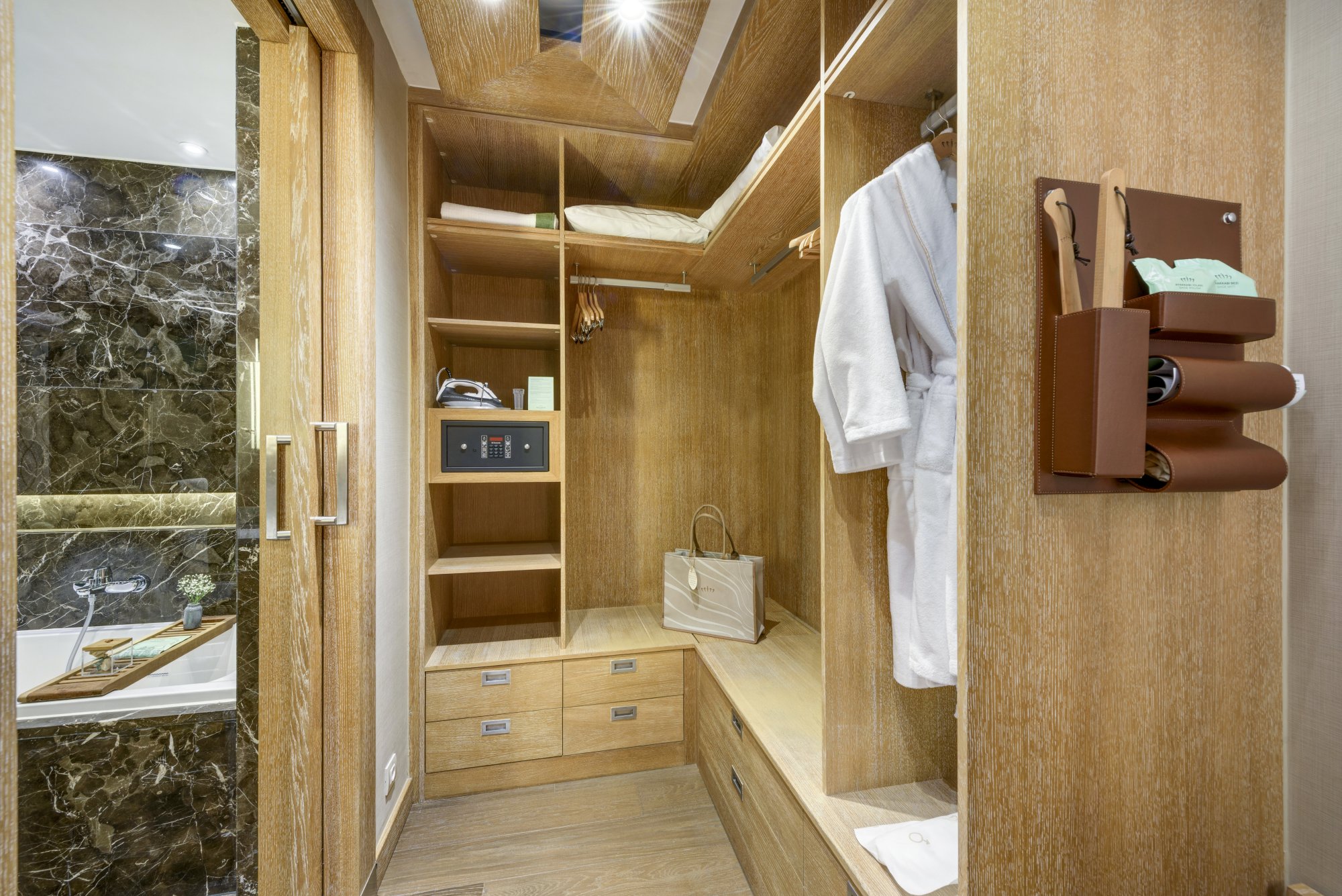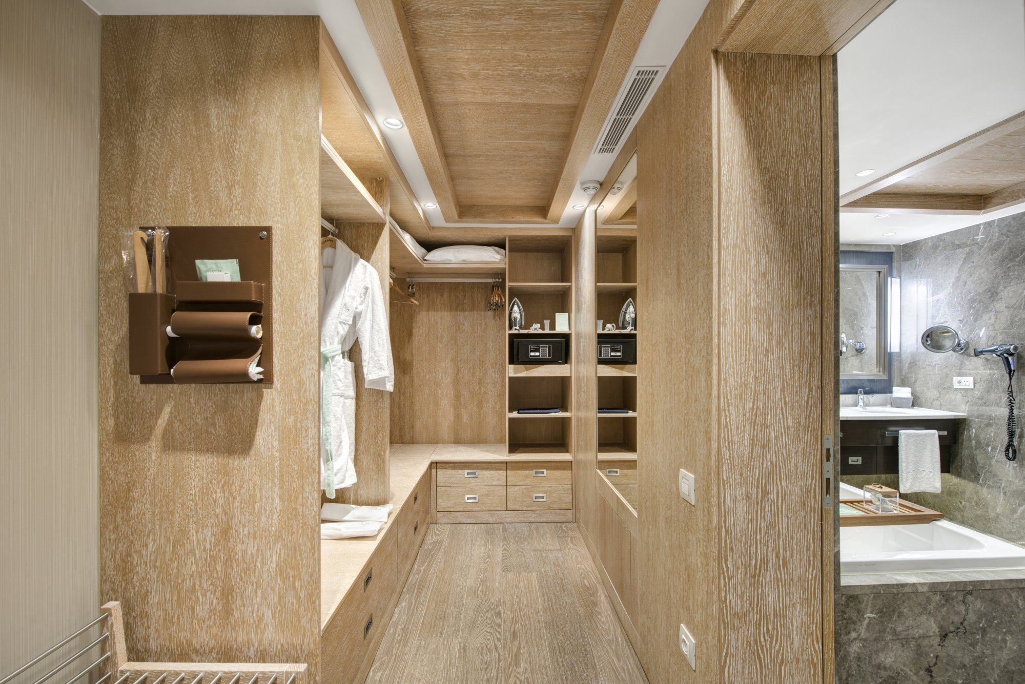 - šatna: vysoké zrcadlo, dřevěná ramínka, police na zavazadla, žehlička a žehlicí prkno, elektronický sejf, taburet, kartáč na oblečení, obouvací lžíce, houbička a rukavice na čištění bot