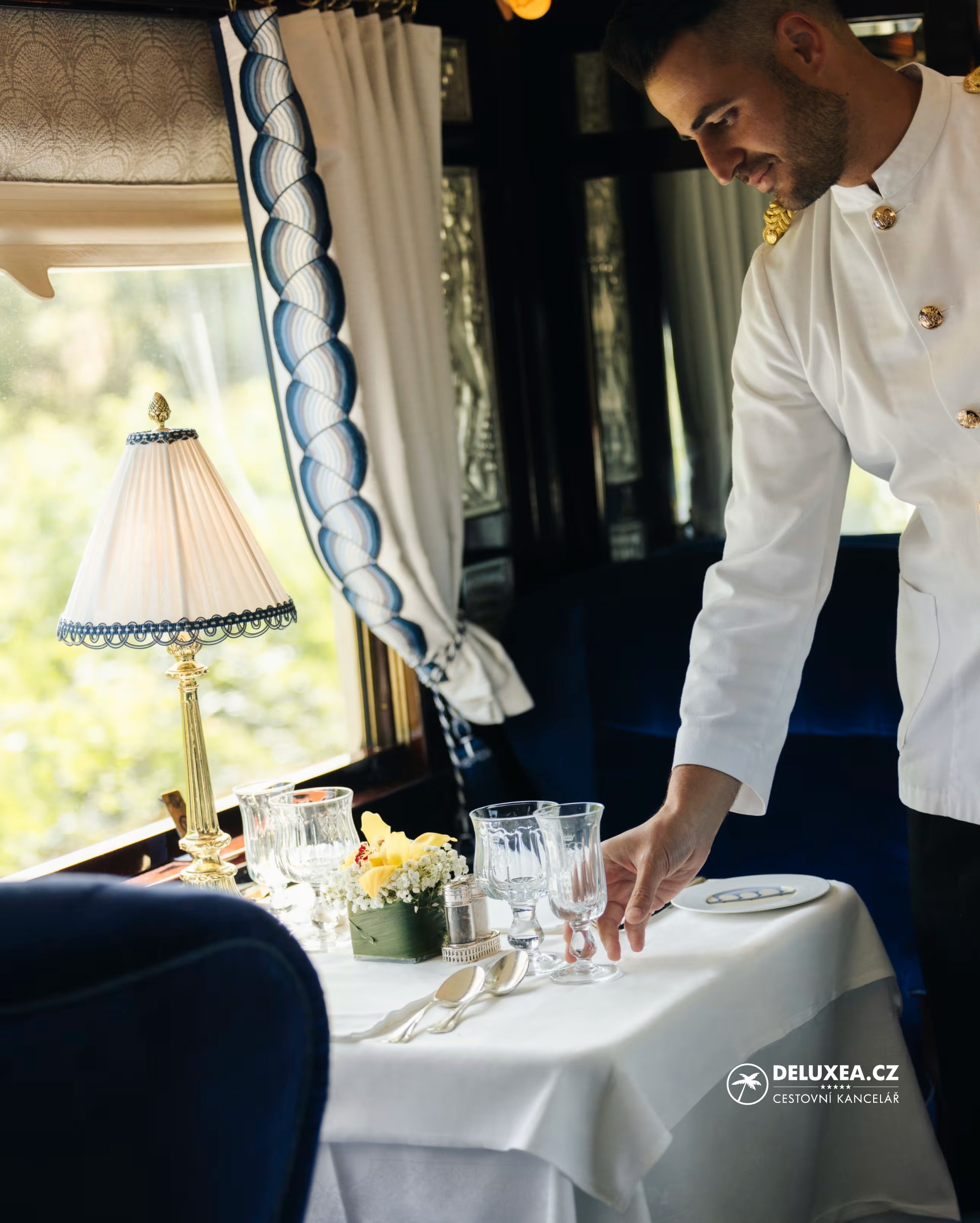 Vaše cesta začíná na nástupišti vybraného evropského města, kde se seznámíte s průvodčím a ubytujete se v některém z 54 velkolepých apartmá a kupé zařízených ve stylu 20. let minulého století. Už tehdy bylo cestování vlakem Venice Simplon-Orient-Express synonymem luxusu a také exkluzivních kulinářských zážitků. Dnes jsou součástí vlaku tři historické jídelní vozy, v nichž se podávají nejrůznější gurmánské speciality. Od snídaně, kterou si můžete vychutnat i v pohodlí svého kupé, přes tříchodový oběd a velkolepou večeři až po dekadentní půlnoční brunch. Večery pokračují v barovém voze, kde hraje hudba a barmani míchají čerstvé koktejly. Před sebou máte jen čas a nekonečné koleje, takže se můžete uvolnit a oddat se bezstarostným požitkům.