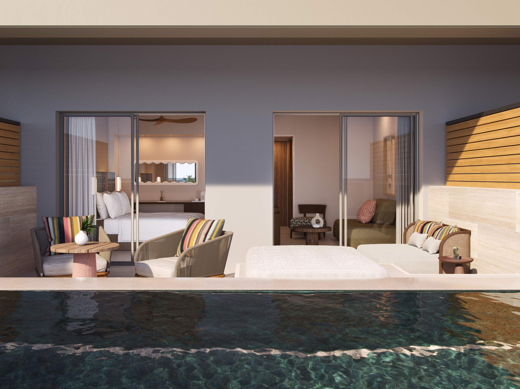 Cicada Pool Bar – Tento uvoľnený vonkajší bar ponúka dokonalú kombináciu skvelej spoločnosti a exkluzívneho nápojového lístka. V Cicada Pool Bar je noc stále mladá! Otváracia doba: 10:00–0:00.