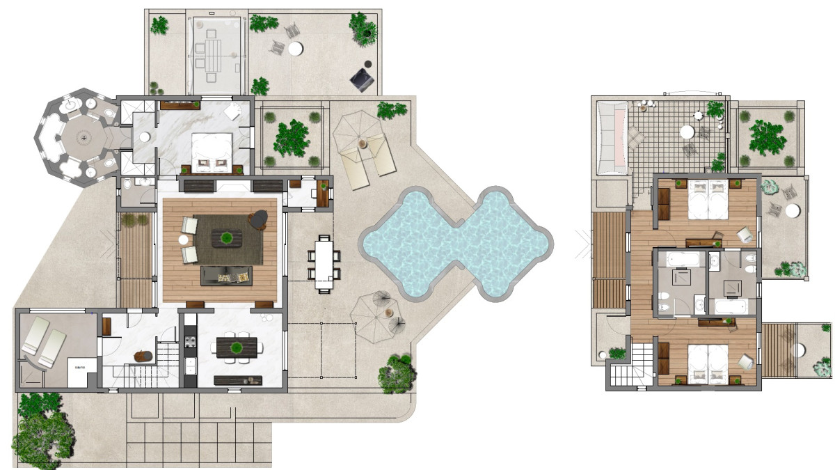 V týchto rezidenciách s rozlohou okolo 148 m² prežijete skutočne nezabudnuteľnú dovolenku. Ponúka totiž príjemný odpočinok a skutočný komfort vďaka dvom spálňam, obývacej izbe, dvom oddeleným kúpeľniam, a hlavne nádhernej vonkajšej terase, na ktorej sa nachádza úplne vybavená kuchyňa, jedáleň, súkromný bazén a vírivka. Všetky tieto priestory sú dokonale zladené s okolitou krétskou krajinou. Súčasťou ubytovania sú aj luxusné služby Haute Living, medzi ktoré patrí napríklad neobmedzený prístup do luxusného salónika s chutným občerstvením, súkromný check-in a mnoho ďalšieho. Ubytovať sa tu môže až 6 dospelých + 1 infant do 2 rokov.