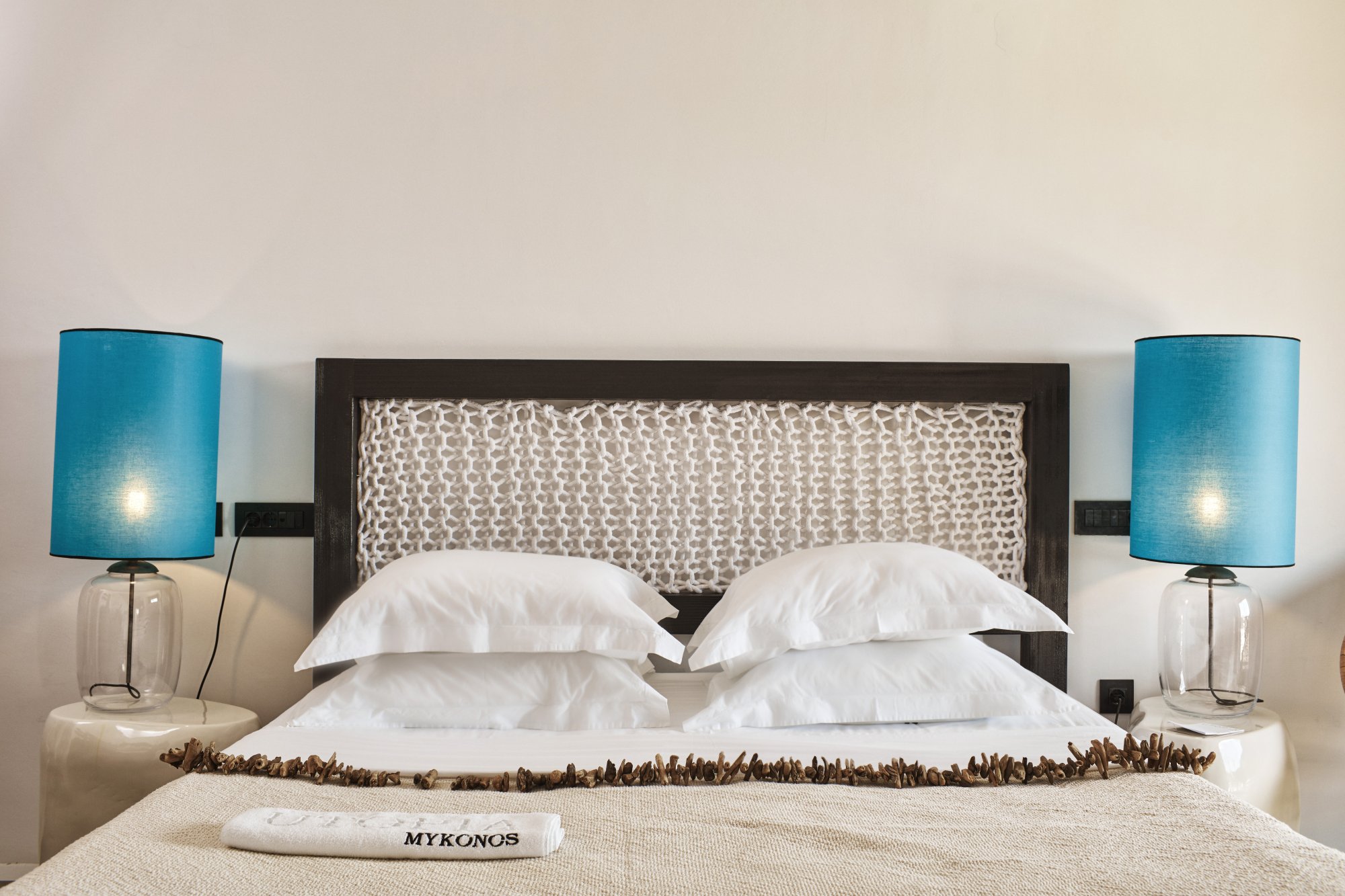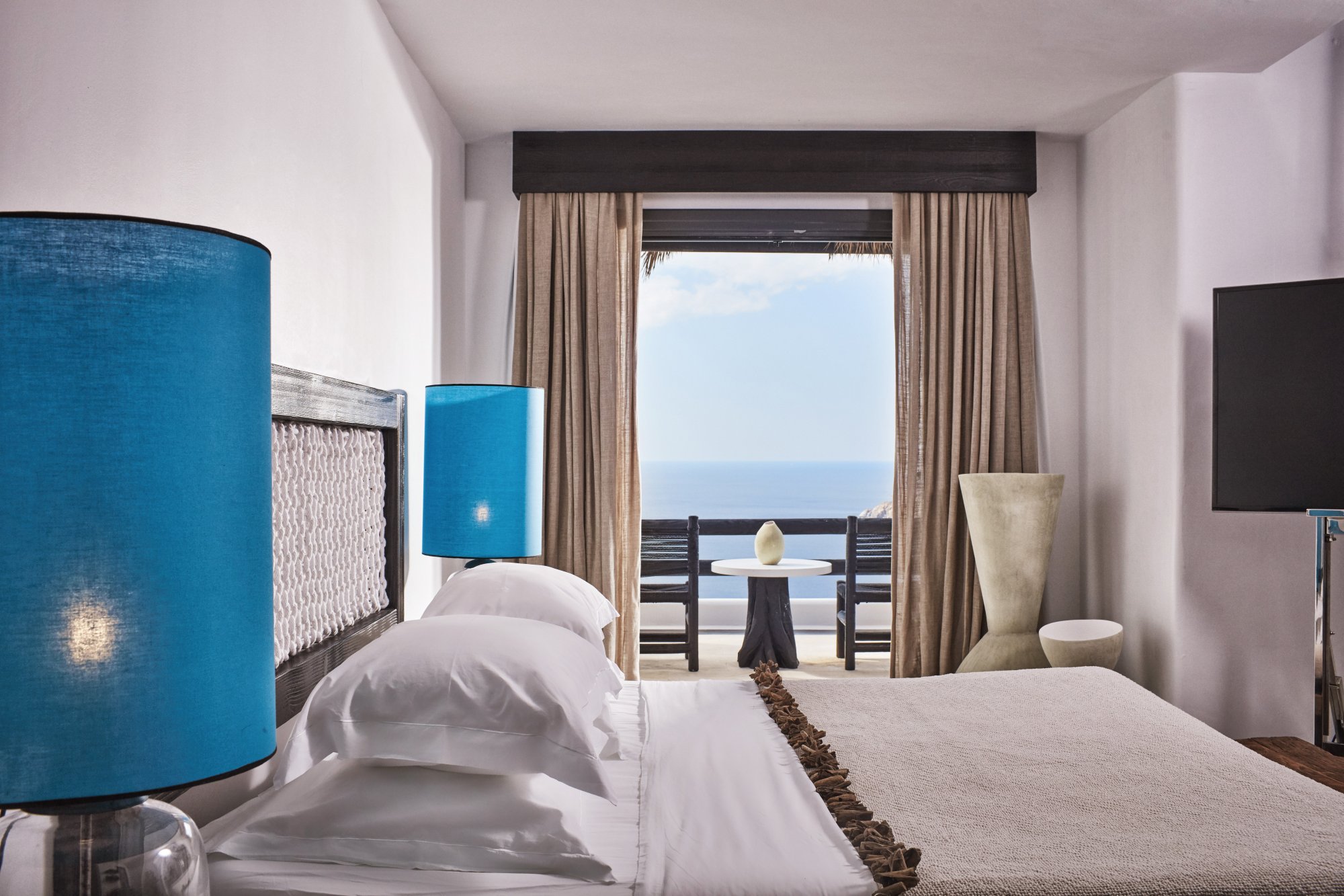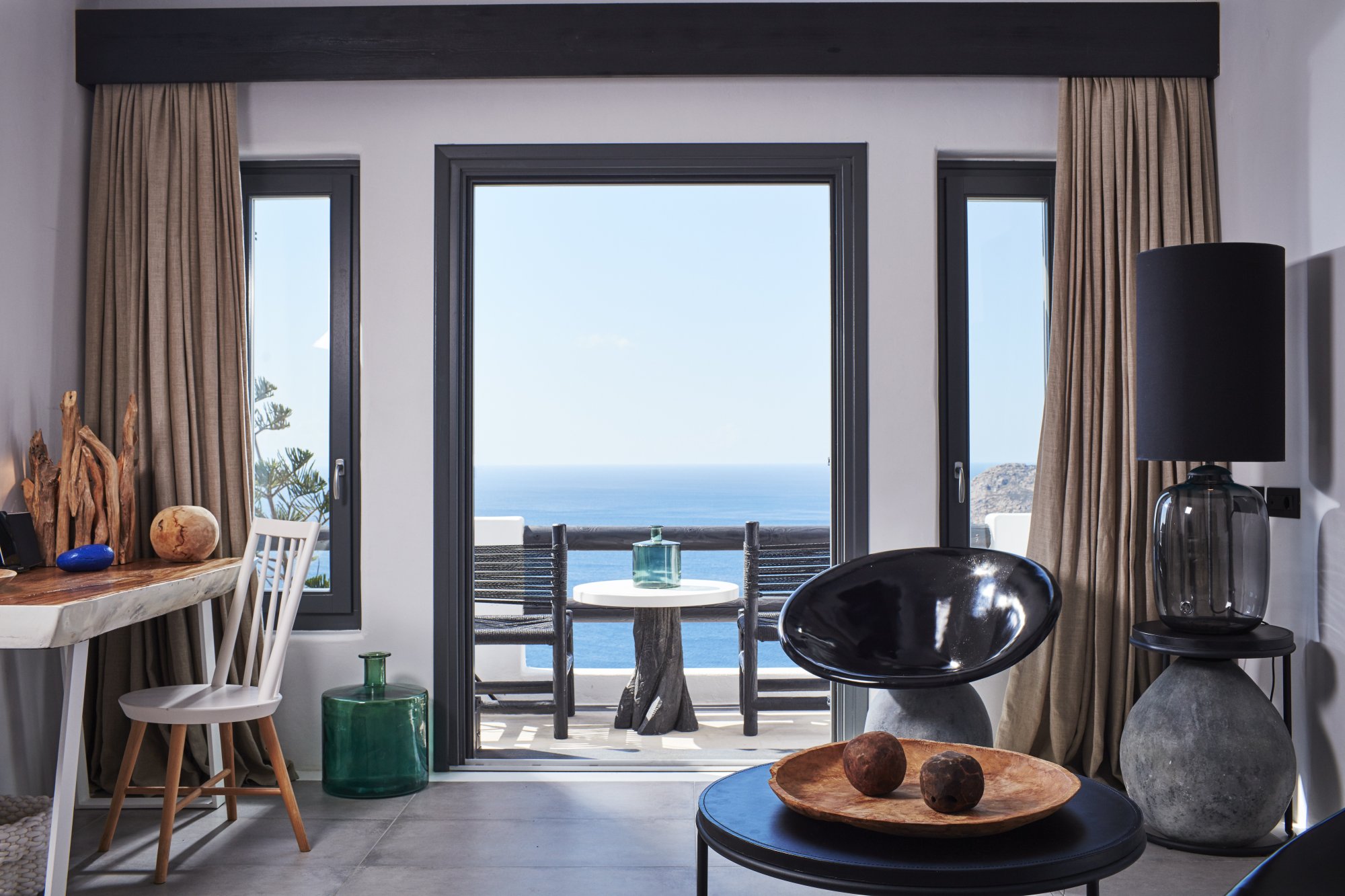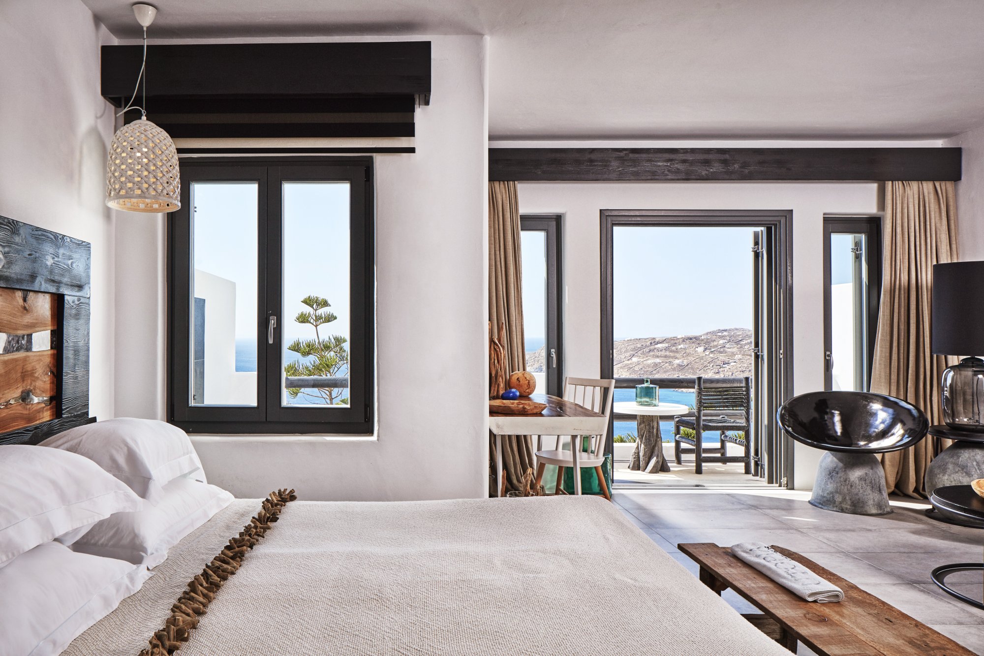 Táto elegantná izba (35 m2) ponúka veľkorysý obytný priestor a súkromný balkón s posedením, odkiaľ sa môžete kochať panoramatickým výhľadom na záliv Elia a ostrov Mykonos. Súčasťou interiéru je manželská posteľ alebo dve samostatné lôžka, pohovka (alebo prístelka) a dizajnová kúpeľňa s dažďovou sprchou. Môžete sa tešiť na špičkové vybavenie vrátane denne doplňovaných kúpeľňových produktov, luxusných bavlnených obliečok, prémiovej kozmetiky, vysokorýchlostného internetu, dokovacích staníc a tichej klimatizácie. Maximálna kapacita: 3 dospelí.
