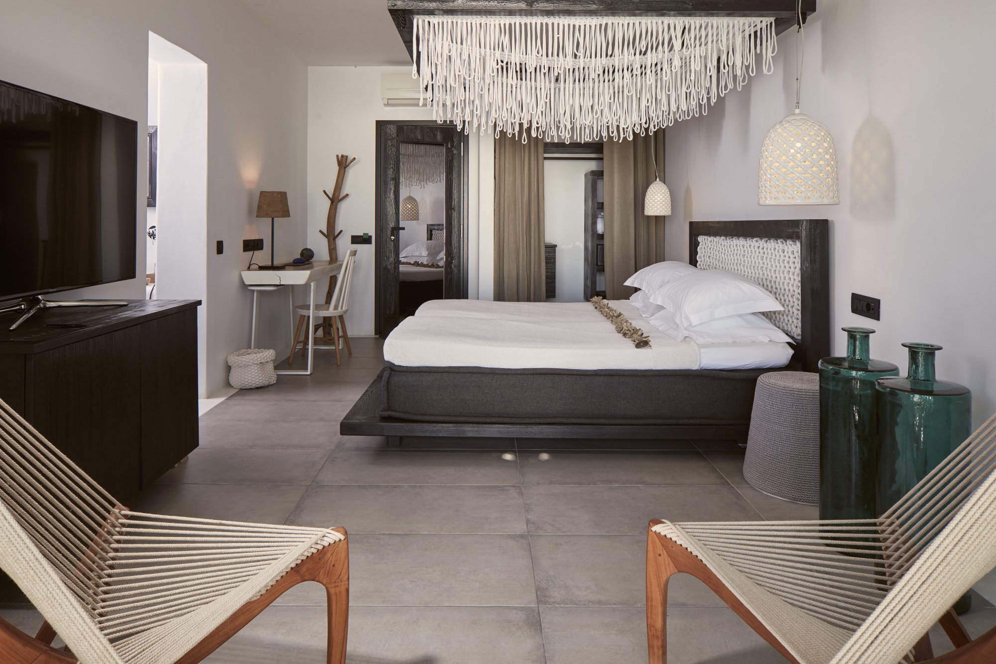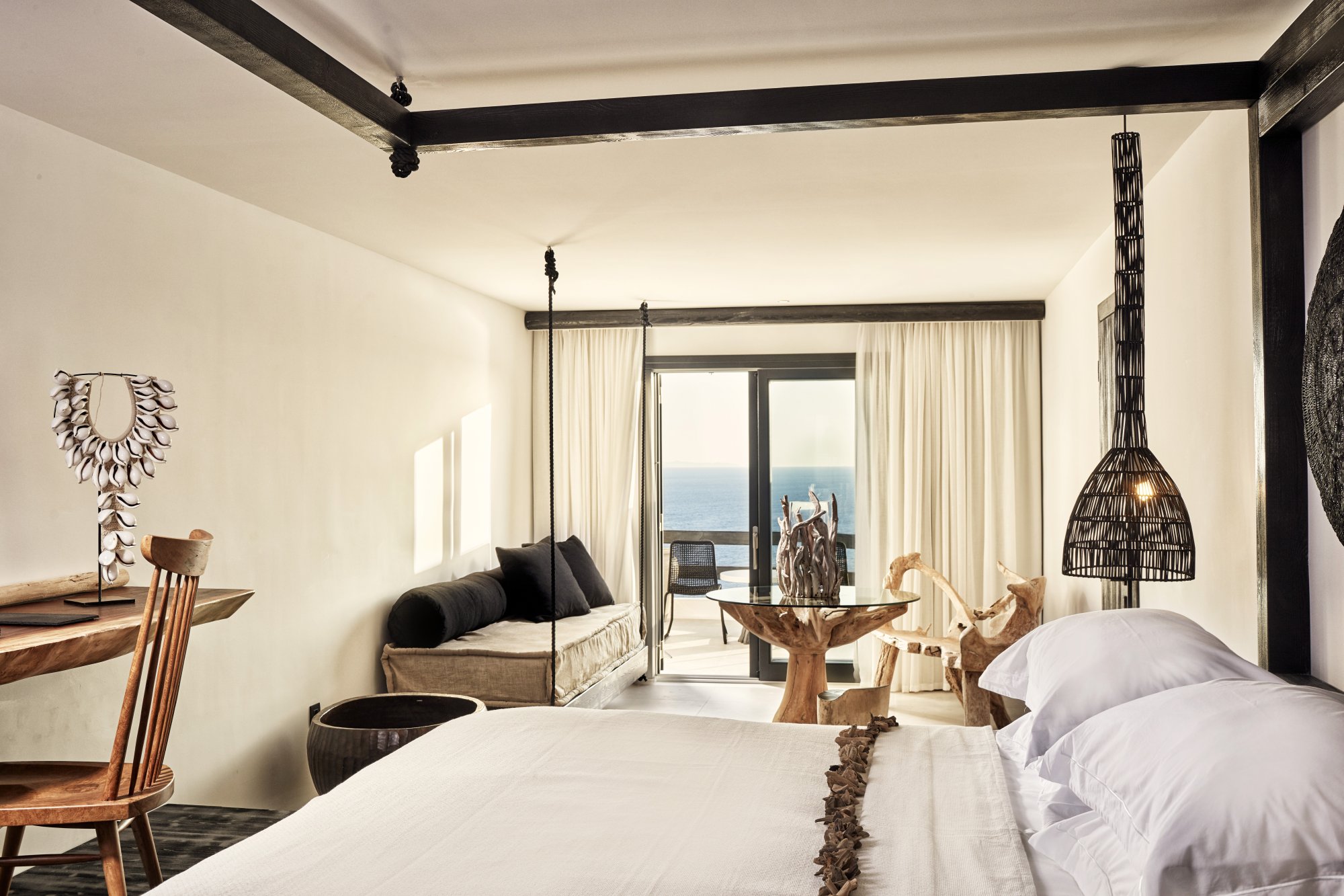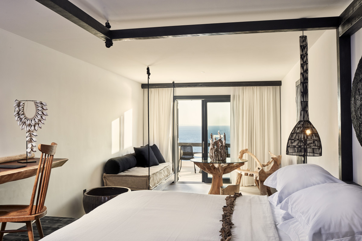 Táto elegantná izba (35 m2) ponúka veľkorysý obytný priestor a súkromný balkón s posedením, odkiaľ sa môžete kochať panoramatickým výhľadom na záliv Elia a ostrov Mykonos. Súčasťou interiéru je manželská posteľ alebo dve samostatné lôžka, pohovka (alebo prístelka) a dizajnová kúpeľňa s dažďovou sprchou. Môžete sa tešiť na špičkové vybavenie vrátane denne doplňovaných kúpeľňových produktov, luxusných bavlnených obliečok, prémiovej kozmetiky, vysokorýchlostného internetu, dokovacích staníc a tichej klimatizácie. Maximálna kapacita: 3 dospelí.