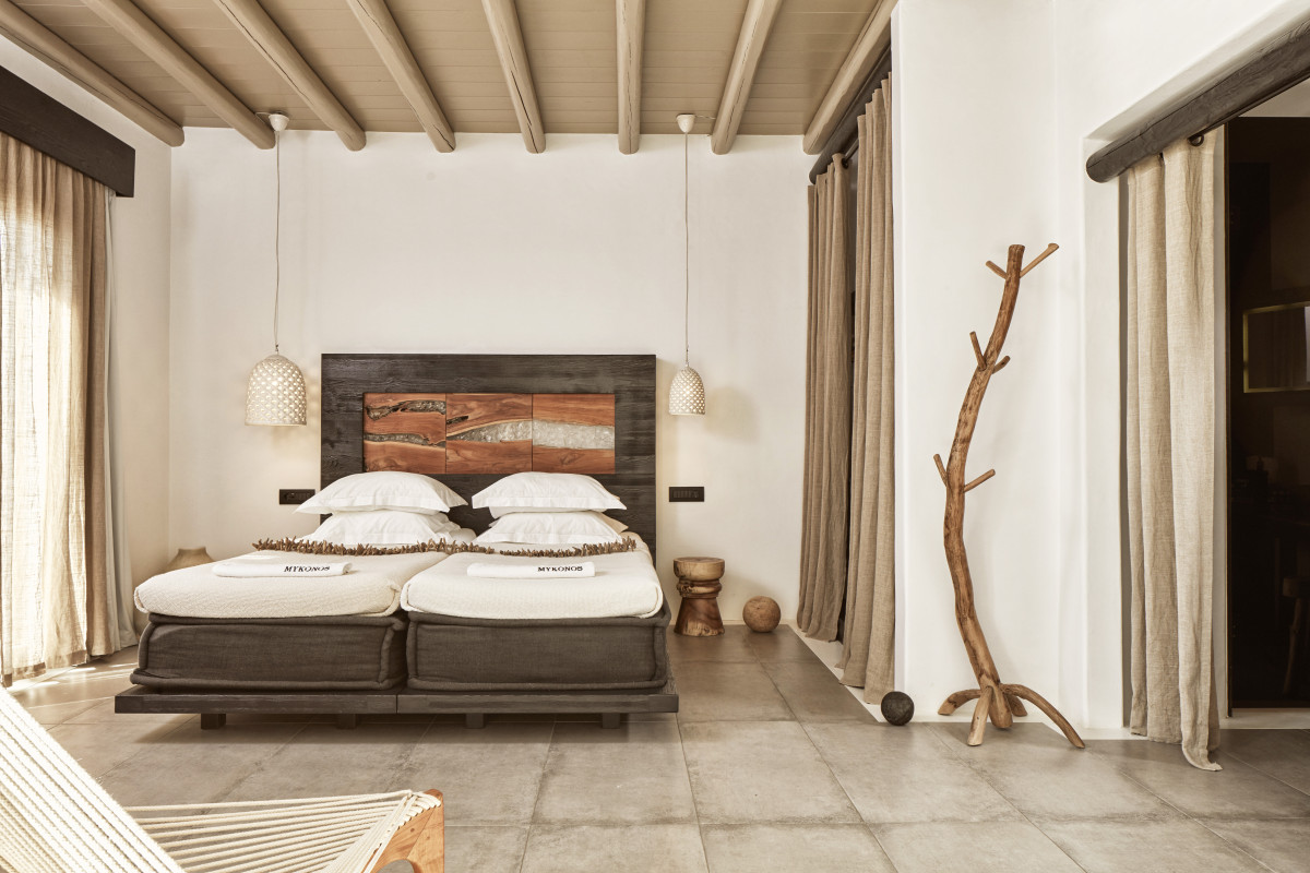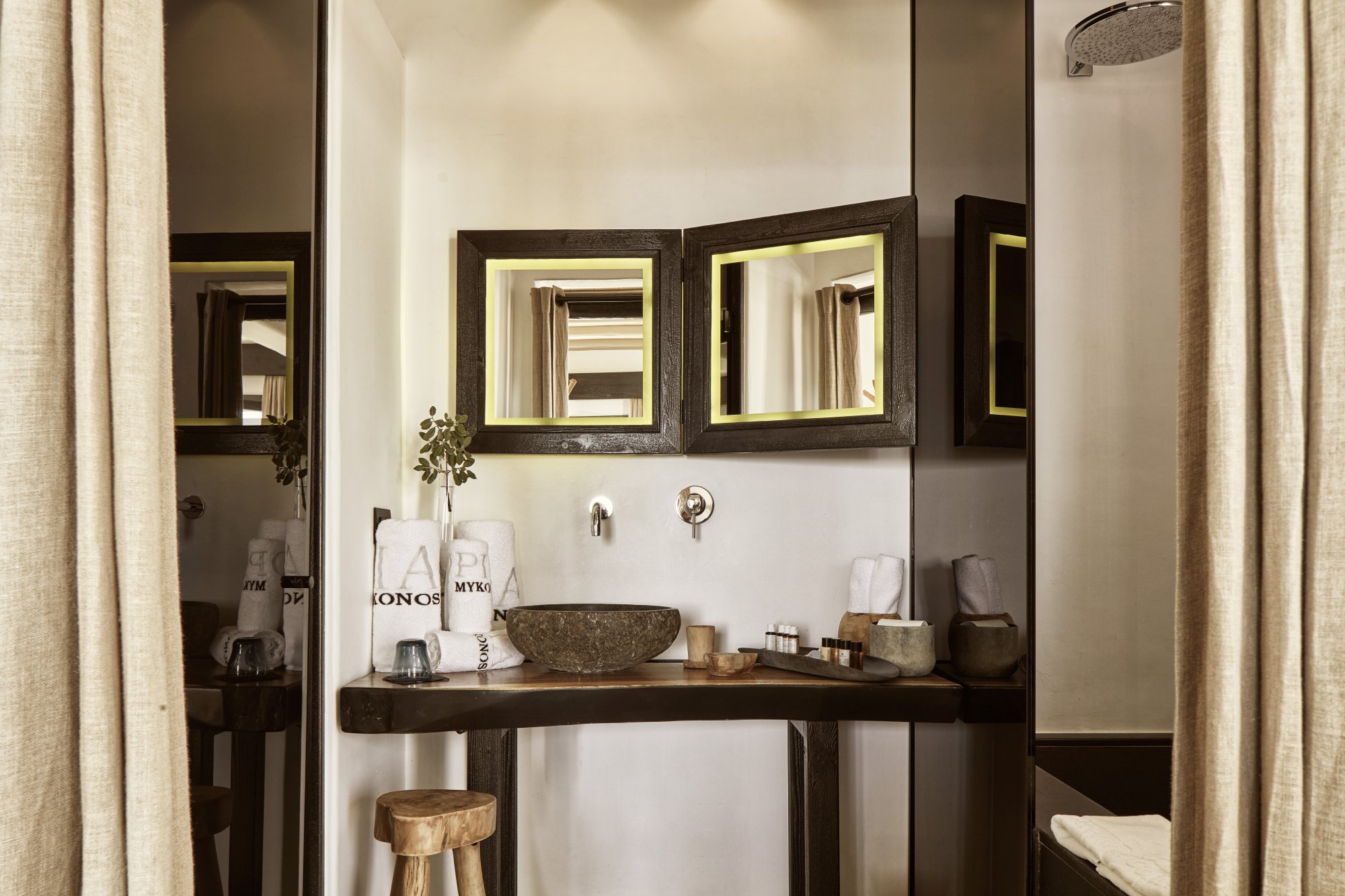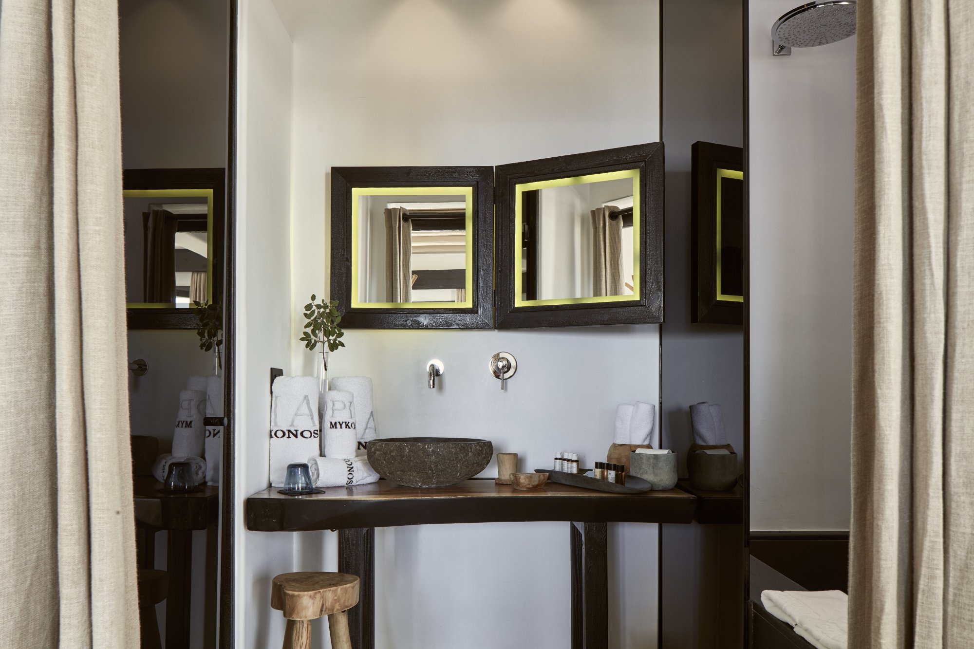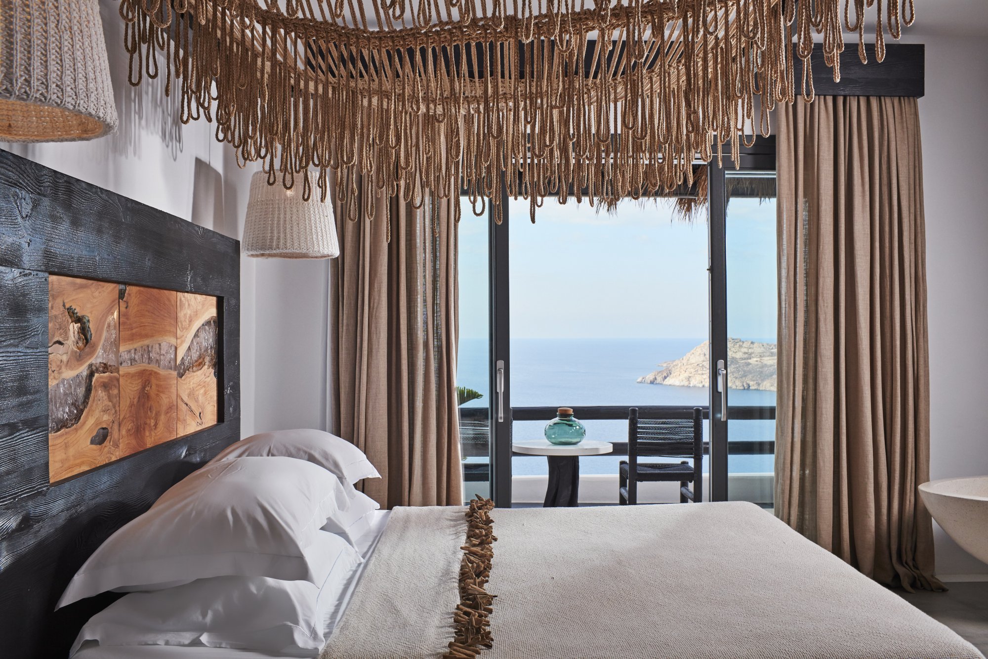 Táto elegantná izba (35 m2) ponúka veľkorysý obytný priestor a súkromný balkón s posedením, odkiaľ sa môžete kochať panoramatickým výhľadom na záliv Elia a ostrov Mykonos. Súčasťou interiéru je manželská posteľ alebo dve samostatné lôžka, pohovka (alebo prístelka) a dizajnová kúpeľňa s dažďovou sprchou. Môžete sa tešiť na špičkové vybavenie vrátane denne doplňovaných kúpeľňových produktov, luxusných bavlnených obliečok, prémiovej kozmetiky, vysokorýchlostného internetu, dokovacích staníc a tichej klimatizácie. Maximálna kapacita: 3 dospelí.
