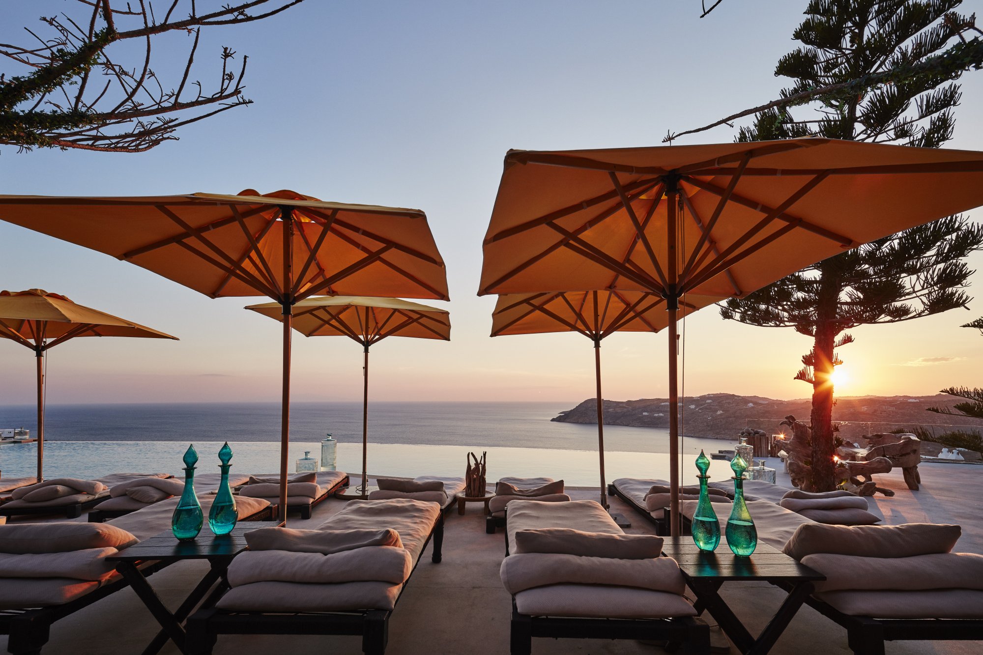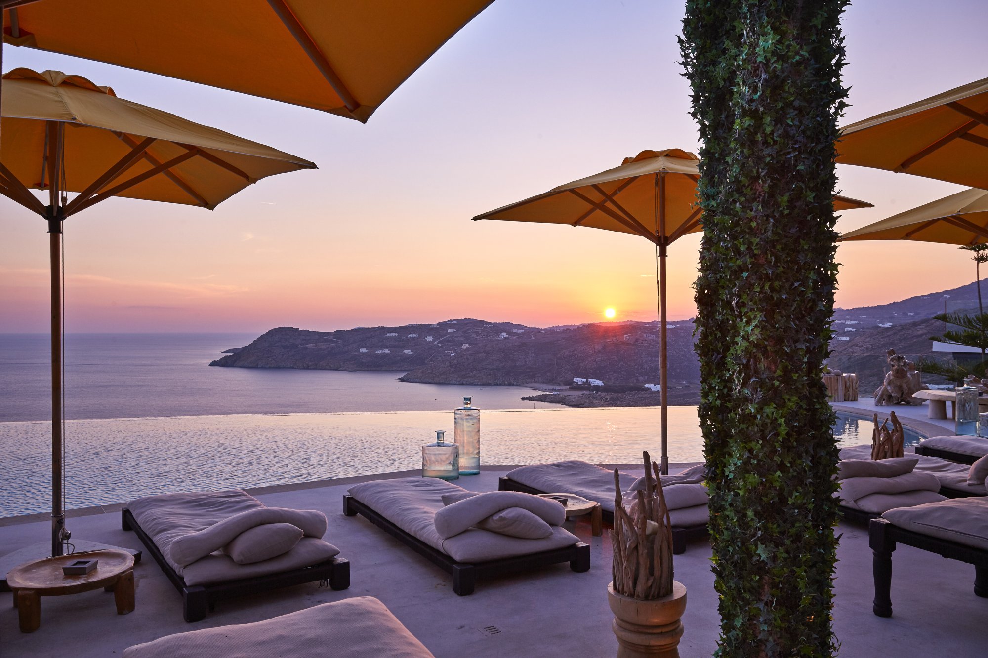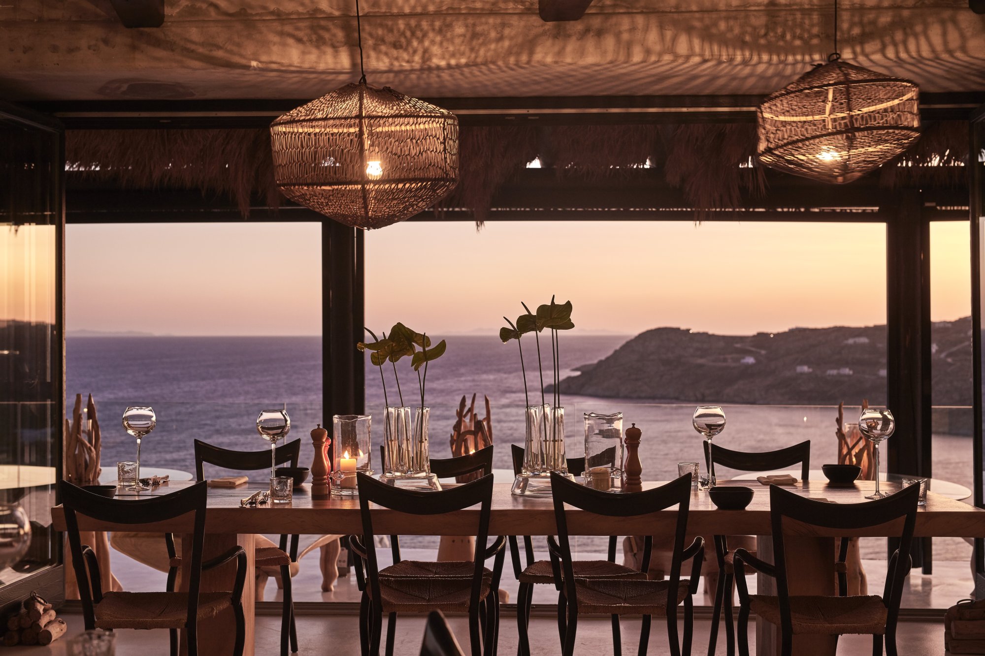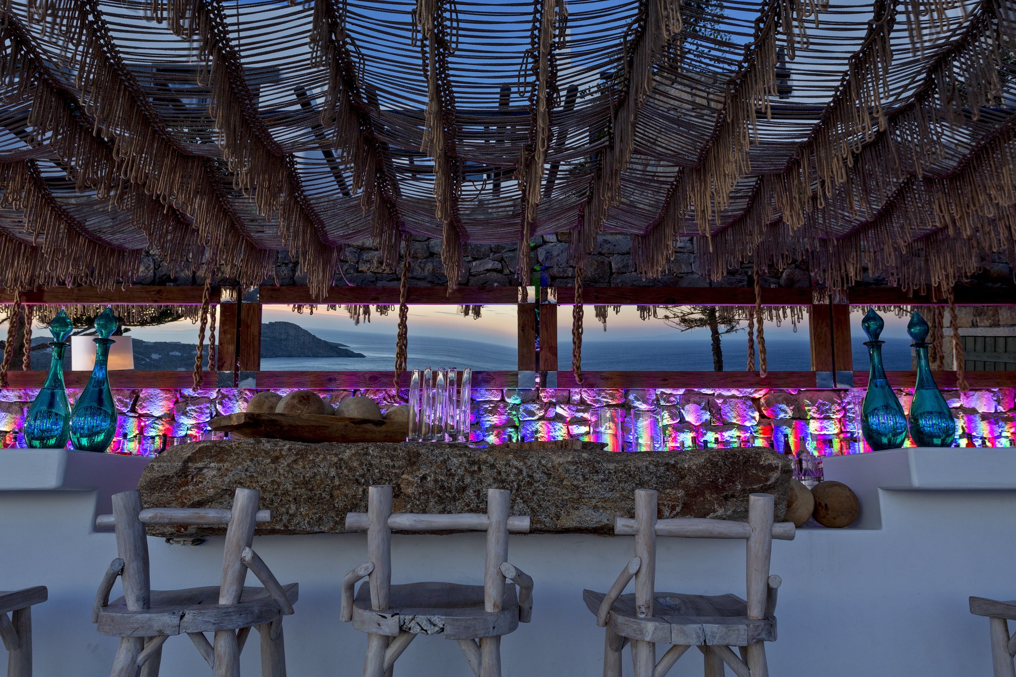 The Pool Club – Tento štýlový bar pri nekonečnom bazéne s panoramatickým výhľadom na pláž Elia je otvorený od rána až do neskorých nočných hodín a ponúka uvoľnenú atmosféru ako stvorenú na nerušený odpočinok. V ktorúkoľvek dennú dobu tu nájdete presne to, na čo máte práve chuť – od osviežujúcich nápojov ráno cez ľahké občerstvenie a exotické koktaily počas popoludnia, aperitívy pri západe slnka až po sofistikovaný výber destilátov po zotmení. Vyberte si z ponuky osviežujúcich smoothies, ľadovej kávy, originálnych koktailov a prémiových liehovín, ktoré dopĺňa menu s drobnými špecialitami. So západom slnka sa Pool Club mení na večerný lounge bar s ožiareným bazénom v pozadí, ktorý prináša do hotela kus vyhláseného nočného života na ostrove Mykonos. Otváracia doba: 11:00–1:00.