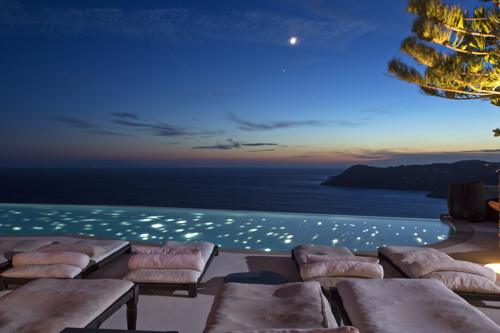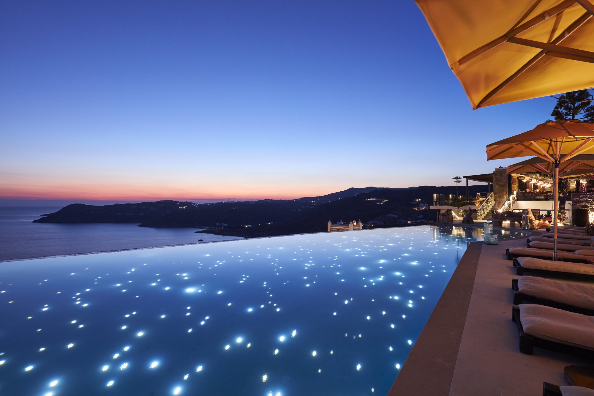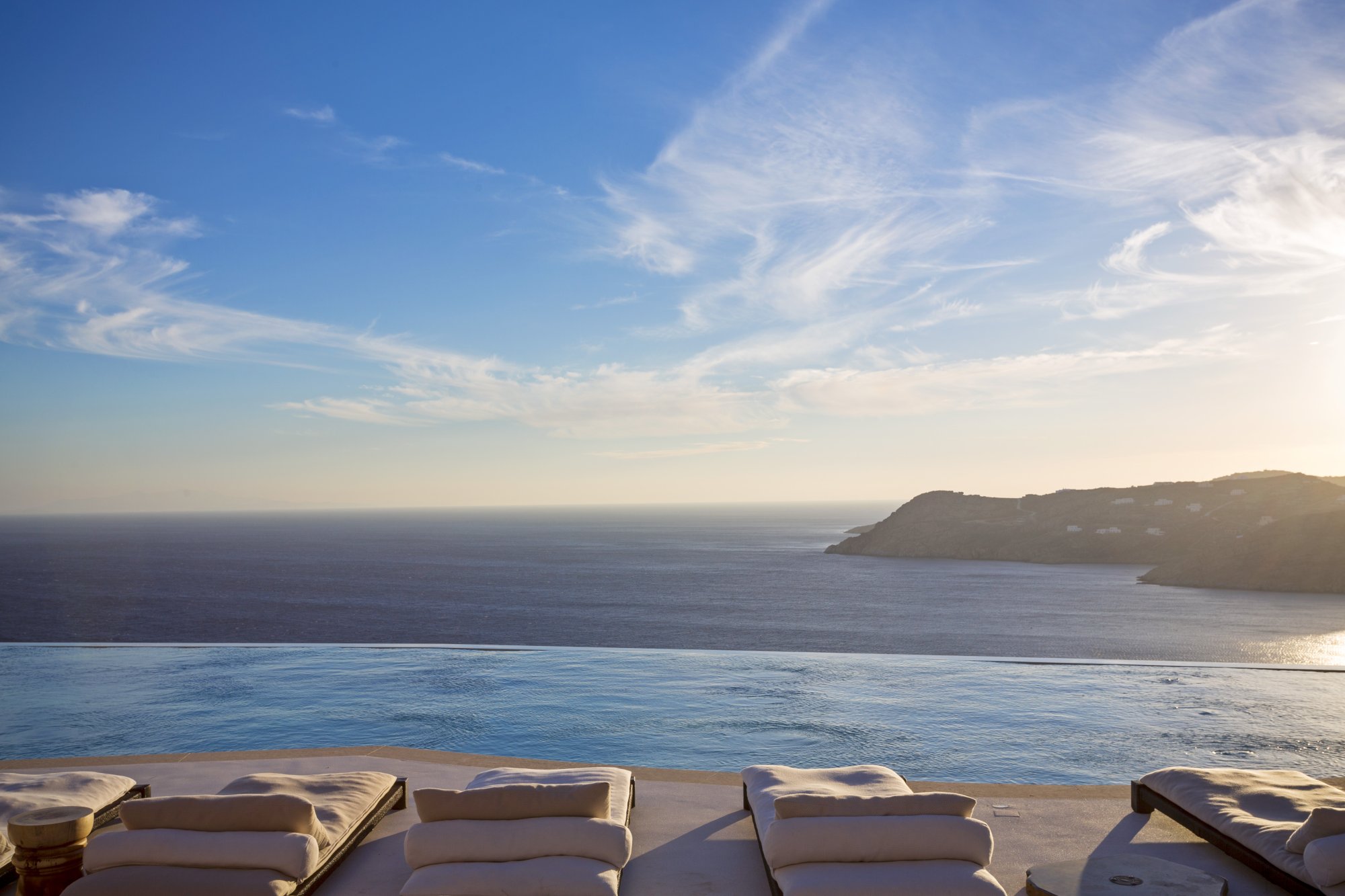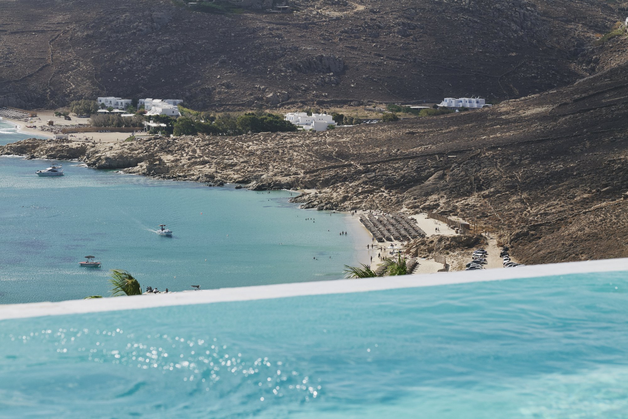 The Pool Club – Tento štýlový bar pri nekonečnom bazéne s panoramatickým výhľadom na pláž Elia je otvorený od rána až do neskorých nočných hodín a ponúka uvoľnenú atmosféru ako stvorenú na nerušený odpočinok. V ktorúkoľvek dennú dobu tu nájdete presne to, na čo máte práve chuť – od osviežujúcich nápojov ráno cez ľahké občerstvenie a exotické koktaily počas popoludnia, aperitívy pri západe slnka až po sofistikovaný výber destilátov po zotmení. Vyberte si z ponuky osviežujúcich smoothies, ľadovej kávy, originálnych koktailov a prémiových liehovín, ktoré dopĺňa menu s drobnými špecialitami. So západom slnka sa Pool Club mení na večerný lounge bar s ožiareným bazénom v pozadí, ktorý prináša do hotela kus vyhláseného nočného života na ostrove Mykonos. Otváracia doba: 11:00–1:00.