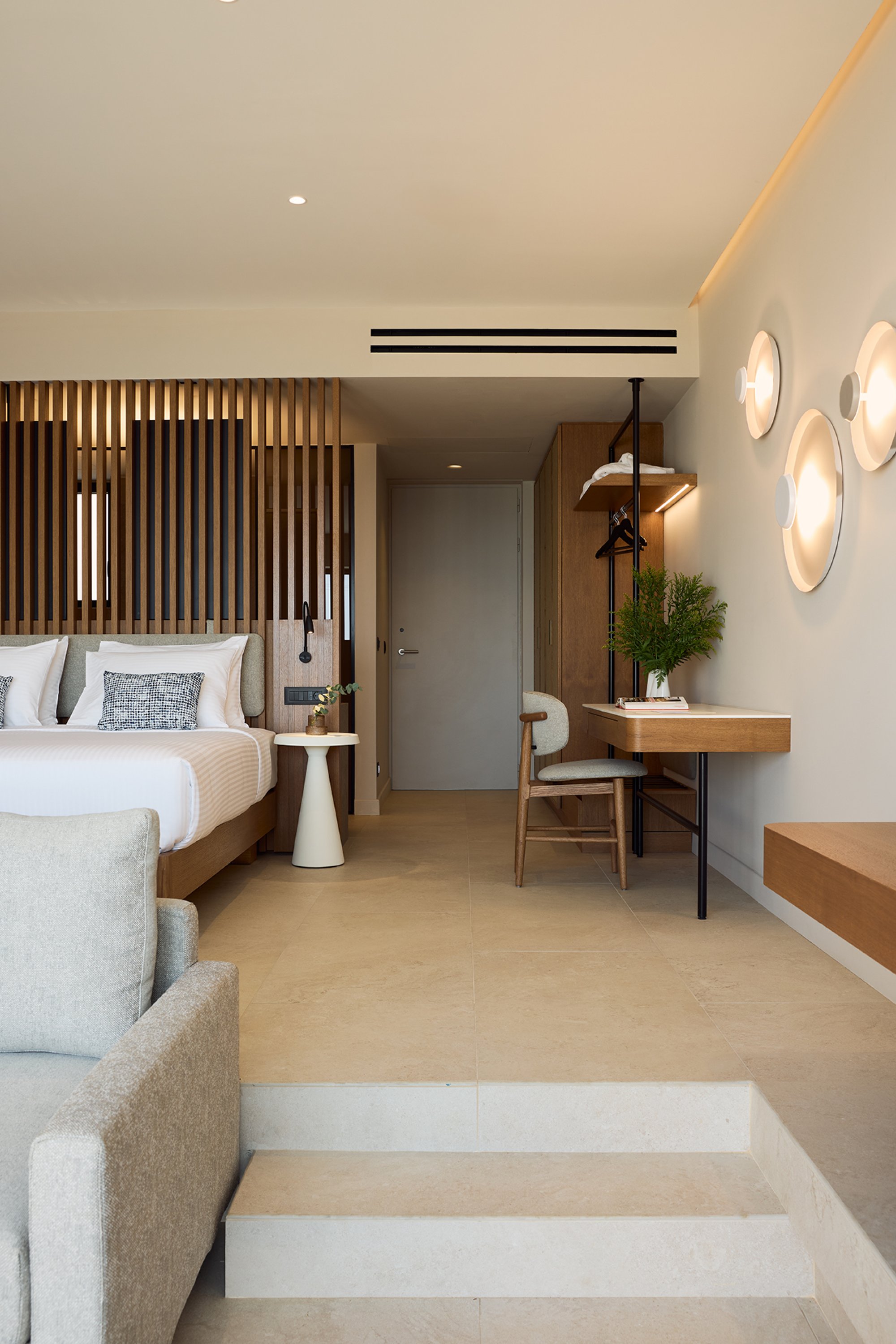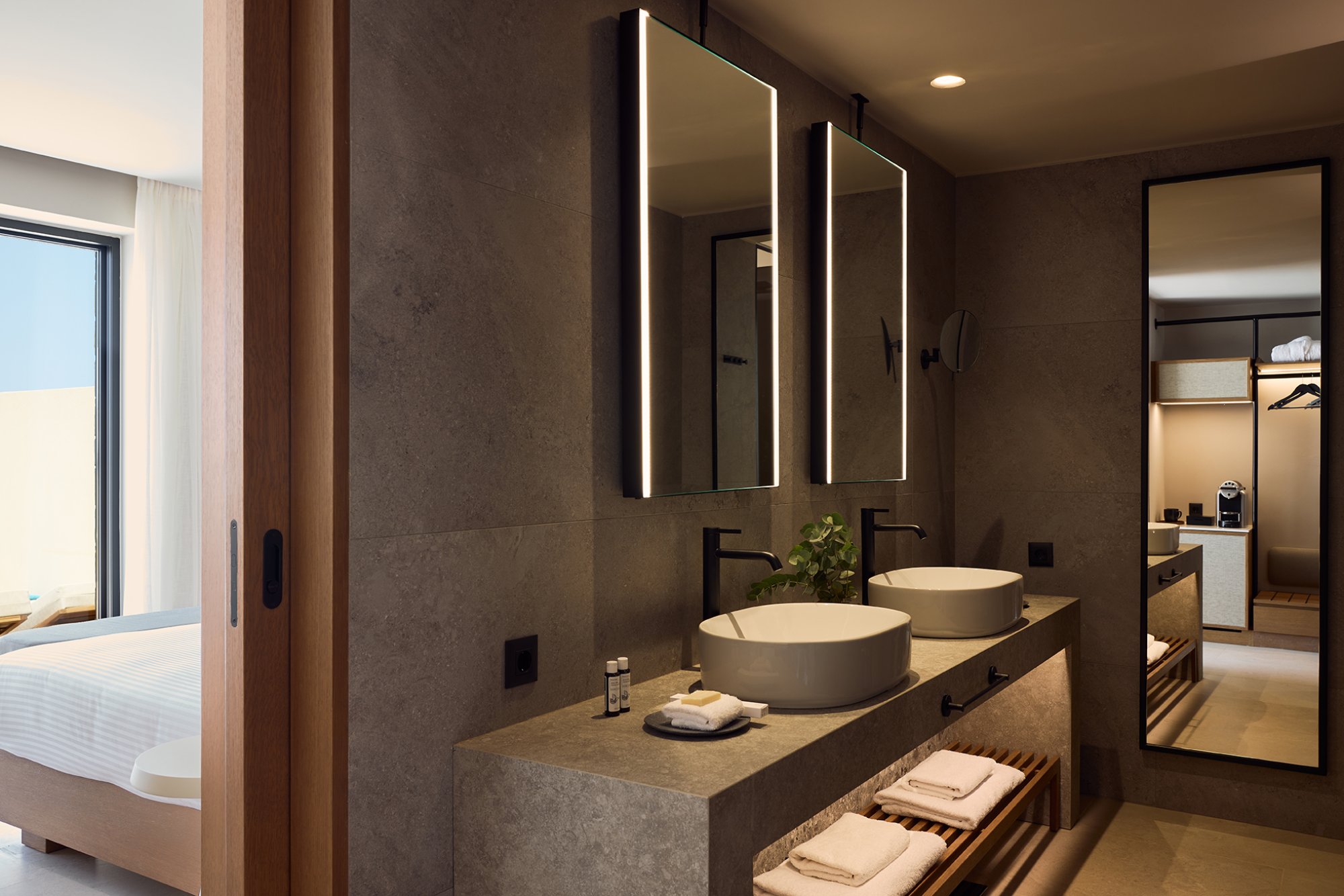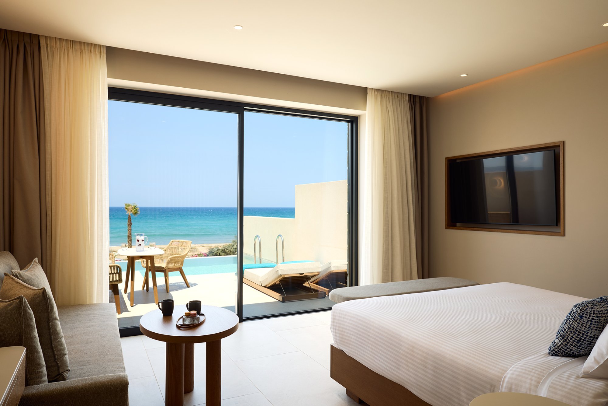 Óros Luxury Beach Resort sa pýši prepychovou kolekciou izieb, apartmánov a víl. V celom areáli je rozmiestnených až 266 ubytovacích jednotiek, pričom každá z nich bola starostlivo navrhnutá s dôrazom na maximálny komfort hostí. Priestorom dominuje minimalistický, nadčasový dizajn, ktorý v kombinácii s jemnou paletou farieb vytvára pokojné zázemie. Všetky jednotky navyše zdobia majestátne francúzske okná, cez ktoré do interiérov prúdi dostatok slnečného svetla a zároveň odhaľujú prekrásne výhľady na morskú hladinu. Preskúmajte celú ponuku a vyberte si tú najlepšiu možnosť práve pre vás – napríklad apartmán s vlastným bazénom, kde môžete relaxovať v úplnom súkromí.