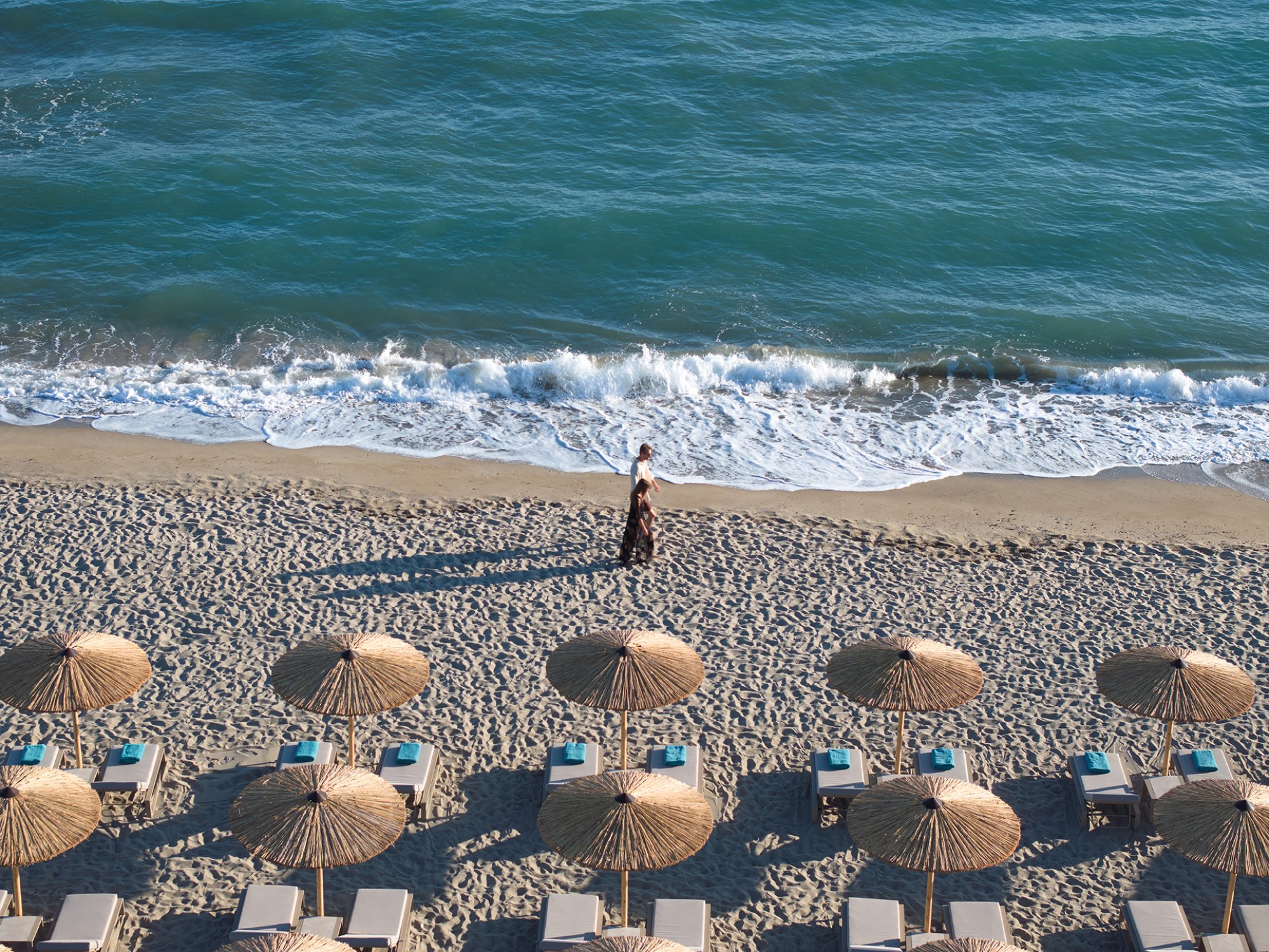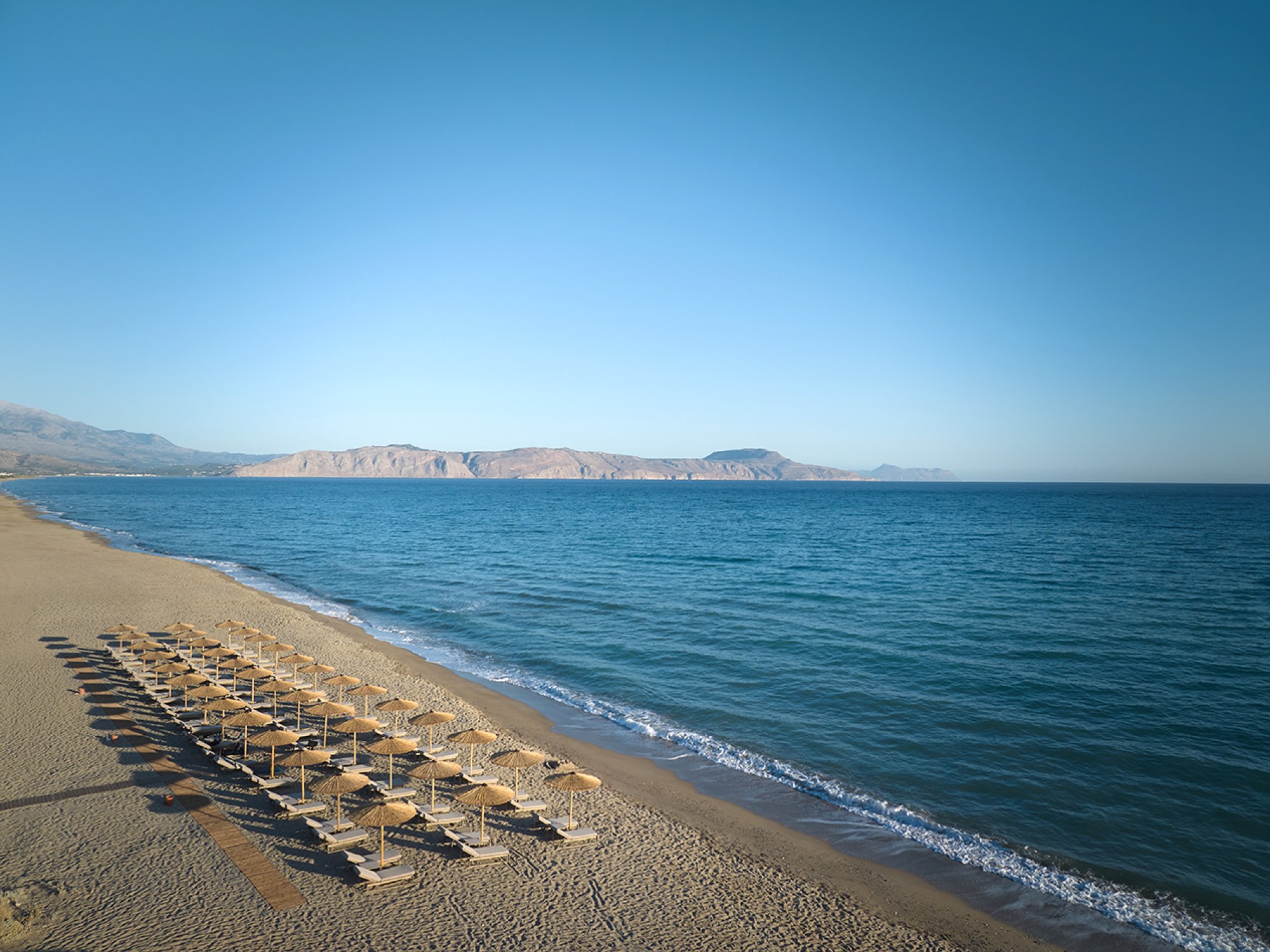 Óros Luxury Beach Resort sa rozprestiera priamo pri nádhernej pláži s krištáľovo čistou vodou a jemným pieskom. Tešiť sa tu môžete na komplexný plážový servis – od ležadiel so slnečníkmi, cez plážové prístrešky až po donášku nápojov a ľahkého občerstvenia priamo k ležadlu. Užite si úplne bezstarostný pobyt pri Krétskom mori.