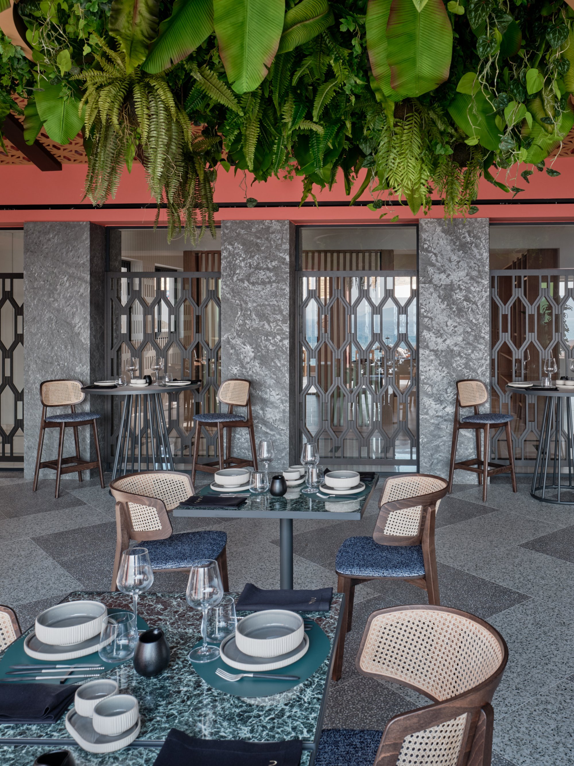 Uvoľnené priestory tejto à la carte reštaurácie lákajú na posedenie s osviežujúcim drinkom a spoločné stolovanie s nádherným výhľadom na more. Večer spríjemní DJ a ochutnať môžete pokrmy kuchyne Nikkei, ktorá spája japonské a peruánske chute. Menu pripravuje vizionársky šéfkuchár Nikos Skamnakis.