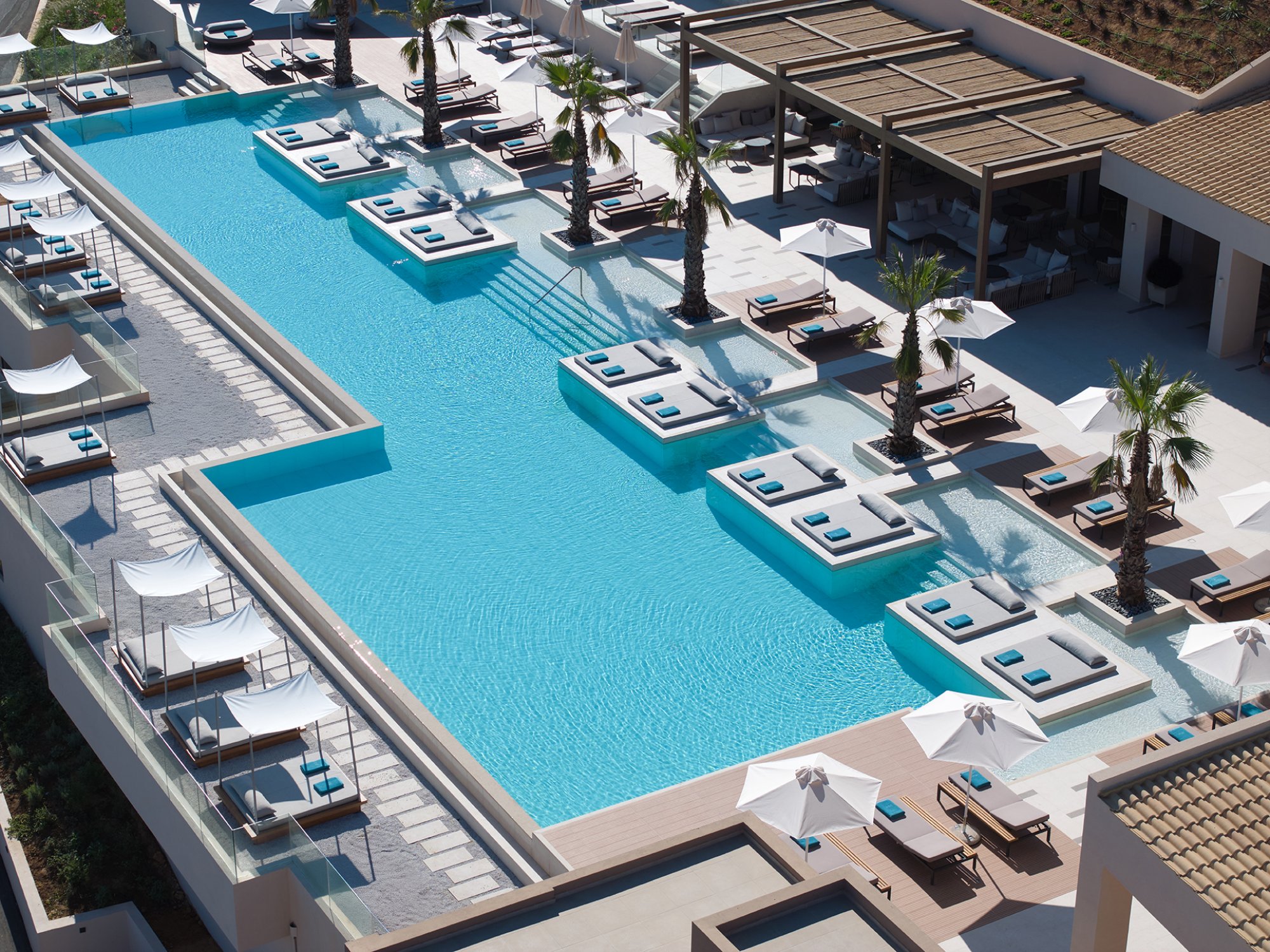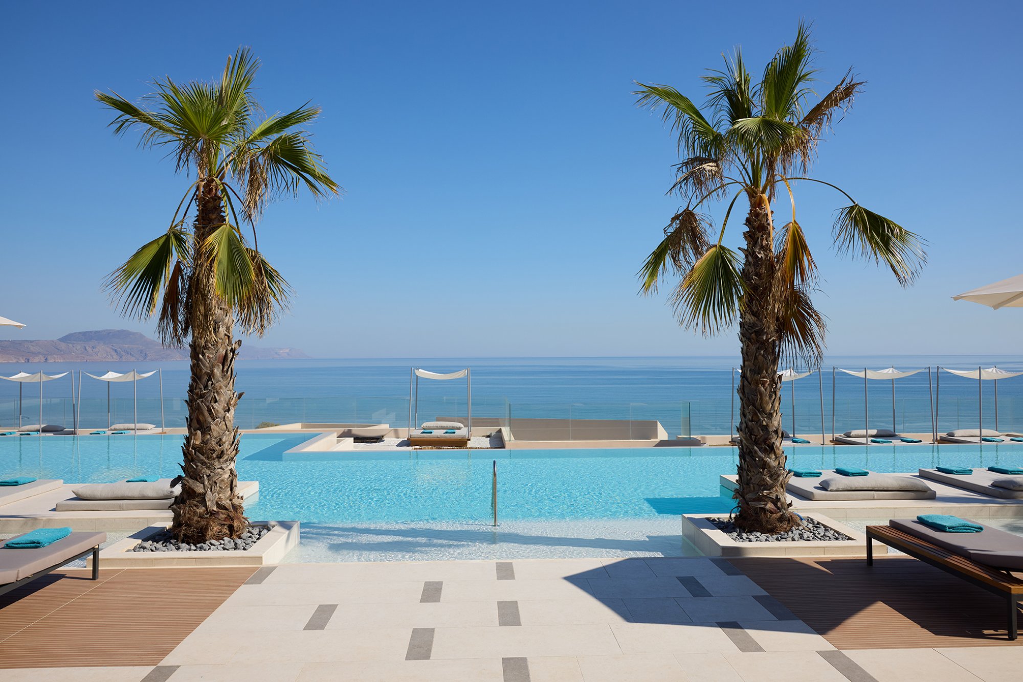 Milovníci pohybu na čerstvom vzduchu ocenia vonkajšiu posilňovňu s pôsobivými výhľadmi na lagúnu a prírodné krásy Kréty. Nechýbajú ani vonkajšie bazény – jeden z nich je vyhradený iba pre hostí starších ako 12 rokov. Druhý bazén, situovaný bližšie k pláži, má o niečo živšiu atmosféru, ideálnu pre spoločné chvíle s rodinou. Vo vonkajšom bazéne sa pravidelne konajú aj lekcie aqua fitness. Ďalšie dva bazény sa nachádzajú vo vnútri, kde si môžete užívať protiprúd aj vyhrievané vody.