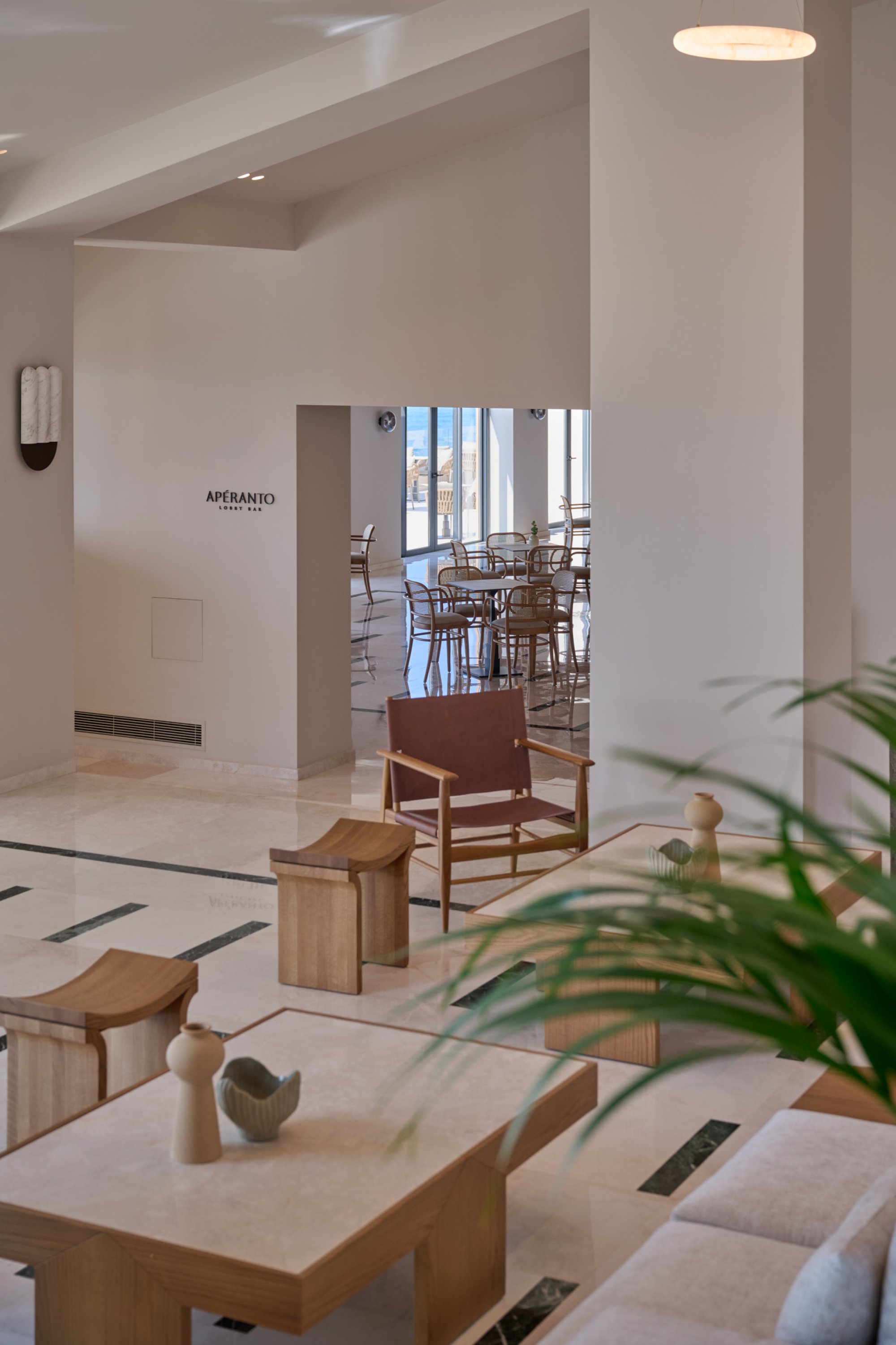 Zastavte sa takmer kedykoľvek na pohár vína, šampanského, kokteilu, piva, cideru alebo iného alkoholického nápoja v tomto minimalisticky zariadenom bare. Vychutnať si tu môžete aj kávu, čaj či iný nealkoholický nápoj, a to s impozantným výhľadom na Krétske more.