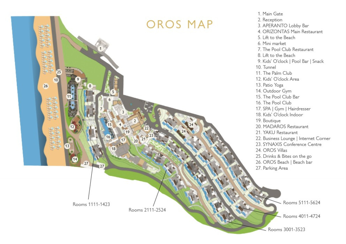 Óros Luxury Beach Resort predstavuje ideálne zázemie pre jednotlivcov, páry aj rodiny s deťmi. Hostia si môžu užívať vonkajšie aj kryté bazény, fitness centrum, posilňovňu pod holým nebom, wellness, detské ihrisko aj zábavný program v detskom klube.