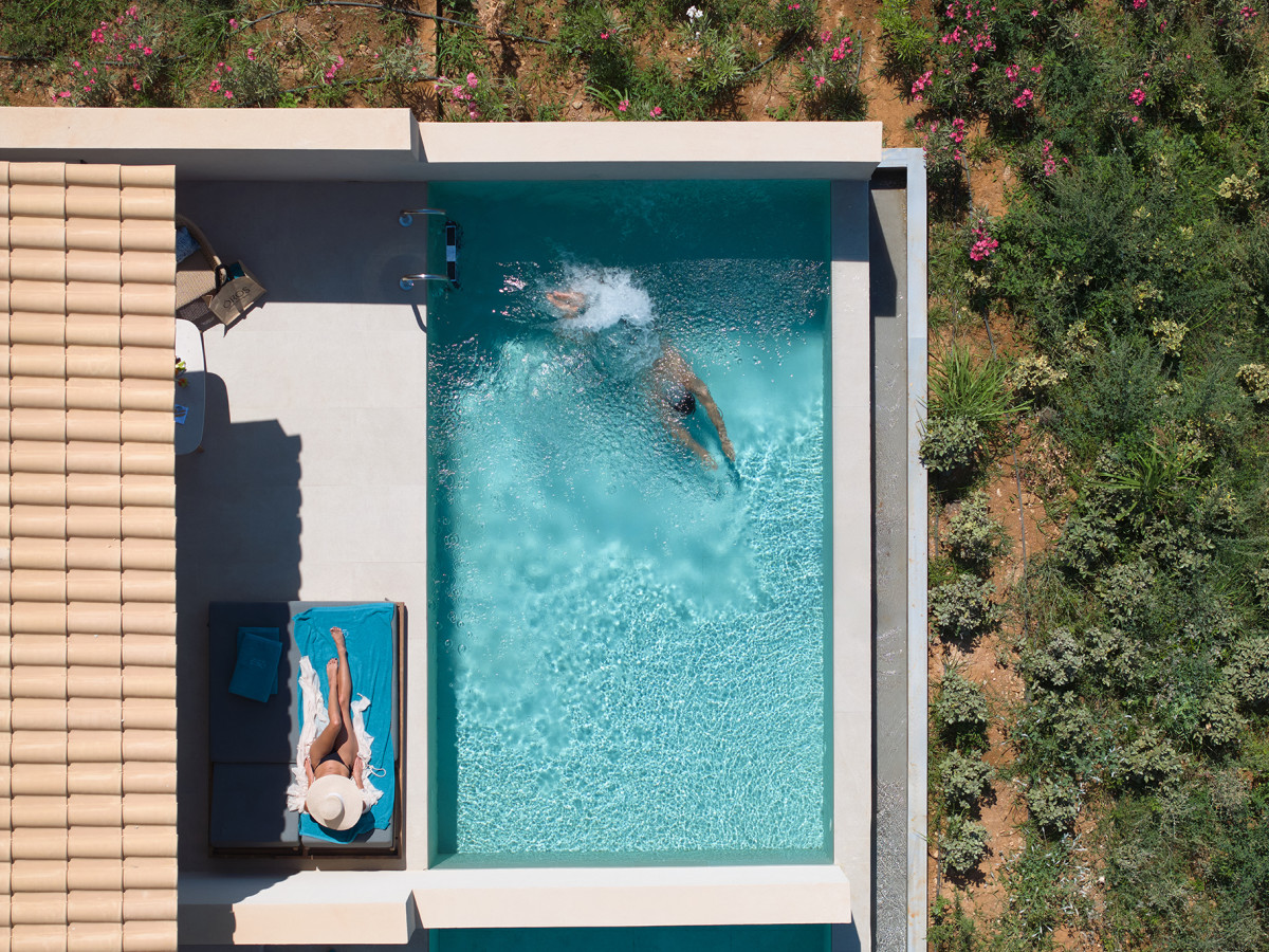 Užite si pobyt v tejto nádherne zariadenej izbe, ktorej priestory zdobí minimalistický dizajn a jemná paleta farieb. Súčasťou je spálňa s manželskou posteľou a rozkladacou pohovkou, kúpeľňa a terasa so súkromným bazénom. Relaxujte v príjemných vodách a kochajte sa čiastočným výhľadom na more. Maximálna kapacita: 3 dospelé osoby.