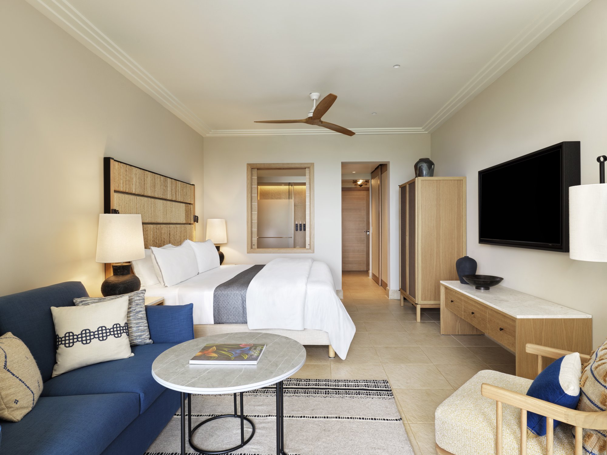Hotel Westin Resort Costa Navario ponúka 445 luxusných izieb a suít, ktorých dizajn je inšpirovaný starými sídlami z regiónu Messénia - juhozápadnej časti Grécka. Interiéry kombinujú prírodné prvky a moderné vybavenie vrátane exkluzívnej postele, ktorá poskytuje bezkonkurenčné pohodlie. Niektoré z izieb a apartmánov sa pýšia ničím nerušeným výhľadom na Iónske more a niektoré disponujú navyše súkromným nekonečným bazénom.