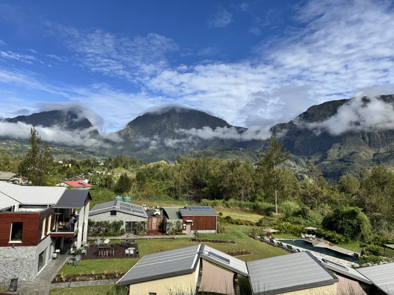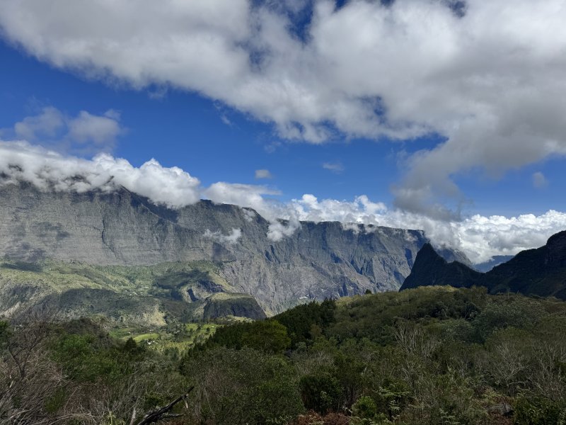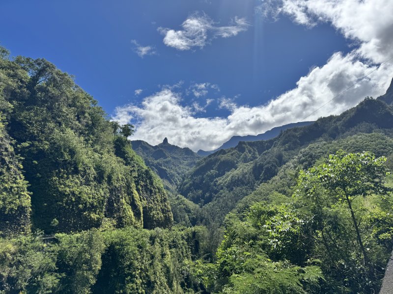 Mezitím jsme se rozhodli využít čas, a tak jsme se vydali na cestu směr Cirque de Cilaos. Už samotná cesta klikatými serpentýnami byla nezapomenutelným zážitkem – před námi se otevíraly nádherné výhledy na vrcholky hor. Cilaos je kouzelná vesnička, která si nás okamžitě získala svou malebností.a nádhernou krajinou Příště bychom zde určitě chtěli strávit alespoň jednu noc. Kvůli zpoždění způsobenému nevydařeným letem jsme dorazili kolem půl jedenácté, kdy se už začala stahovat oblačnost. Přesto jsme si prošli několik krásných vyhlídek na okolní krajinu, navštívili centrum s trhy a dopřáli si drobné nákupy a oběd. Odpoledne nás už tradičně potkal déšť.