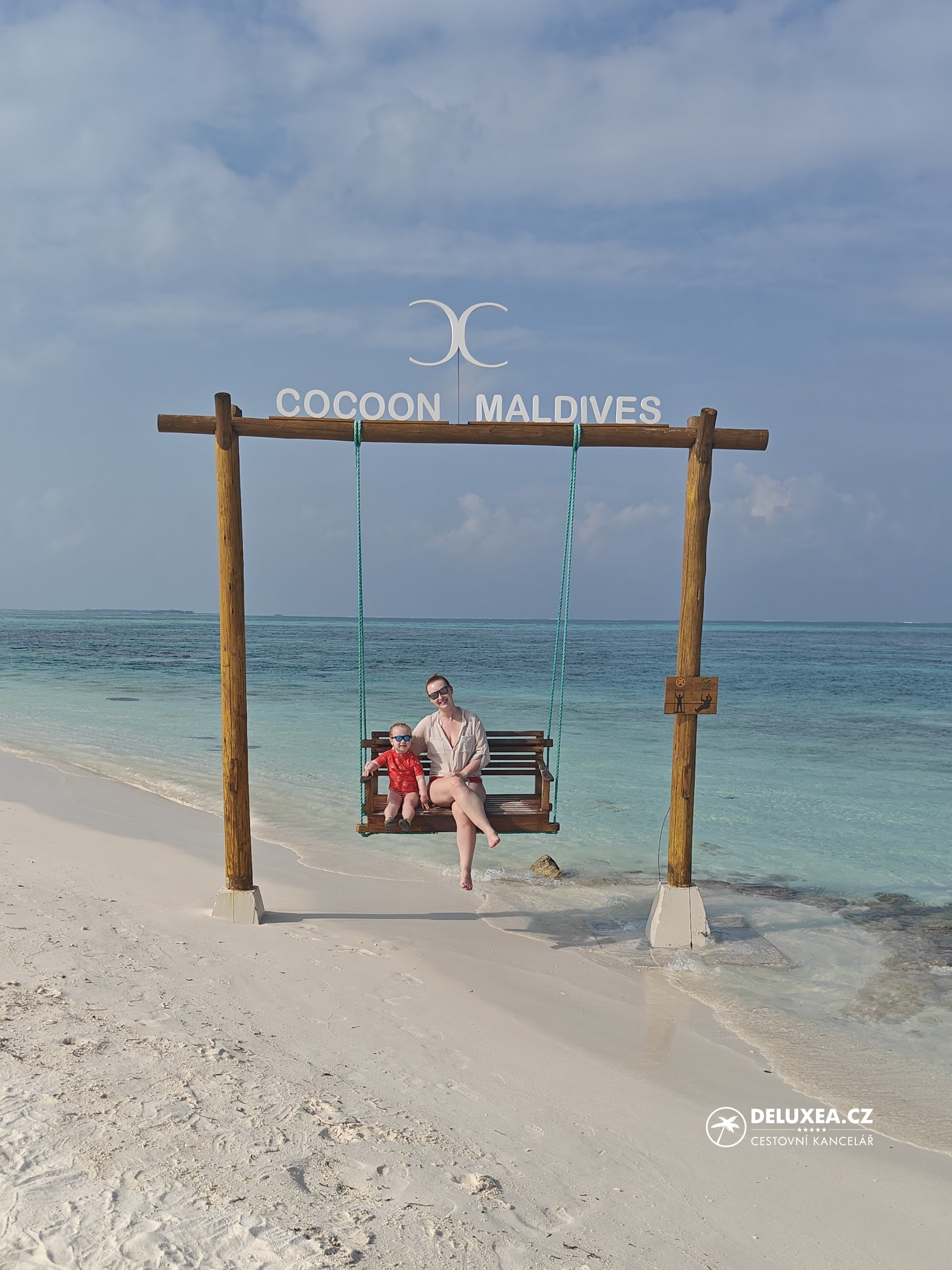 Cocoon je menší resort, který funguje již 7 let a stále je velmi oblíbený u hostů. Je ideálním místem jak pro rodiny, tak jej hojně využívají na své líbánky i novomanželé. Na výběr ubytování jsou zde jak plážové vily, plážové suity (samostatně stojící budovy poskytující dostatečné soukromí i z pohledu od pláže), rodinné plážové vily, tak i nadvodní Lagoon villy z jedné strany mola, a Lagoon Suite podél celé druhé strany mola. Novinkou od října letošního roku bude, že každá Lagoon Suite bude mít ze své terasy skluzavku do moře, posledních 10 pak soukromý bazén. Na ostrově panuje příjemná rodinná atmosféra, jídlo je chutné a pestré. V rámci all inclusive je k dispozici stravování v hlavní bufetové restauraci, ostatní a la carte restaurace jsou za příplatek. Nicméně doporučuji vyzkoušet Manta Restaurant nacházející se nad vodou, nebo zážitkovou Teppanyaki restauraci Japanese Garden. Děti si vyhrají v místním dětském klubu plném prolézaček a tunelů.