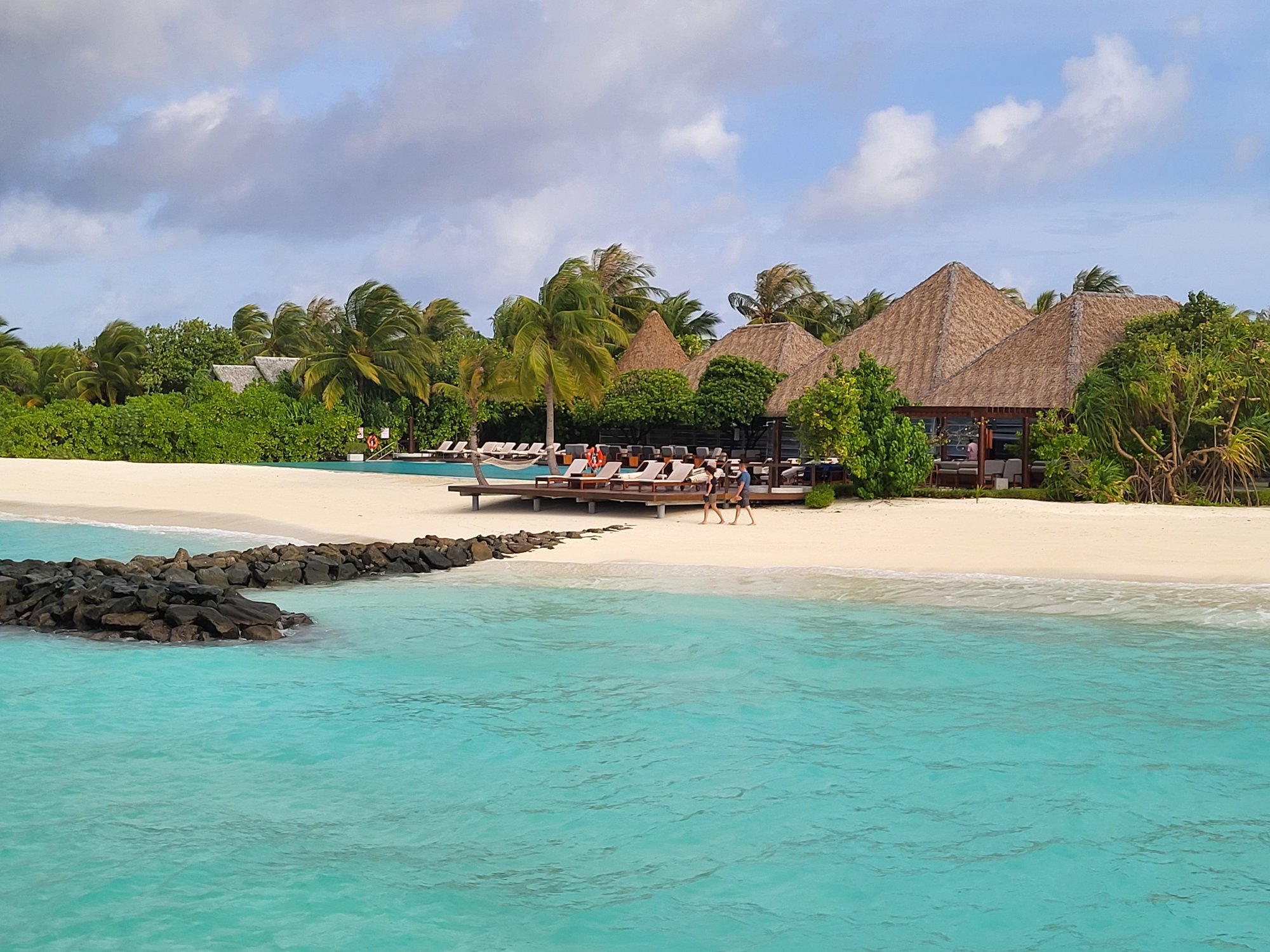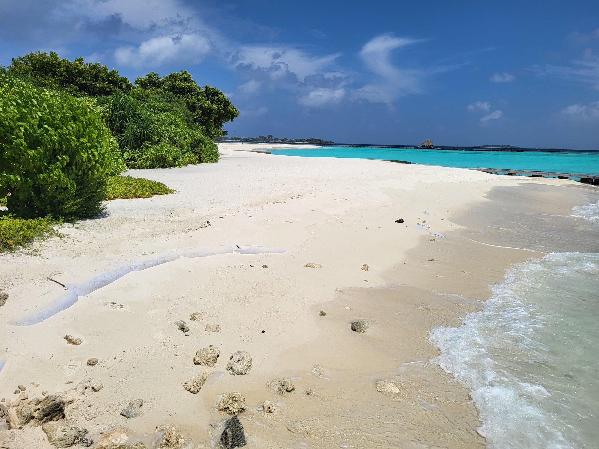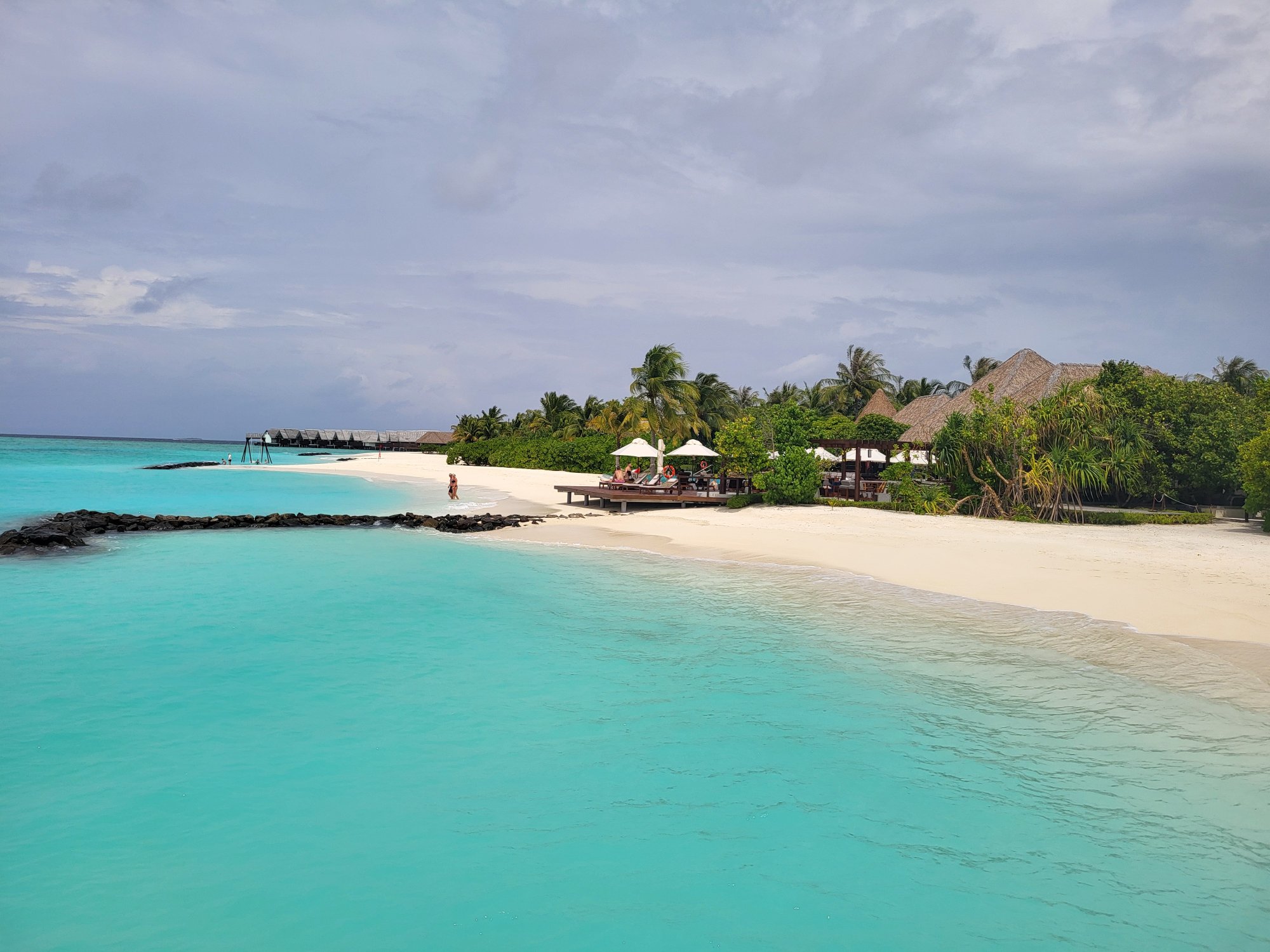 Resort je příjemně veliký s pestrou škálou ubytování na pláži i nad vodou. Má širokou lagunu s bohatým korálovým útesem.