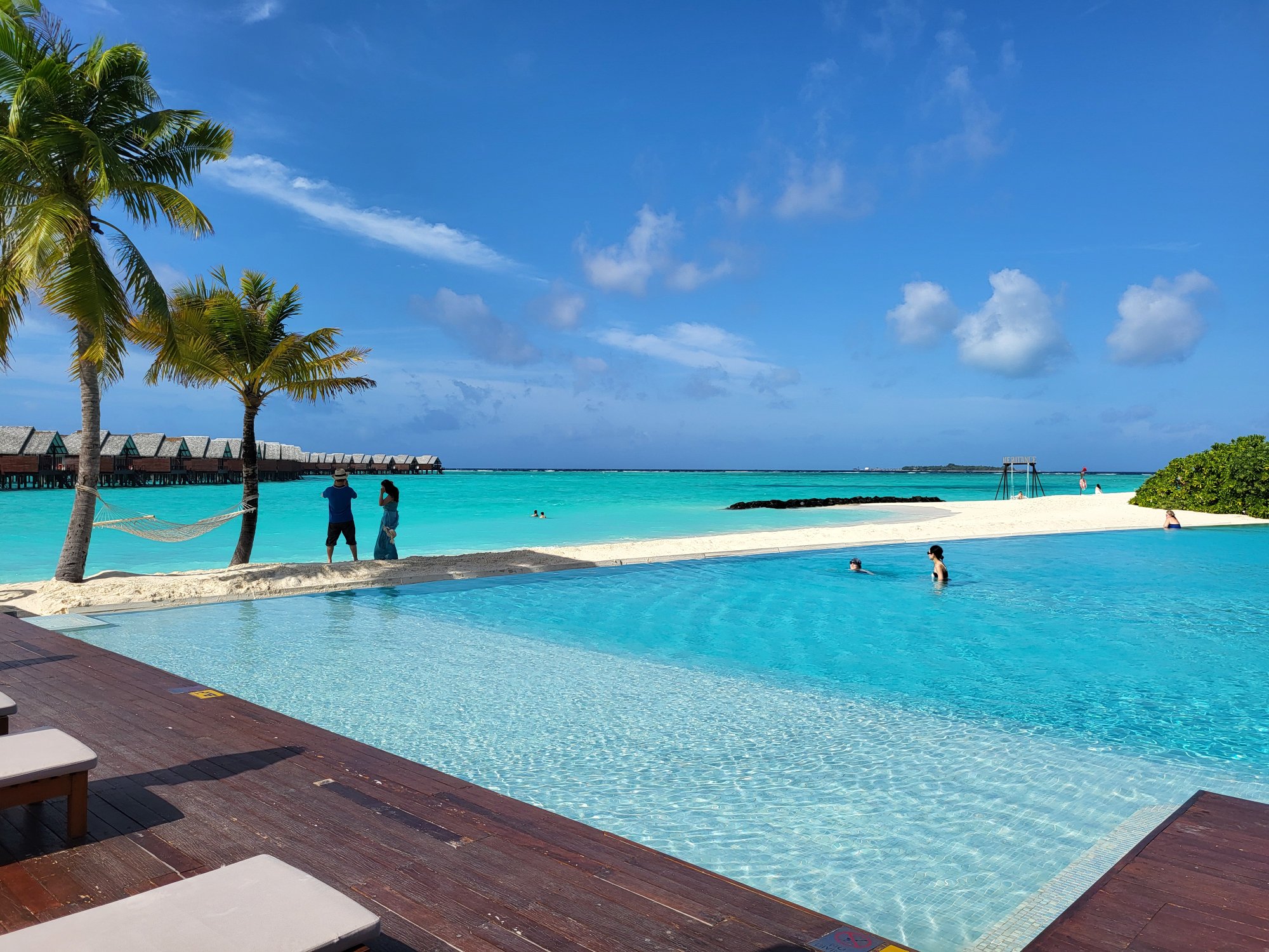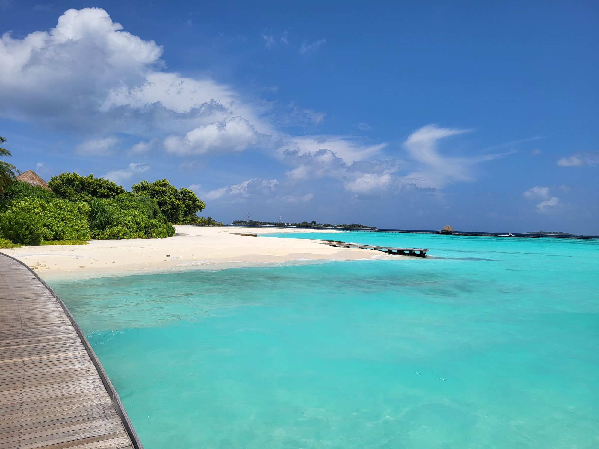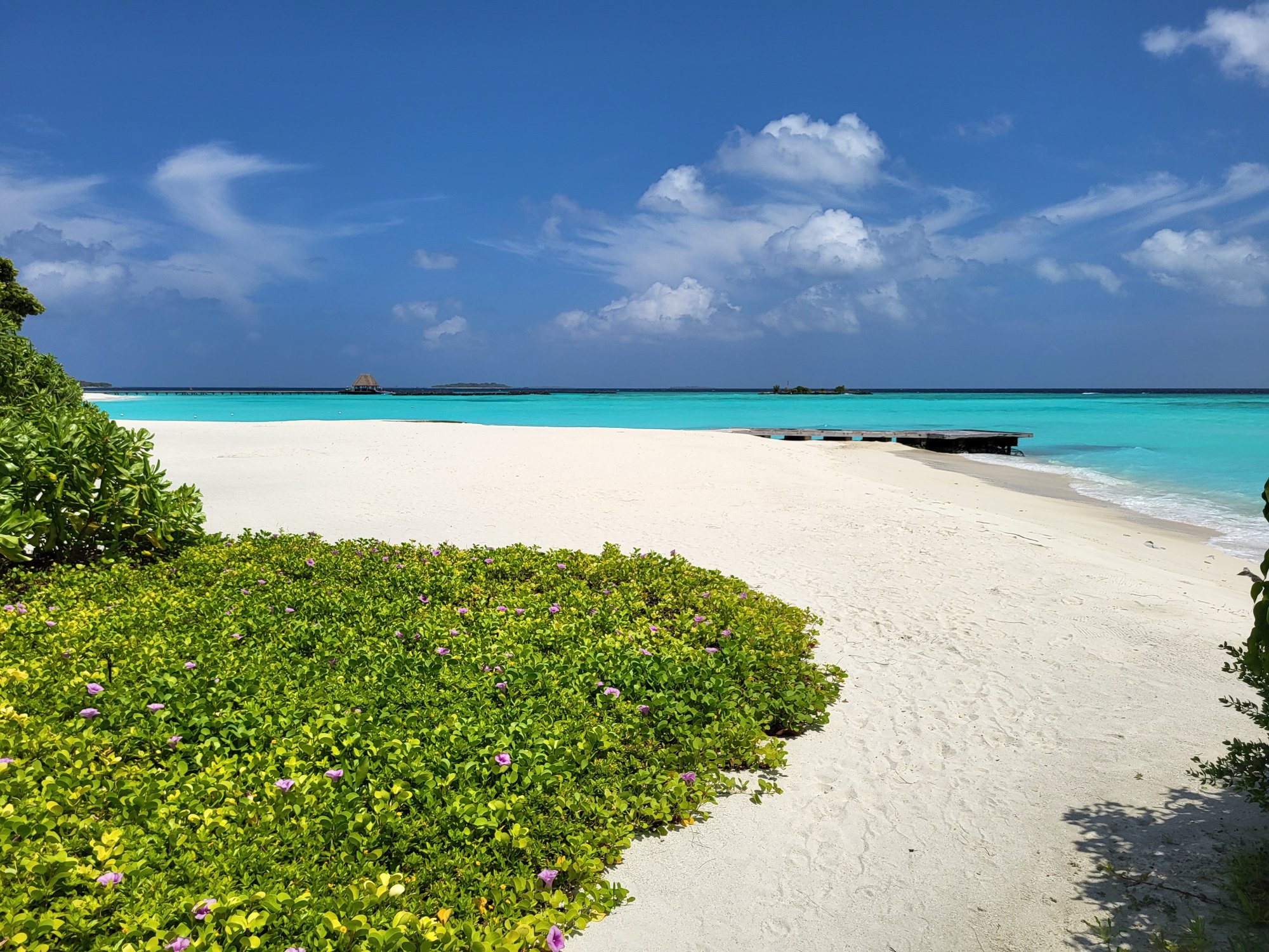 Resort je příjemně veliký s pestrou škálou ubytování na pláži i nad vodou. Má širokou lagunu s bohatým korálovým útesem.