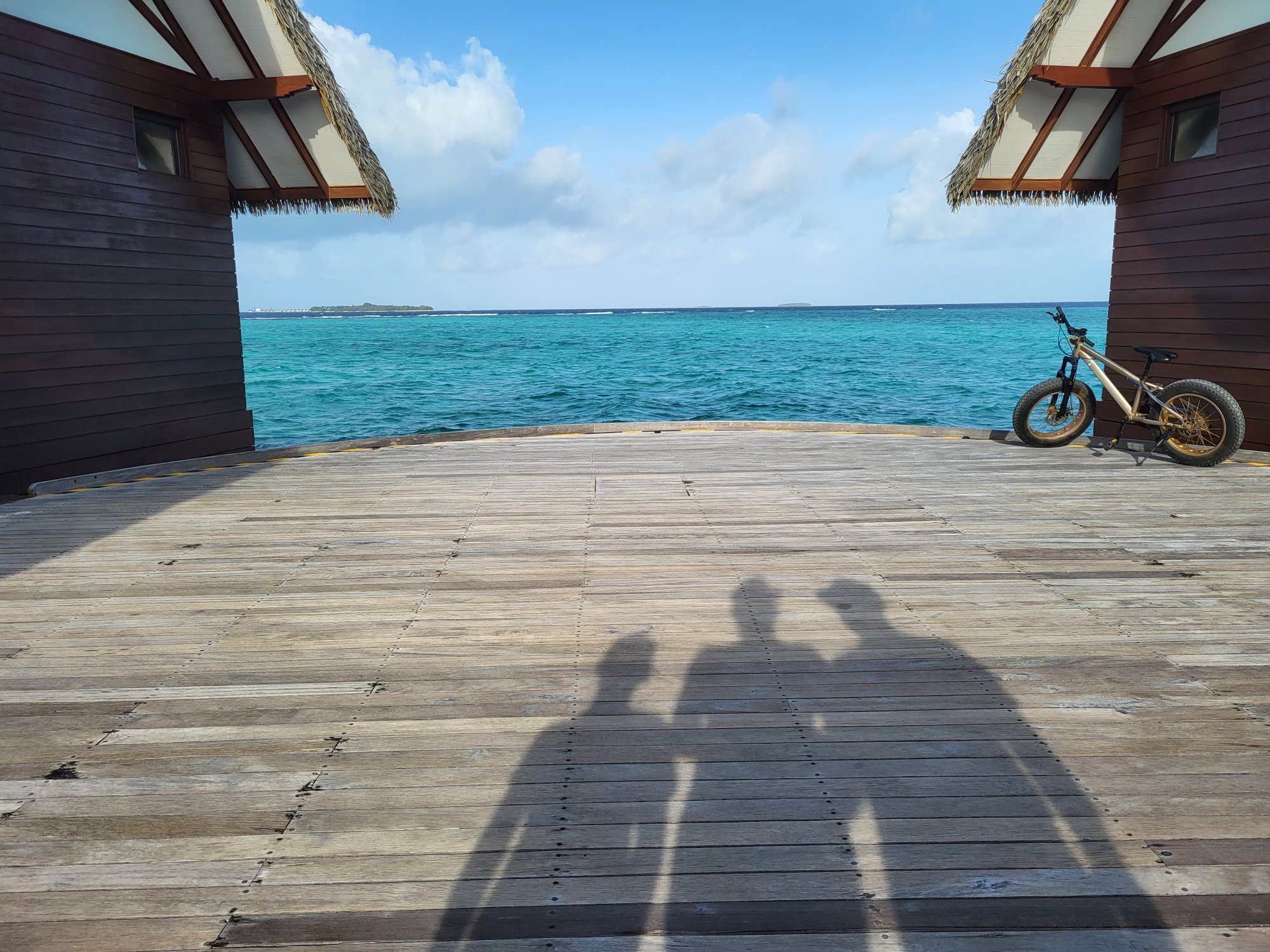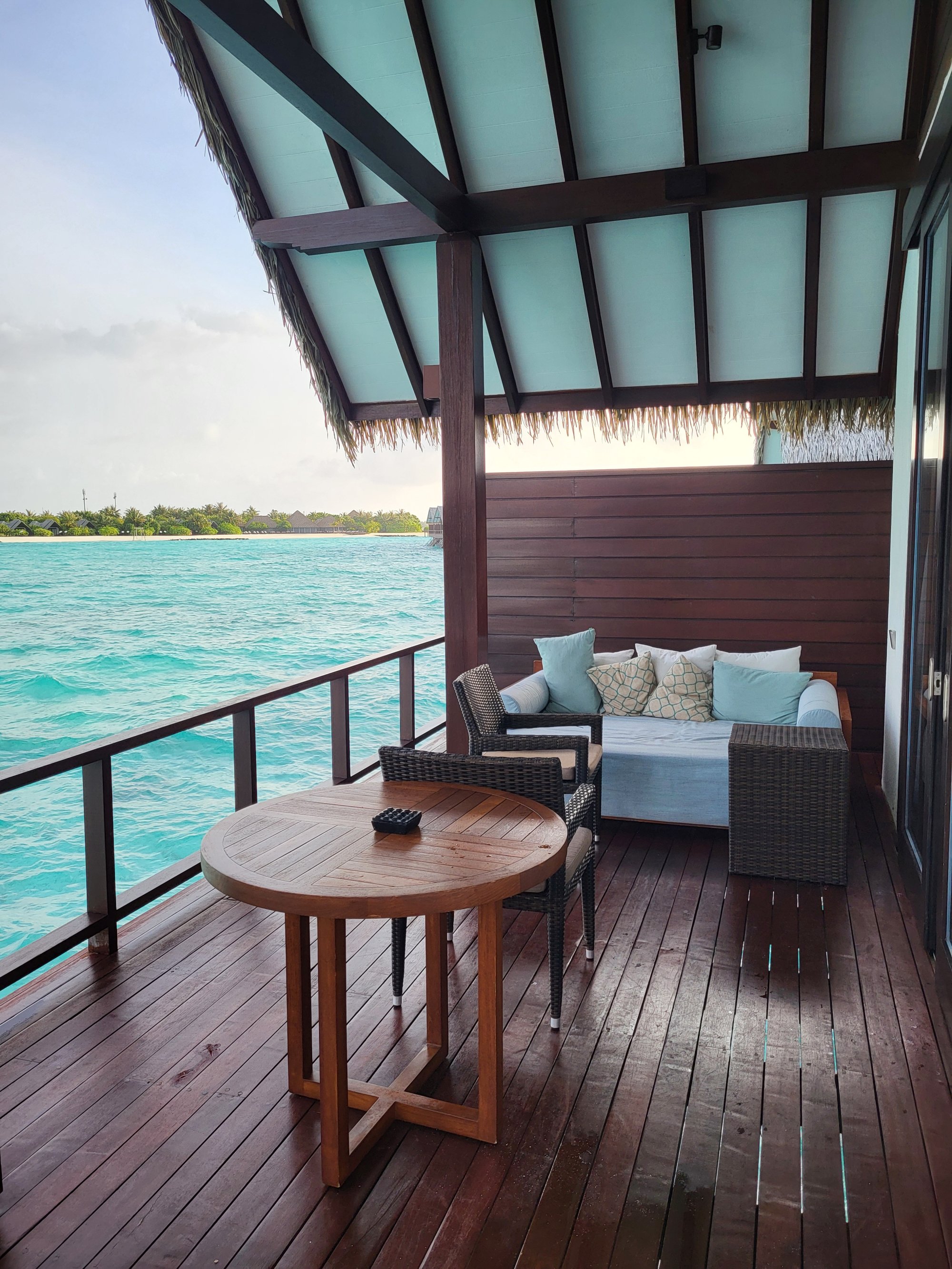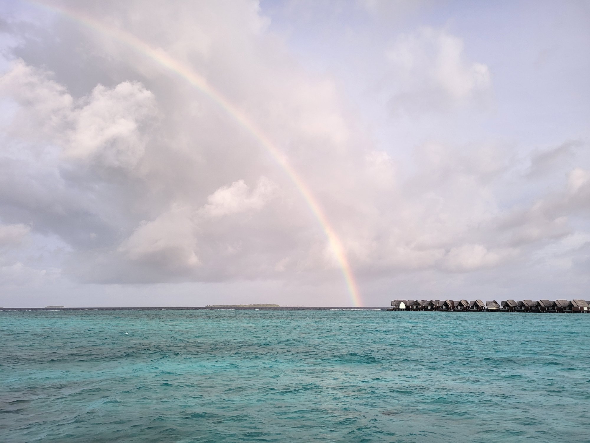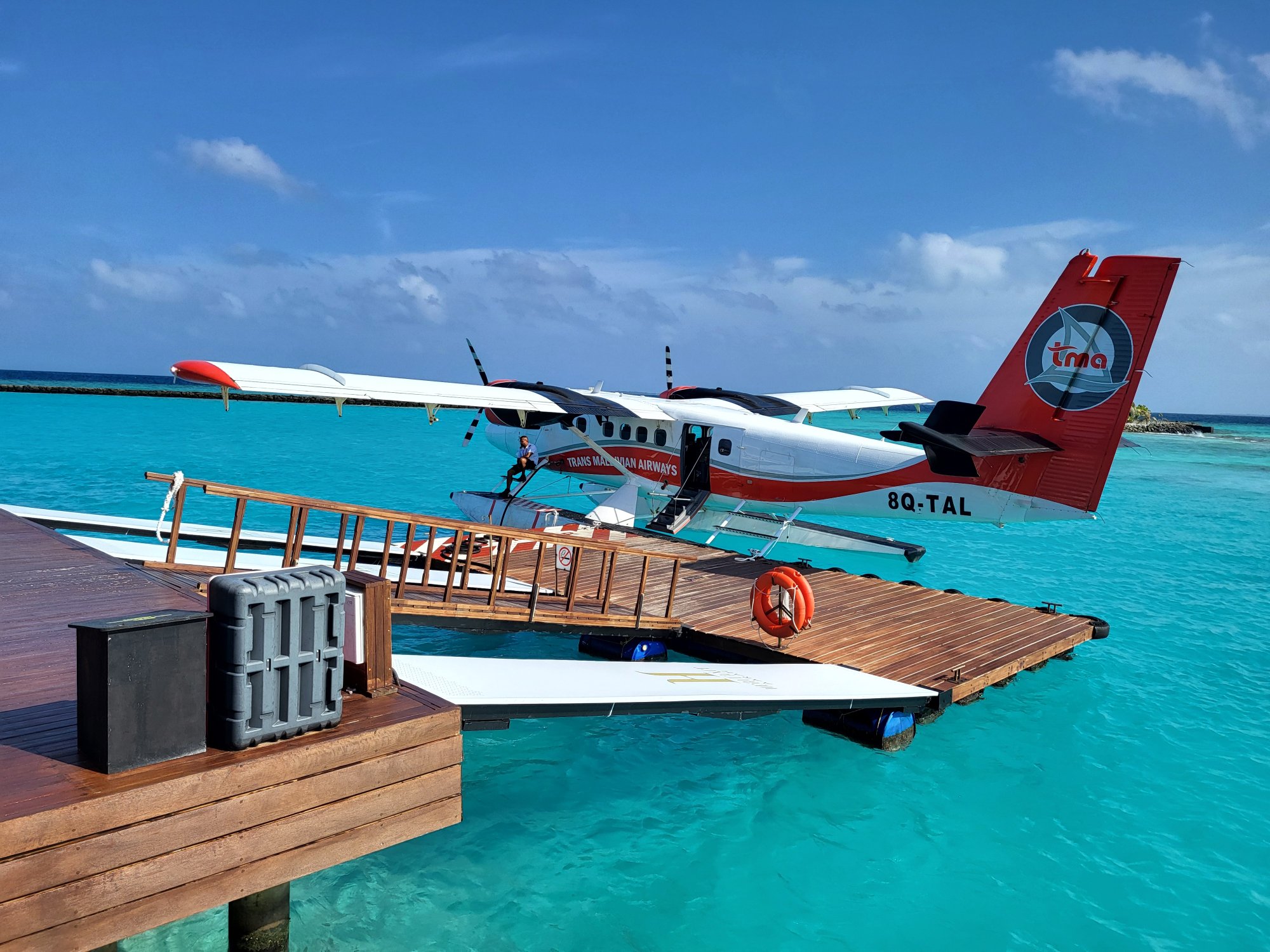 Náš přílet na Maledivy byl plánovaný na 15:25, což nám dávalo relativně vysokou šanci stihnout poslední hydroplán v 16 hod. Let byl však o 14 minut zpožděný a na Maledivách nás přivítalo natolik nevlídné počasí, že let hydroplánem byl zrušený.