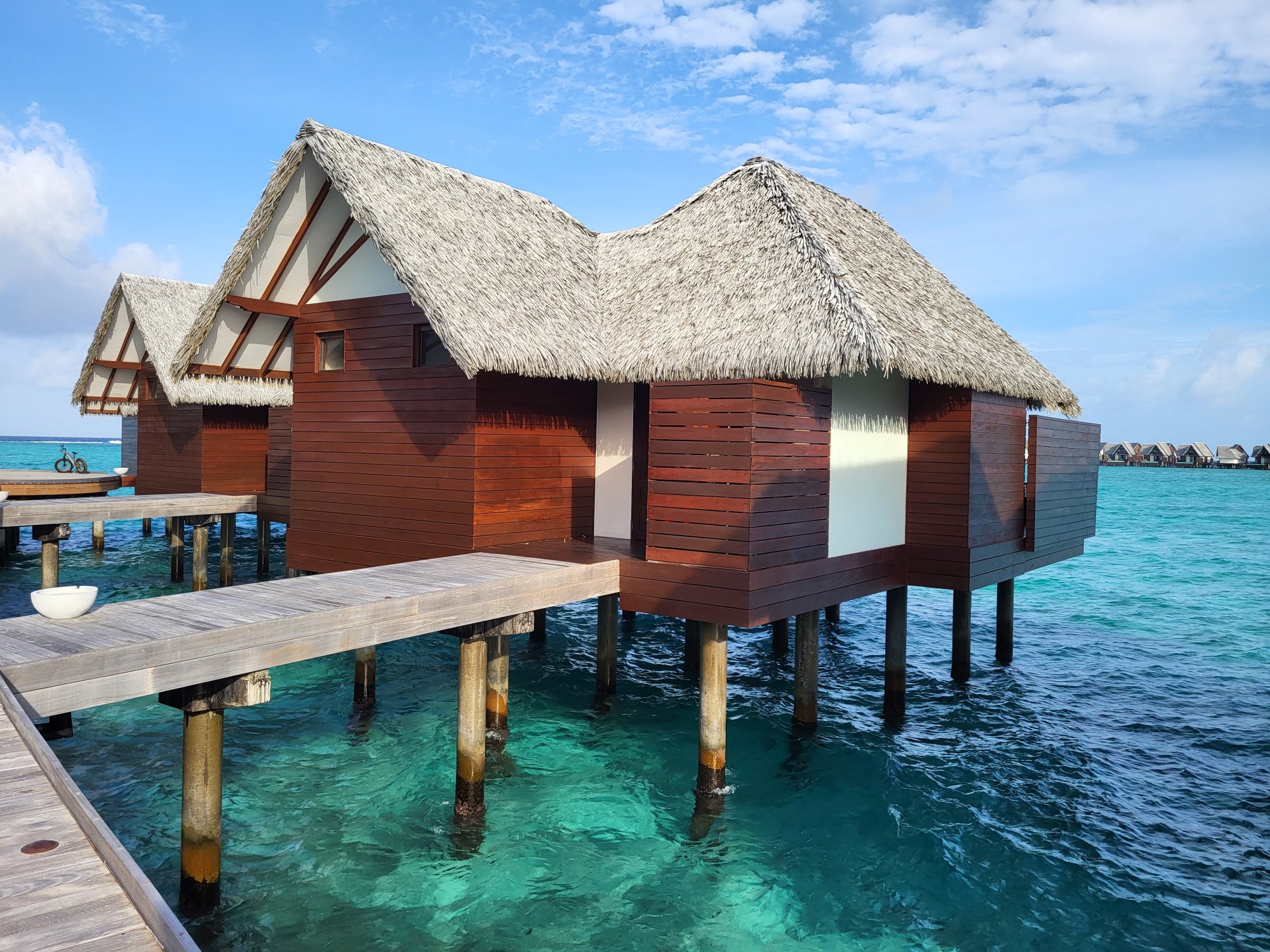 Ještěže jsme dorazili za tmy. Nevěřila bych, že je to stejný resort. Eroze způsobila, že pod nadvodními vilami bylo jen smrduté bahno. Ani ráno při přílivu to nebylo o moc lepší. Vily už by zasloužily zásadní rekonstrukci. Patrně je za ty roky nikdo nerenovoval. Pouze přibyly vily na pláži a v zahradě.