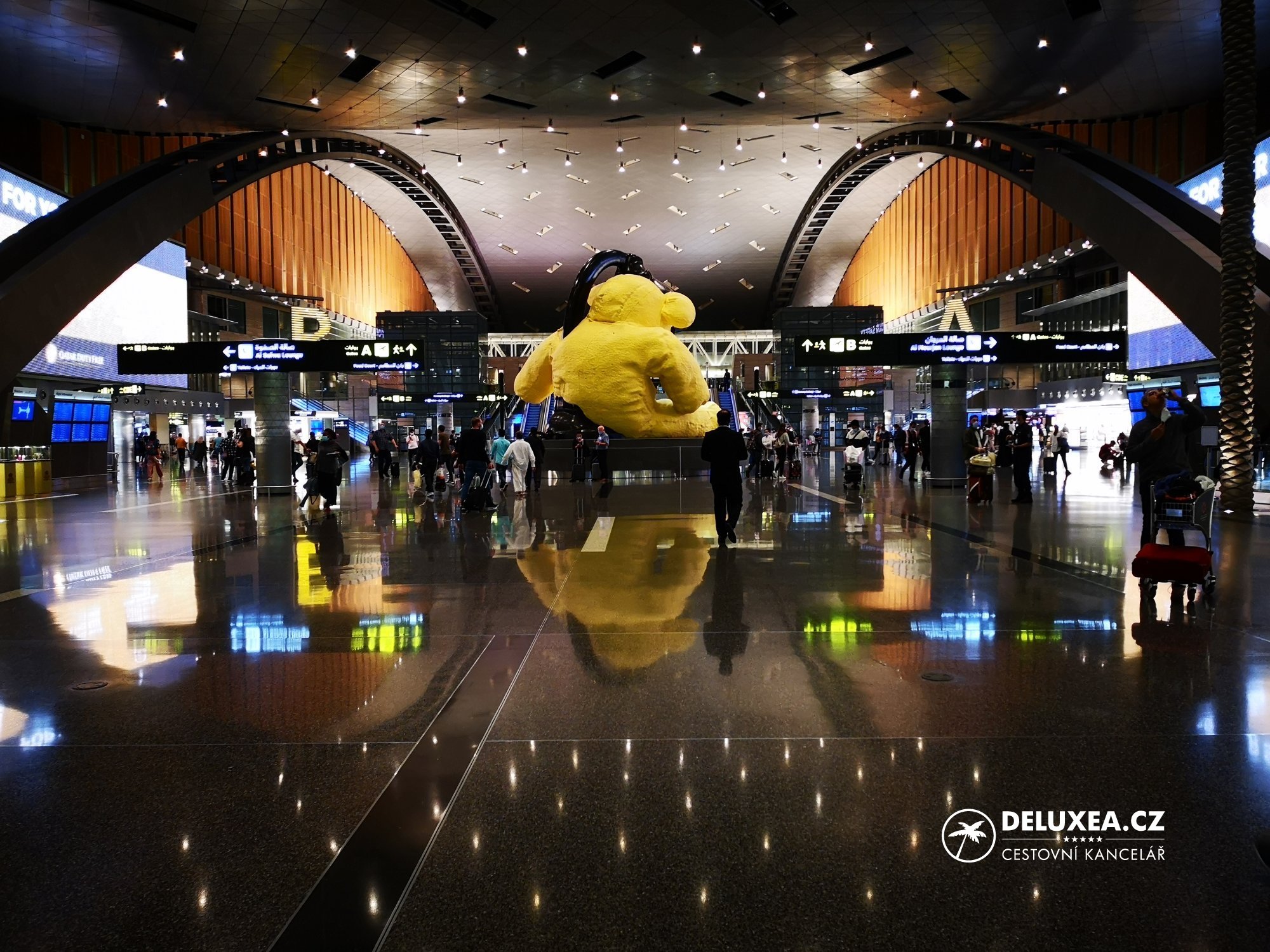 Přestup v Dauhá proběhl rychle a hladce. Před security kontrolou přístroj měří procházejícím cestujícím teplotu. Na tabuli nás překvapilo množství odletů a opravdu na letišti bylo poměrně hodně lidí. Na chvíli jsme měli pocit, že se situace vrací pomalu do normálu… Obchody, salonky i food court běží normálně. Vyjímkou je pouze prozatím uzavřený salonek cestujícíh v první třídě.
