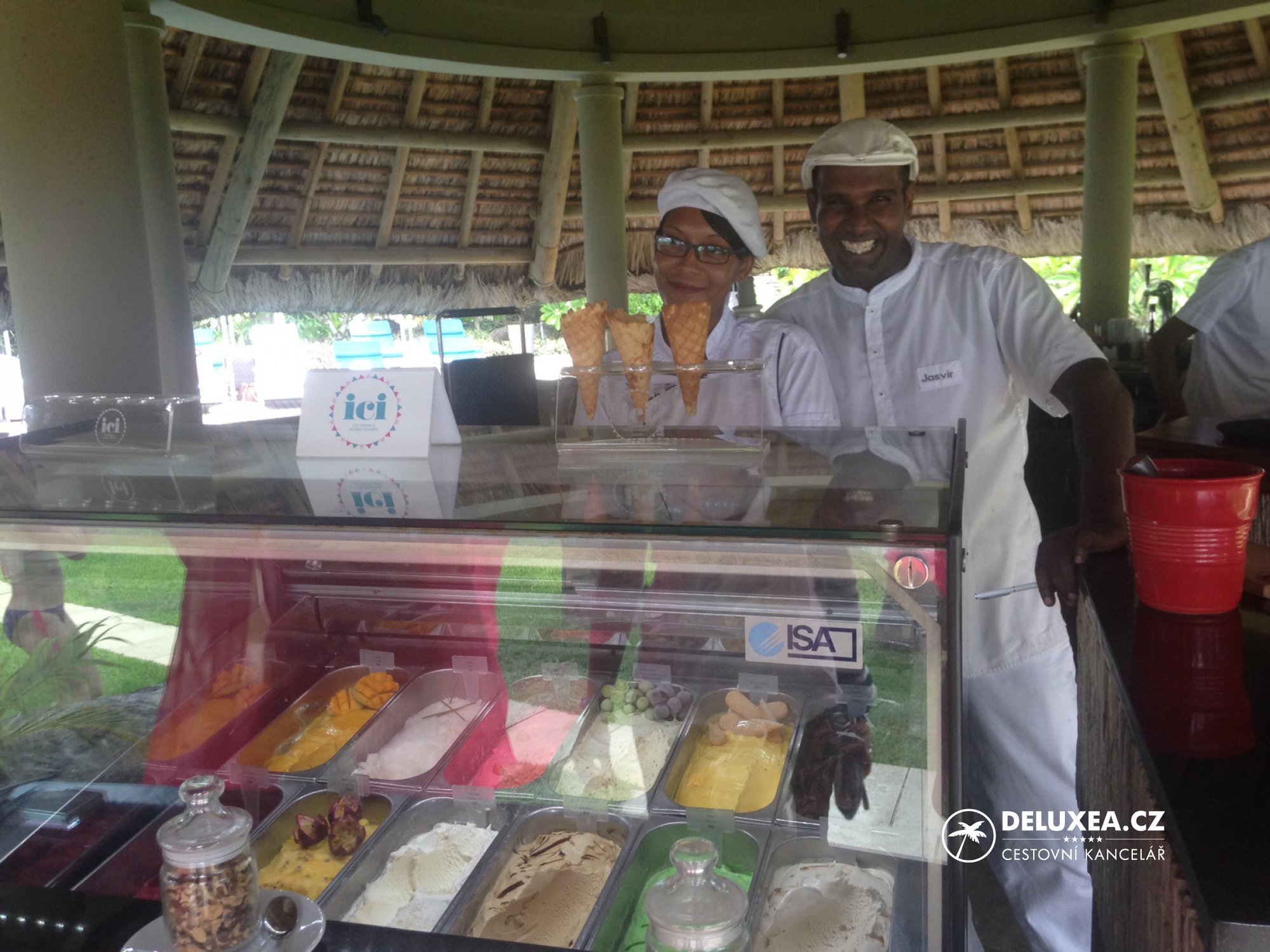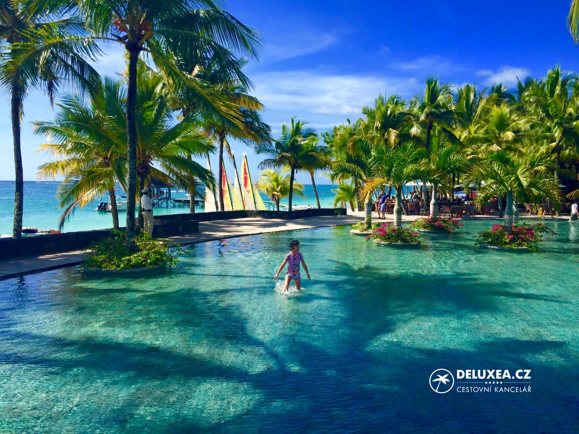 Už po príchode na recepciu sa nám zahmlelo pred očami, nie len kvôli 35 stupňovým teplotám, ale najmä kvôli výhľadu, ktorý sa nám naskytol. Priamo z recepcie a hlavného bazéna vidíte nádhernú scenériu modrého oceánu a ostrovčeka Coin De Mire. Pohľad to je naozaj nádherný, presne taký ako na všetkých pohľadniciach, ktoré som videla. Tento hotel má len dva roky, je nový, biely a krásny. Má dve sekcie: adults only & family. Každý si tam tak príde na svoje. Na jednej strane bol detský bazén a sekcia pre všetkých a na druhej pláž a bazén len pre dospelých. Veľmi sa mi tu páčil aj detský klub, ktorý bol v starom vraku lode, takže hry na pirátov tu naberali úplne inú dimenziu. Detský klub takisto bráva deti na rôzne výlety, kde sa deti učia aj hrajú, takže pre rodinky s deťmi je tento hotel pre mňa číslo jedna. Hoteloví hostia môžu využívať privátny ostrov, kde môžu mať piknik, opaľovať sa a tráviť tam koľko času len chcú, samozrejme ako bonus od tohoto skvelého hotela. Jedinou nevýhodou pre mňa tu je plytký vstup do mora (rada plávam a mám radšej, keď je hlbšia voda už od začiatku brehu).