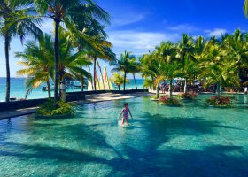All inclusive rezort na juhu ostrova, ktorého atmosféra sa podobá iným hotelom z hotelovej siete LUX. Živú atmosféru pri jednom bazéne strieda kľudná atmosféra pri inom, takže si každý príde na svoje. Pláž tu bola pekná, je tam však v mori viac kameňov ako napríklad na východnej strane ostrova a mali sme trošku problém s lehátkami. Je pravdou, že sme prišli na pláž dosť neskoro (boli sme predtým plávať s delfínmi, čo určite odporúčam:)). Vybrali sme sa preto k bazénu, kde akurát cvičila skupinka ľudí vodný aerobik a iná skupinka si vychutnávala obednú siestu v stánku s hamburgermi. My sme si vychutnávali mauricijské slniečko, ktoré sa ukázalo ako dosť zradné, do večera sme totiž vyzerali ako dve krevetky. Západ slnka nás tu ale úplne uchvátil. Priamo z terasy sme pozorovali jeden z najkrajších západov slnka aké sme na Mauríciu videli. Na večeru sme šli do hlavnej reštaurácie, kde bol zrovna indický večer. Výber jedna bol dobrý, usadili nás do záhrady, kde sme si pri sviečkach vychutnali posledný večer mauricijského dobrodrúžstva. Neskôr sme sa sýte presunuli k pláži, kde sme v sieťach pozorovali mliečnu dráhu.