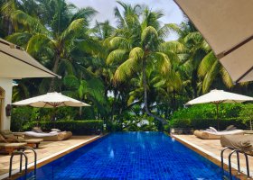 Tento veľmi pekný golfový hotel má veľmi príjemnú atmosféru. Pri našej návšteve pobehovali pri bazéne deti a na pláži odpočívali samí dospelí. Prirodzene sa tak rozdelili na kľudnú a živú časť. Hotel je dosť veľký, okrem izieb, apartmánov, suít sú tu aj súkromné vilky s bazénom, ktoré poskytujú dokonalé súkromie. Bolo tam takisto veľa golfistov a športovcov, ktorí si užívali dve 18 jamkové golfové ihriská. Súkromné vilky boli pekné, no napr. v Trou Aux Biches sa mi páčili viac. Veľmi sa mi tu páčil večerný bar, v ktorom hral pán na piáne a dodával hotelu tú pravú dovolenkovú atmosféru. Zaujímavosťou sú izby, ktoré majú terasy priamo nad bazénom (odvážlivci možu ísť z terasy priamo do bazéna).