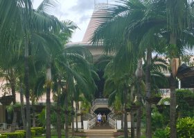Na druhý deň sme sa vybrali na juh ostrova. Začali sme v hoteli St.Regis. Tento hotel ma uchvátil už pri vstupe. Nádherný výhľad na oceán a nábytok bol v štýle starého Titanicu. Krásne starožitné kresielka na nožičkách v kombinácií s masívnym dubovým barom je zariadenie presne podľa môjho gusta. Milý sprievodca Kenny nás potom zobral cez veľké schodisko, ktoré je typickou črtou všetkých hotelov St.Regis na svete. Je to replika schodiska na Titanicu. Nachádza sa v každom St.Regise na svete, pretože syn zakladateľov prvého St.Regisu zomrel na Titanicu. Hovorí sa, že postava z filmu, kde pán hovorí niečo ako "tento posledný drink si vychutnám aj keby som sa tu mal utopiť" je práve inšpirovaná synom pôvodných majiteľov. Okrem histórie, ktorá dýcha z každého kroku na tomto nádhernom mieste ma veľmi zaujala veľká knižnica a kino s veľmi pohodlnými masážnymi kreslami. Pláž je už iba čerešničkou na torte. Biela, dlhá, krásna.