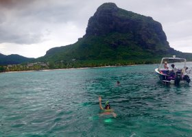 Hneď vedľa Dinarobinu sa nachádza hotel Paradis. Je to sesterský hotel, takže ako hostia Dinarobinu sme sa vybrali preskúmať aj tento. Hotel je v porovnaní s Dinarobinom živší, večer tam je vždy nejaká zábava, živá hudba, ľudia tancujú a pijú koktejly. Takisto tam bolo viac detí, ktoré sa ale zabávali prevažne v kids clube, kde mali vlastný bazén a penovú párty. Paradis má nádherné golfové ihrisko, priamo pod horou Le Morne, vlastné odpalisko a aj ako nie veľký fanúšik tohoto športu si viem predstaviť, že hrať na tomto krásnom greene musí byť super zážitok. Okrem golfu má Paradis obrovské, veľmi kvalitné fitness centrum a centrum vodných športov. Vybrali sme sa tu šnorchlovať. Loďka berie hostí zadarmo, 4x do dňa a môžete sa šnorchlovať koľko vládzete. Zároveň sme si užívali krásny výhľad na pobrežie a horu Le Morne. Šnorchlovanie v Paradise určite odporúčam. Koral nie je farebný ako na Maldivách, ale sú tu ryby od výmyslu sveta, korytnačky, hviezdice a krásne mušle. Večer sme zavítali do reštaurácie Blue Marlin, veľmi obľúbenej a-la-carte reštaurácie, kde hrala živá hudba a podávali perfektné ryby a plody mora.