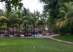 Rezort Long Beach je naozaj obrovský. Má 4 bazény (jeden vo fitness centre - plavecký - cením). Všetko v tomto rezorte je veľmi moderné, izby sú krásne a svetlé. Pláž je široká a dlhá 1,3 km. Opäť mi tu chýbal ten mauricijský duch, ale ak má niekto radšej moderné prostredie ako tradičnú atmosféru, je Long Beach naozaj super. Keby ste sa vybrali k Spa, ideálnym miestom na oddych sú lehátka pri rieke, v tieni stromov, ktoré sú postavené v korunách stromov, takže sa ocitnete v krásnej harmónií s prírodou.