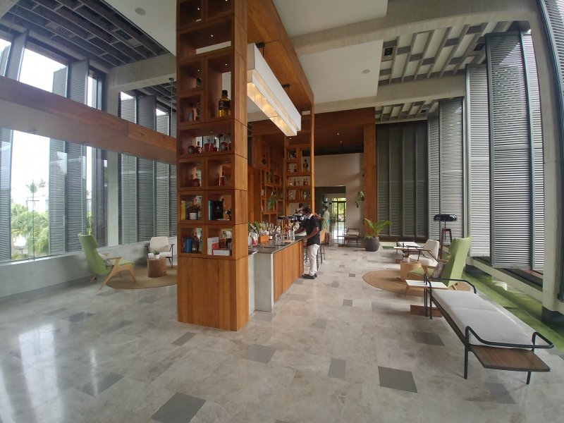 V hotelu došlo oproti naší poslední návštěvě ke kompletní renovaci lobby, která nově nabízí zajímavý koncept baru s osvěžujícími nápoji. Vznikl Departure Room, kde můžete strávit čas od opuštění hotelového pokoje po odjezd z resortu. Nabízí útulné společenské prostory a veškeré potřebné zázemí včetně sprch.