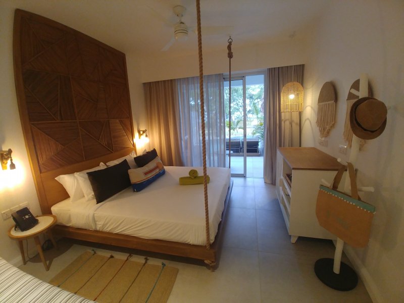 Druhý den jsme hned po snídani musely podstoupit další antigenní test, který nám přišli udělat přímo na terasy našich pokojů. Dále jsme měly hned po snídani na programu prohlídku hotelu Sunrise Attitude. V levé, klidnější části resortu se nachází 8 úplně nových vilek – 4 jsou situovány s výhledem do zeleně a 4 s výhledem k silnici. Ty jsou od společných prostor odděleny zahradou a k restauracím je to od nich dále. Každá z vilek má svou předzahrádku se soukromým bazénem a ubytovat se zde můžou 2 dospělí. V další části resortu, která je nově přistavěná, se nachází Couple swim up pokoje, které mají přímý přístup do bazénu a kde jsme byly ubytované i my. Nad nimi v 1. a 2 patře jsou pak pokoje Couple partial sea view, které mají výhled na bazény, zahrady a částečně také na moře. Hlavní restaurace The Market se nachází taktéž v nové části hotelu a podávají se zde snídaně, obědy i večeře formou bufetu. Další restaurací je Kot nou, která je typická pro všechny hotely z řetězce Attitude. Je to tradiční mauricijská restaurace, kde můžou hosté ochutnat mimo jiné také kreolská jídla.