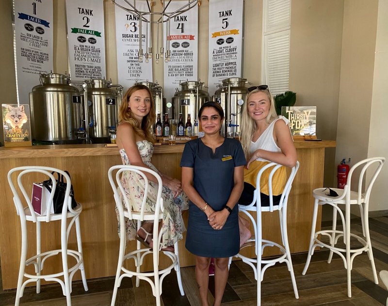 Tento resort má jako jediný v celém Indickém oceánu Buddha Bar a pokud by ho chtěl mít i jiný resort, musí mít od Sugar Beach povolení. K Buddha Baru nově přistavěli také sushi restauraci. Dále jsme navštívily místní SPA, kde jsme dostaly i malý dáreček v podobě vzorků kosmetiky, pojmenované stejně, jako lázně, tedy Cinq Mondes Spa. Nakonec jsme byly ještě pozvány na ochutnávku mauricijských piv v koutku, kde jsou přímo pivní tanky. Celkem jsme ochutnaly 5 druhů piv, z nichž jedno se mění podle sezóny. Poté už pro nás přijel náš řidič, aby nás mohl odvézt do dalších hotelů.