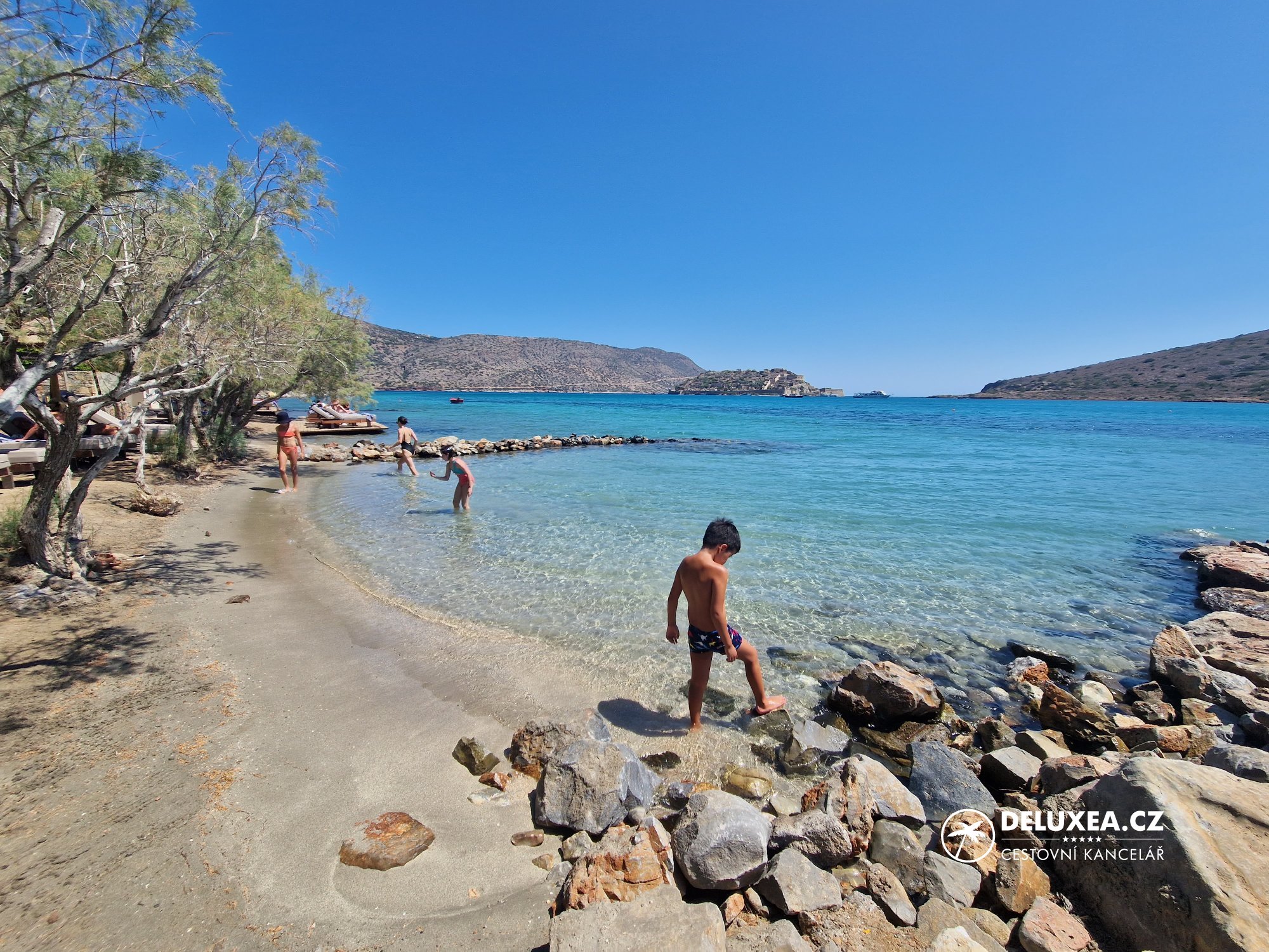 Byli jsme ubytovaní v Sapphire Zen Junior Suite with Private Pool, kde již sám název o sobě vypovídá, že hosté mají v tomto pokoji k dispozici vlastní bazén a k tomu prostornou terasu s výhledem na kouzelný záliv a ještě kouzelnější ostrůvek Spinalonga. Pokoj je velmi dobře koncipovaný a nabízí manželskou postel, samostatnou sprchu a oddělenou toaletu, stejně jako vanu. Samozřejmě prvně bylo v plánu vyzkoušet bazén a hned poté jsme vyrazili na pláž. Přece jen moře je tím hlavním faktorem, proč jsme na dovolenou jeli.