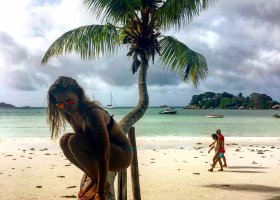 Môj najobľúbenejší ostrov z celých Seychel. Pláže aké sú na tomto ostrove som ešte nikdy predtým nevidela. Na celom ostrove je cca 10 áut a okrem toho sa chodí iba bicyklom (alebo na byvolovi). Najkrajšie pláže sú na južnej strane ostrova, kam sa inak ako na bicykli nedostanete, pretože tam nesmú byť žiadne hotely. Trvá to síce aj 30 minút a je to cez dva kopce, no naozaj to stojí za to. Nádherné pláže Grand Anse, Petit Anse a Anse Coco nám učarovali natoľko, že sme sa na ne vybrali prakticky každý deň. Piknik a koktejly na niektorej z týchto pláží naozaj stoja za to. Chodí tam málo turistov (práve kvôli „nezdolateľným“ dvom kopčekom), tým pádom máte večne pocit, ako keby ste boli na pláži sami. ![]()